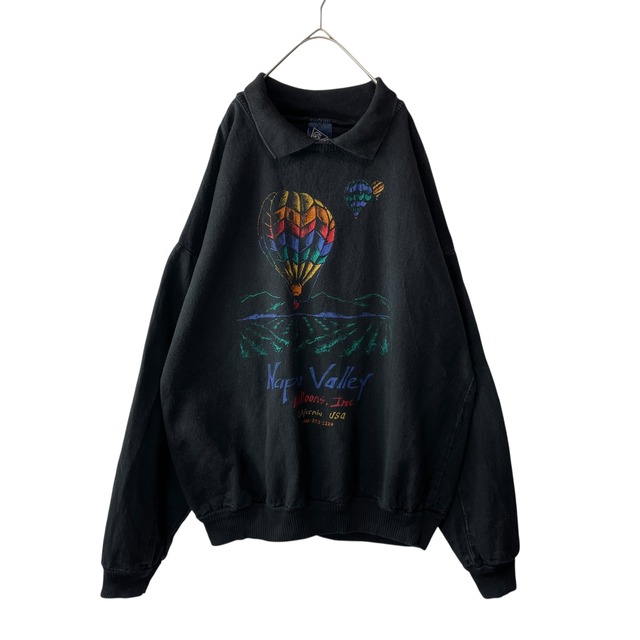90s USA製 襟付き デニム プルオーバー 黒 気球 カラフル XL相当