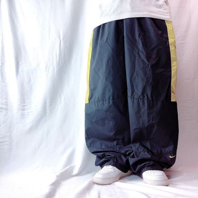極太 ビッグサイズ NIKE ナイキ ナイロンパンツ 黒×黄色 メンズ XXL