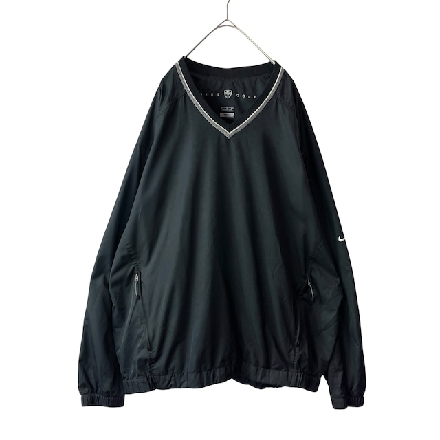 00s ナイキ ナイロンジャケット Vネックプルオーバー ジャケット 黒 L