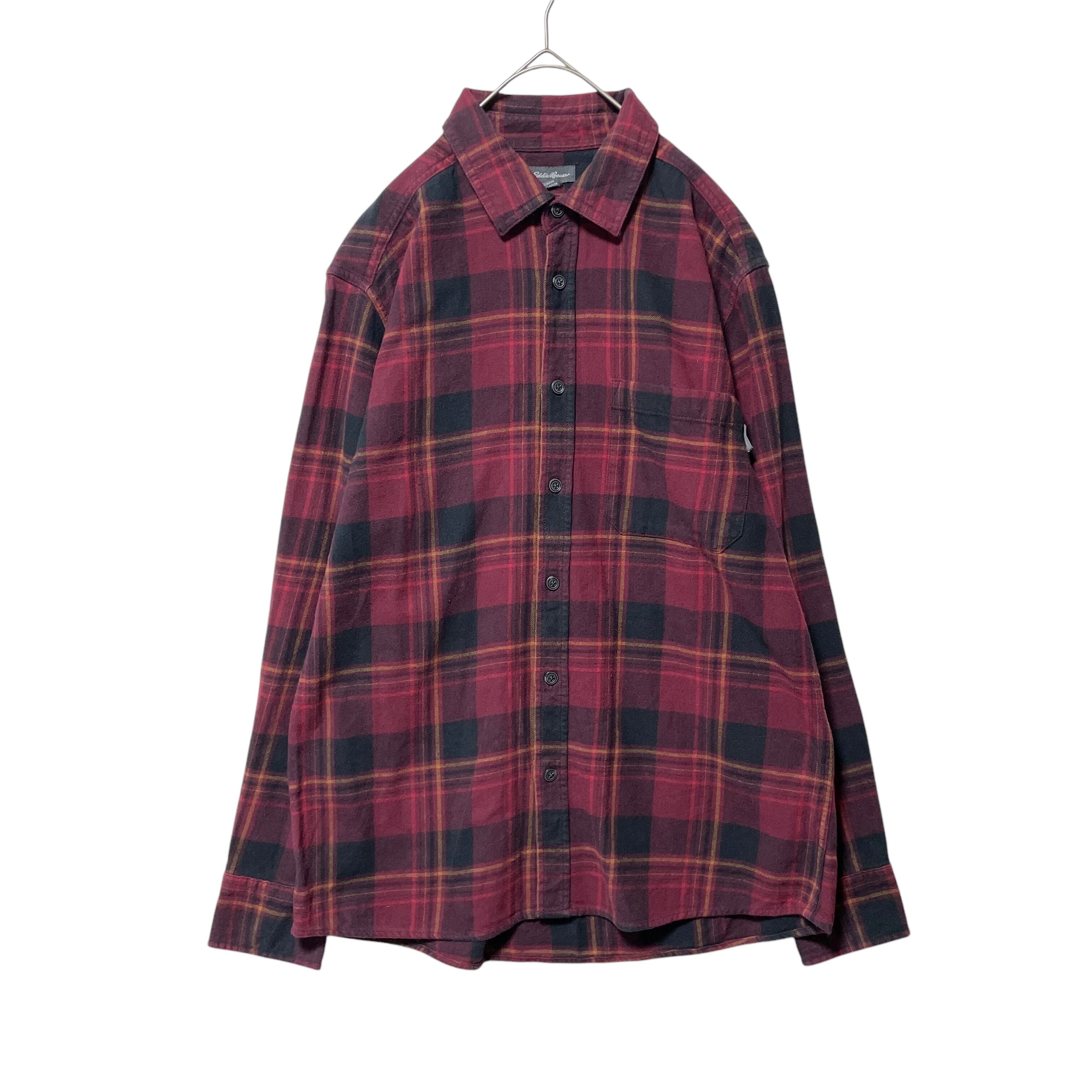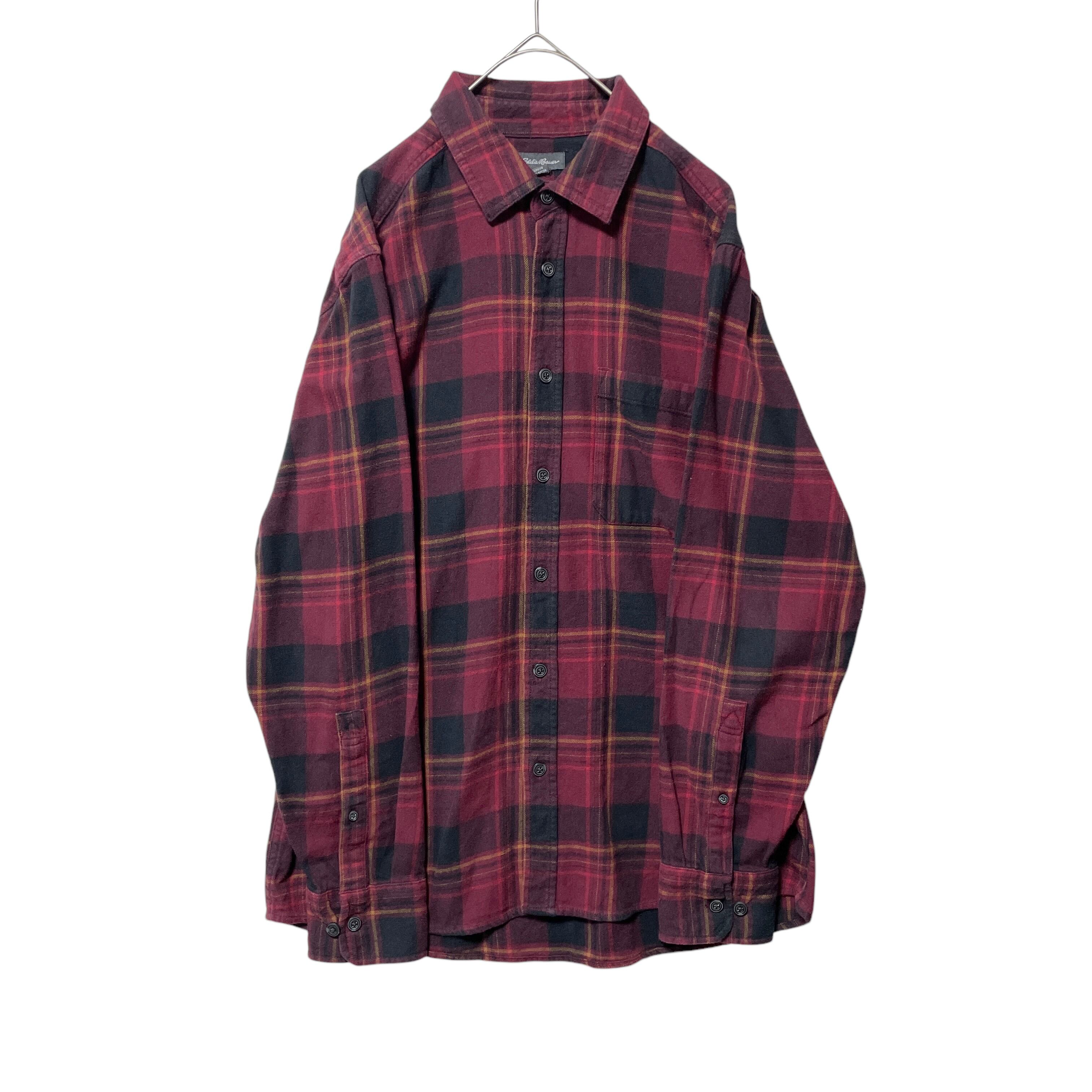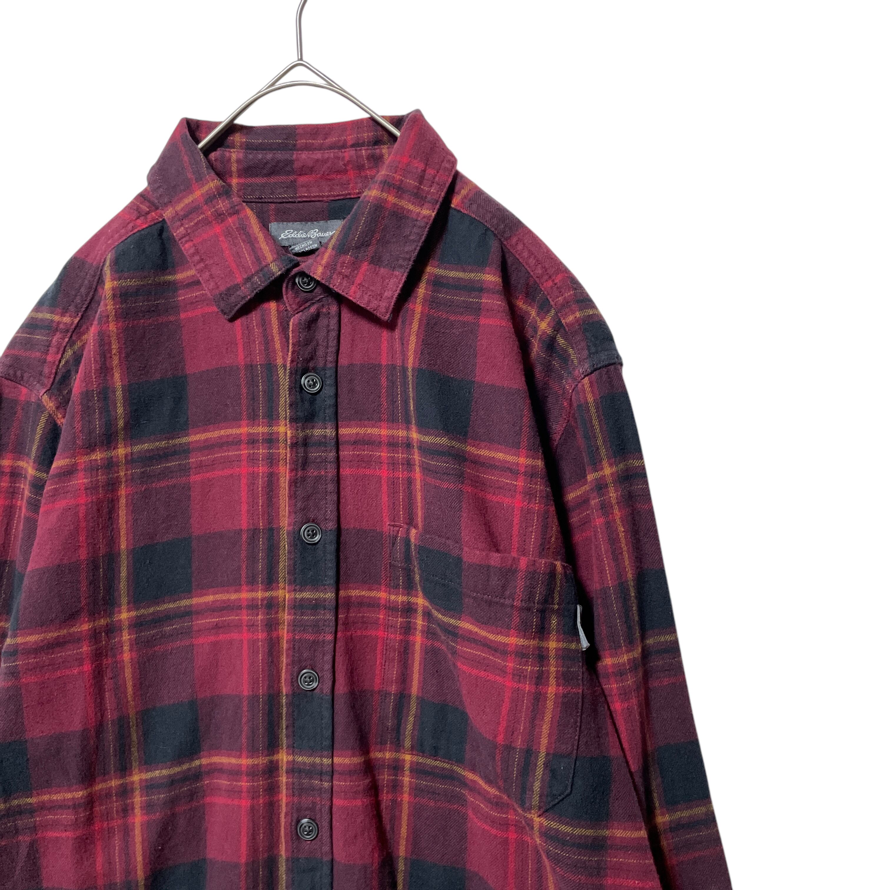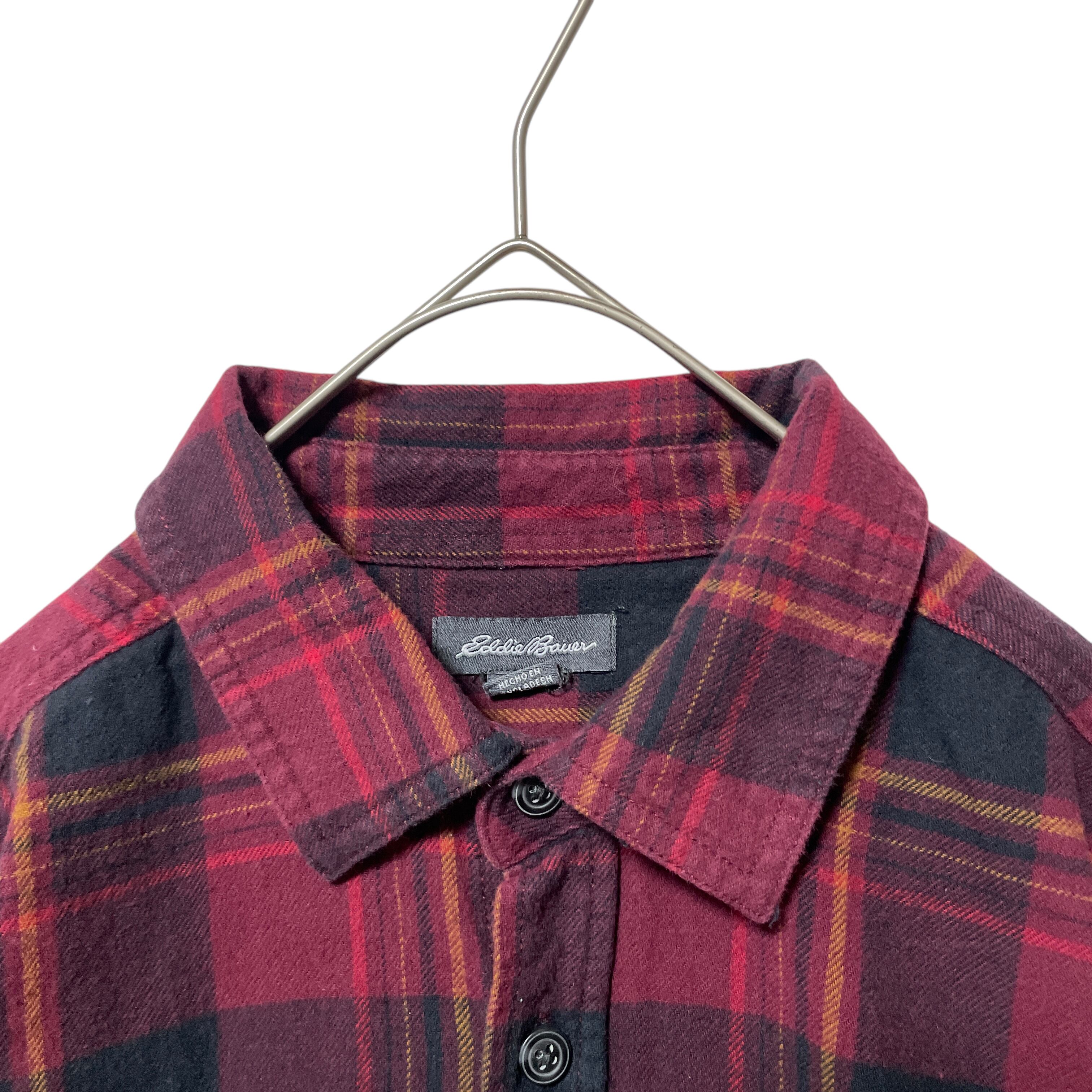 エディーバウアー チェック柄 長袖シャツ ネルシャツ メンズ M ボルドー系