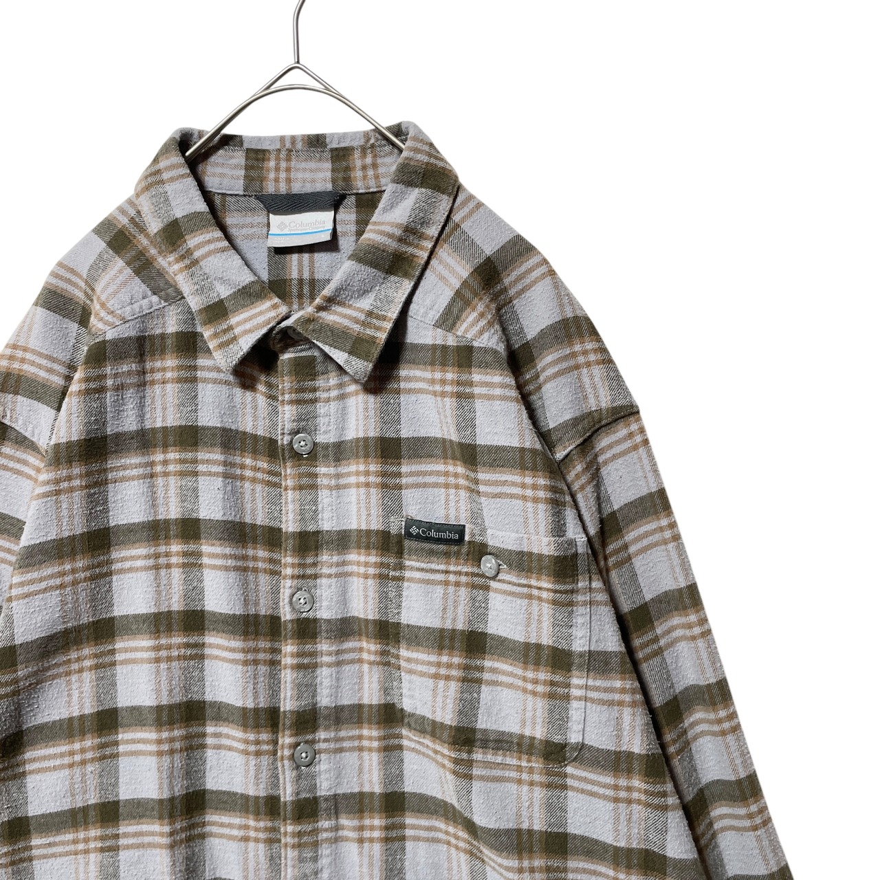 Columbia コロンビア チェック柄シャツ ネルシャツ グレー カーキ L