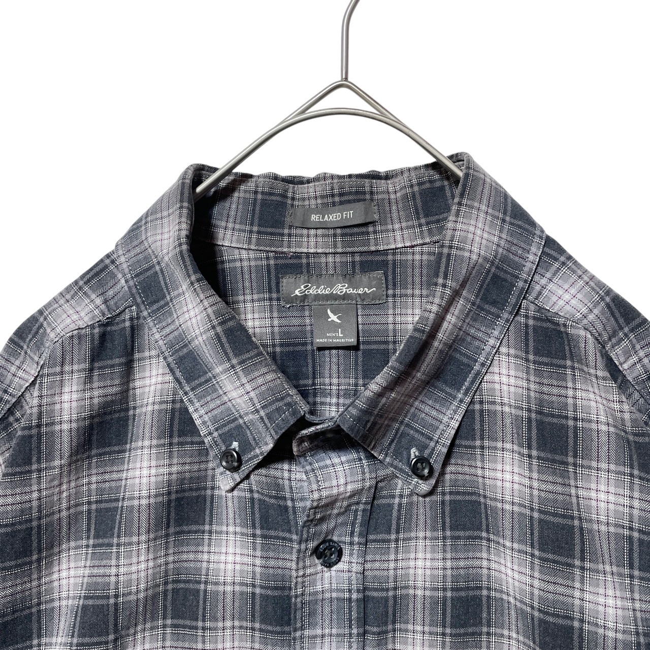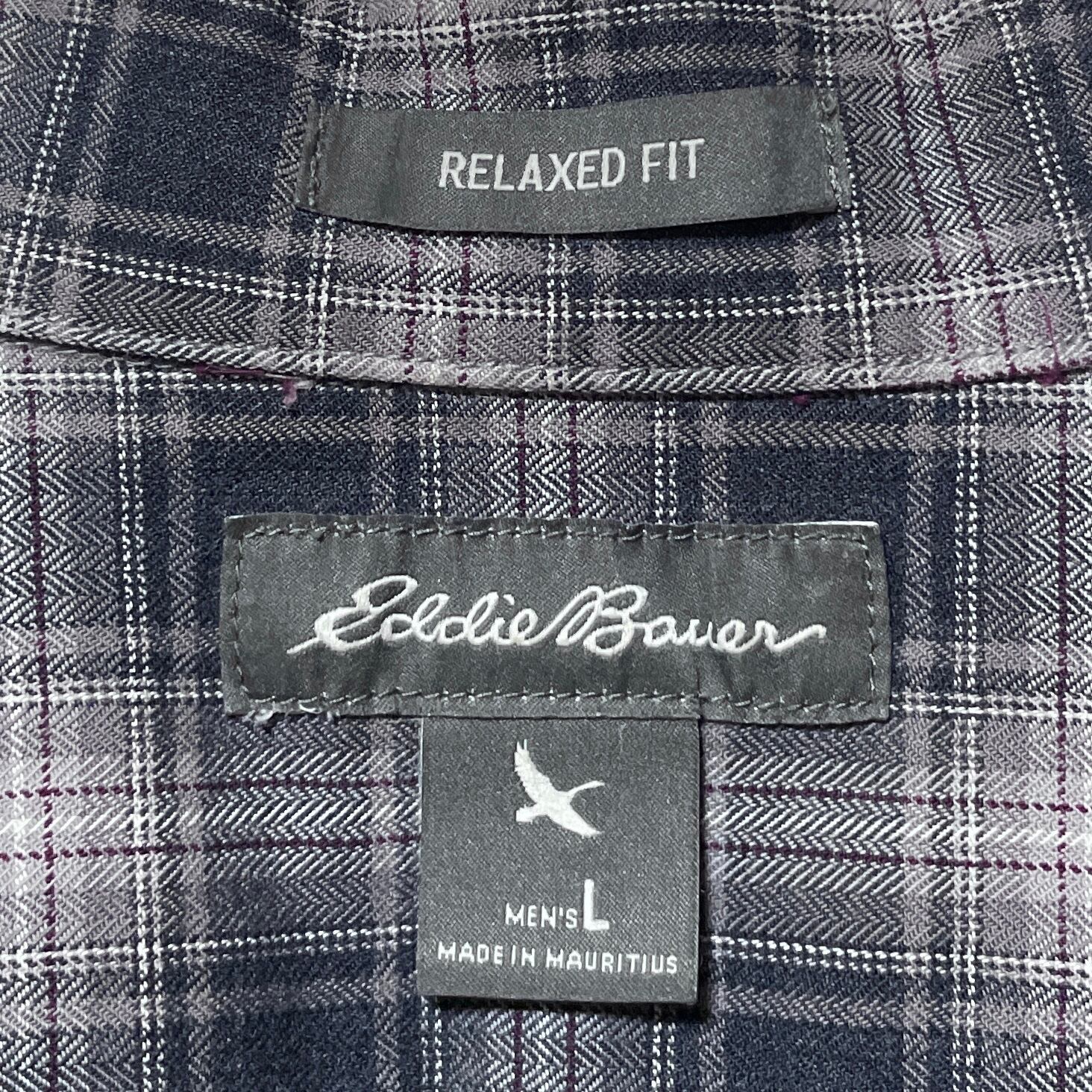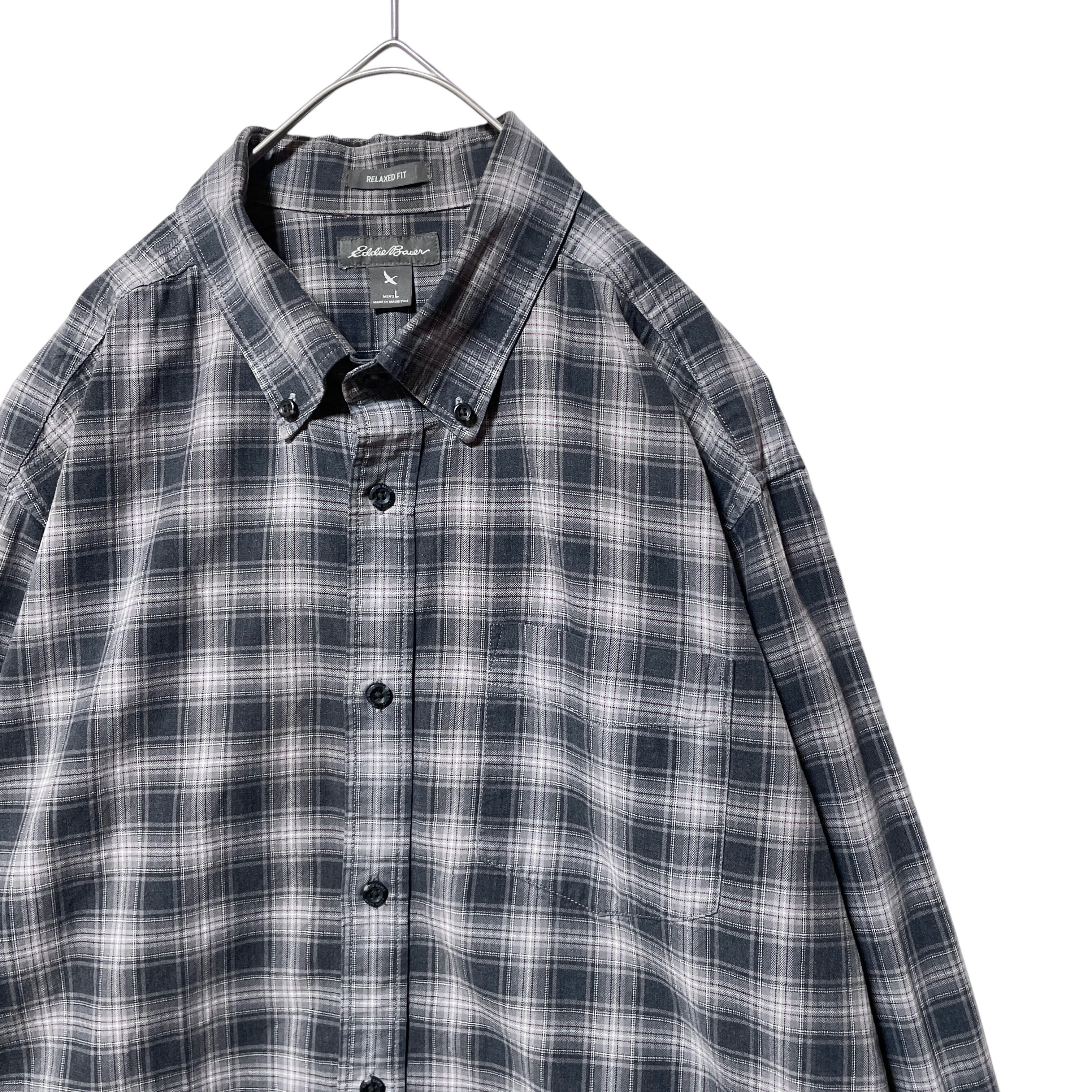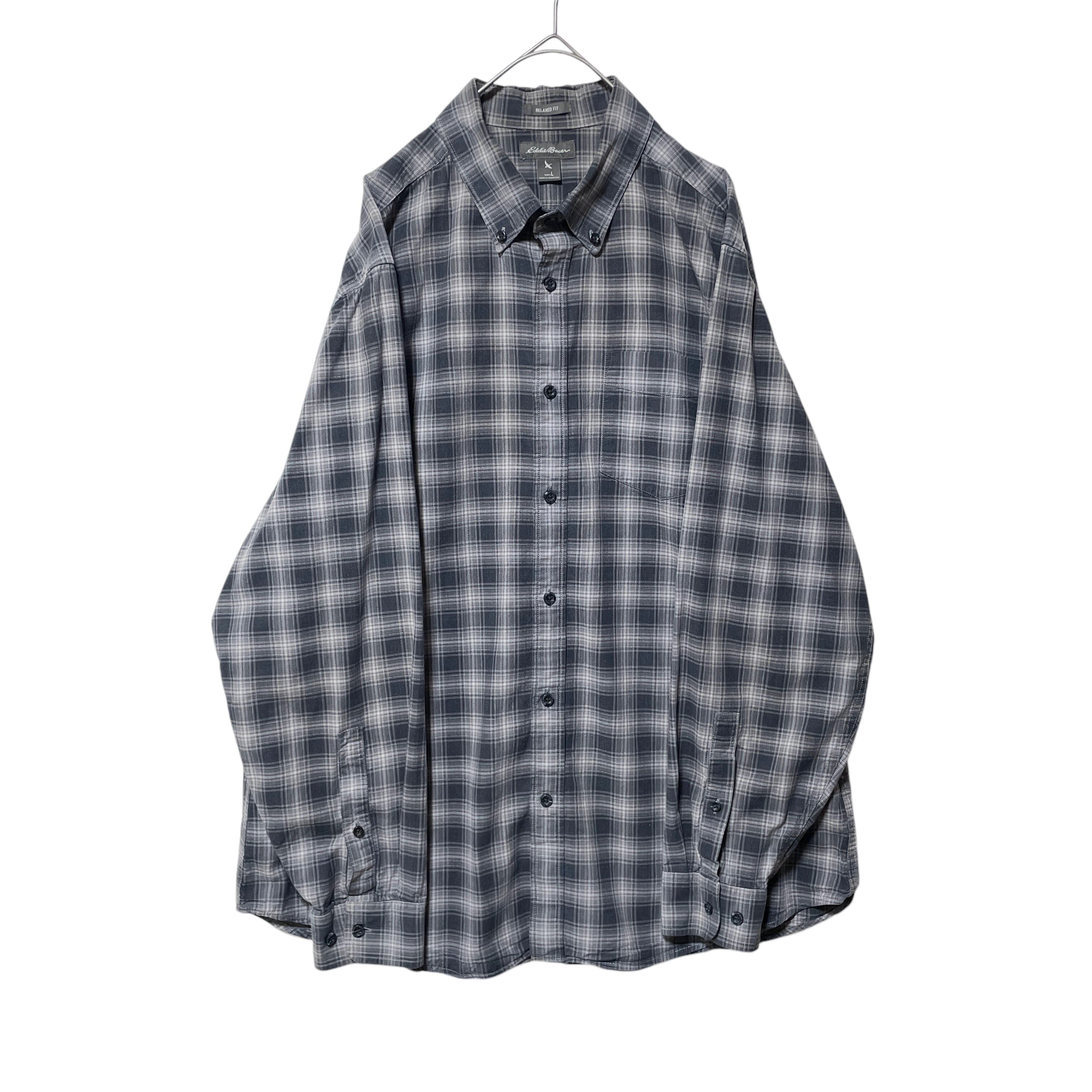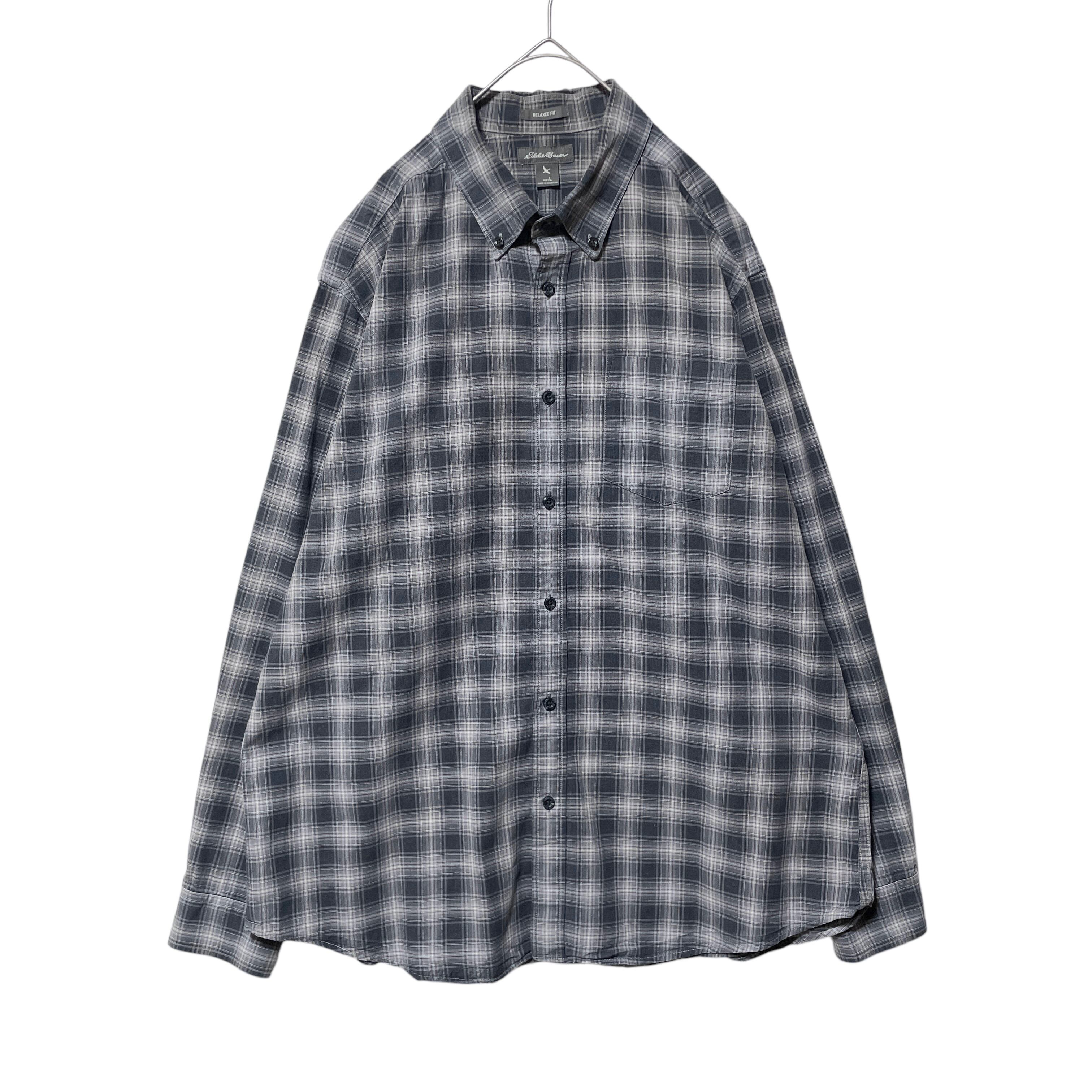 エディーバウアー チェック柄 ヘリンボーン 長袖シャツ BDシャツ グレー L