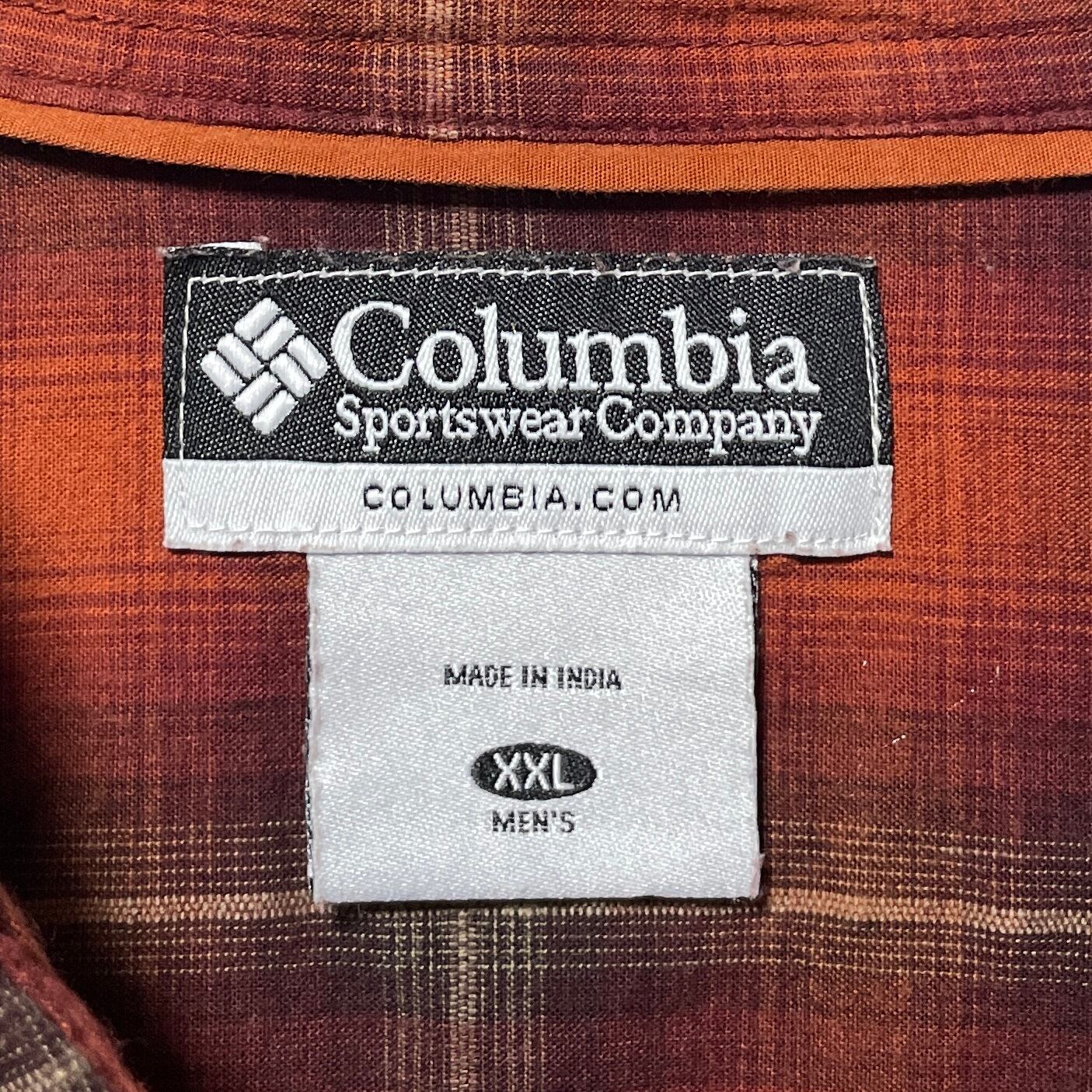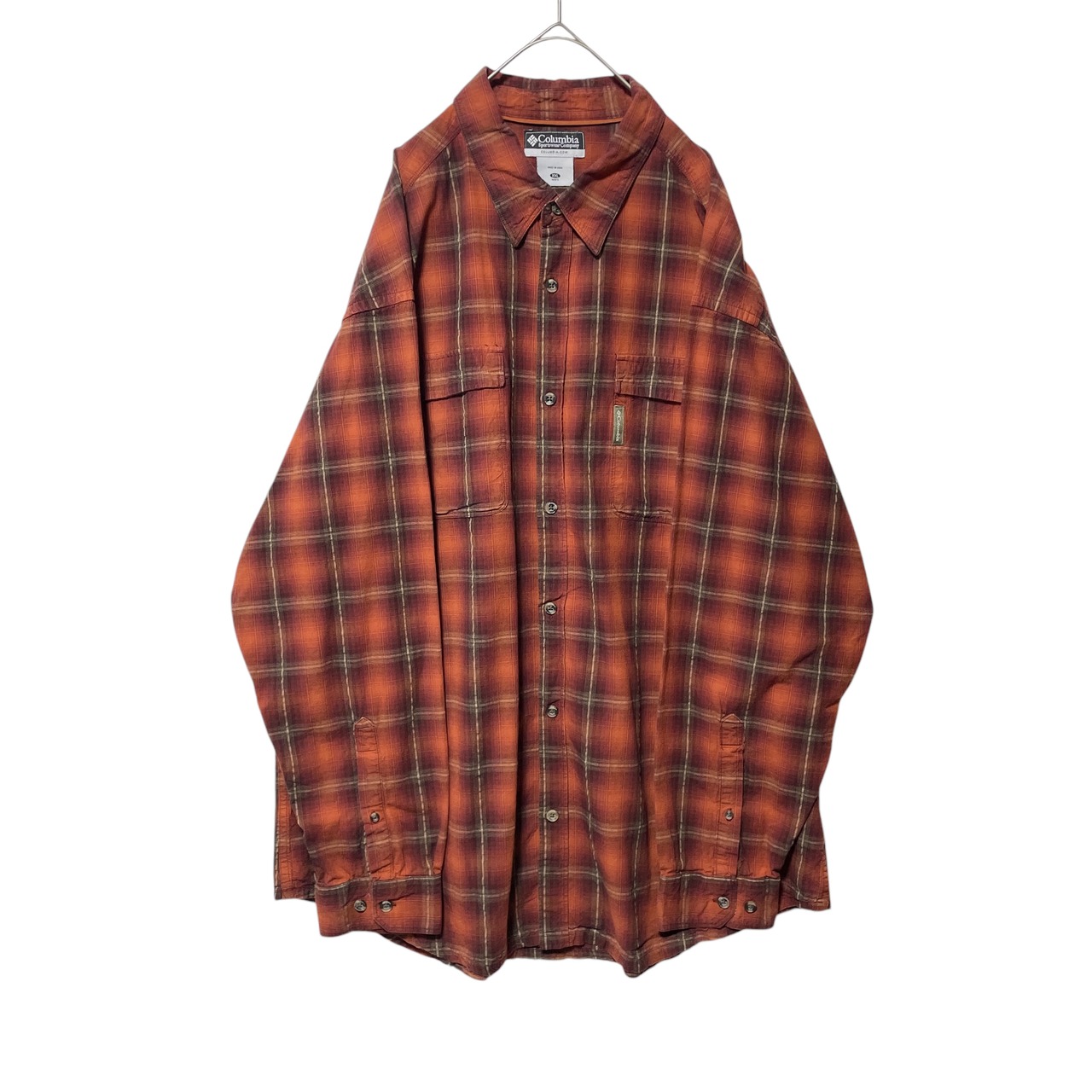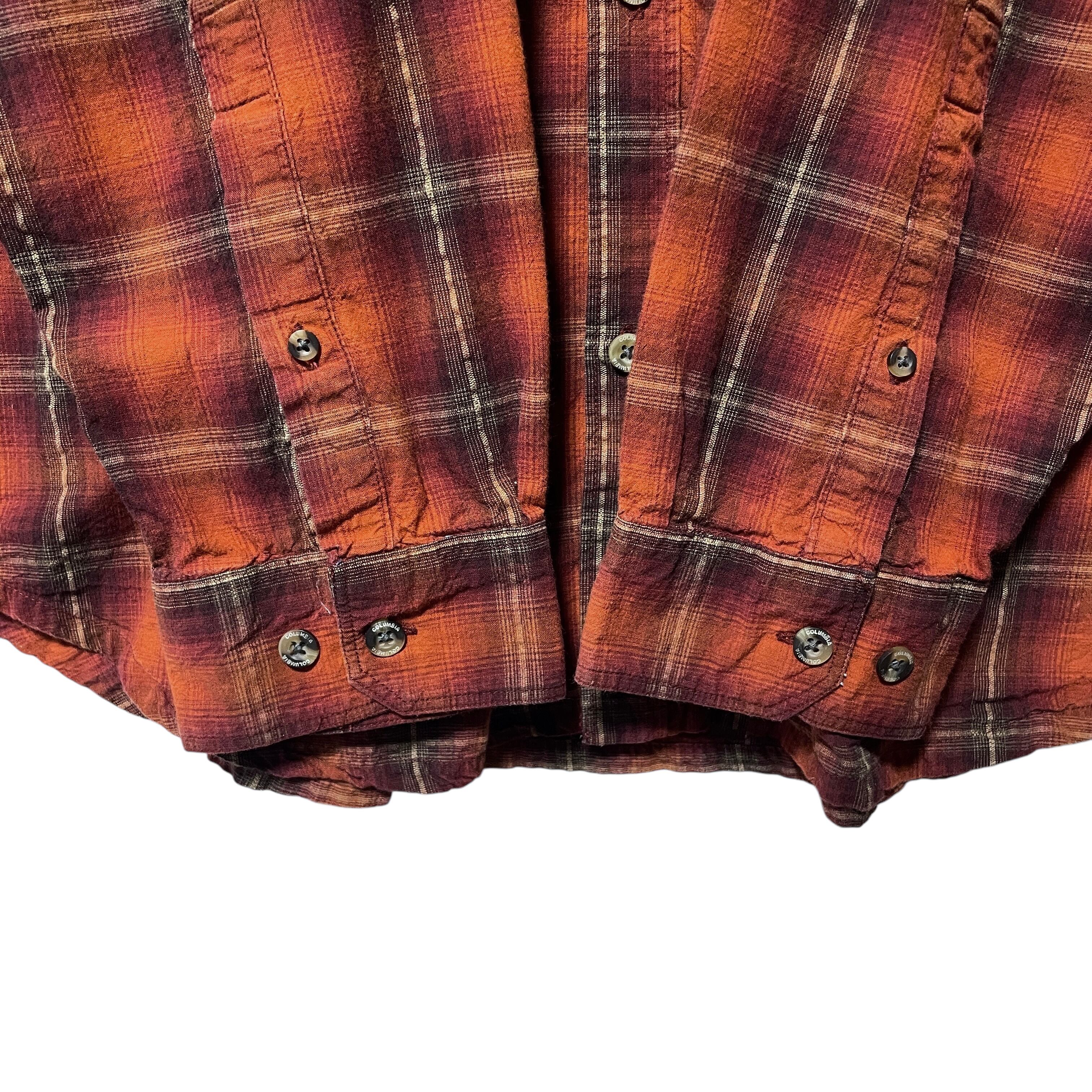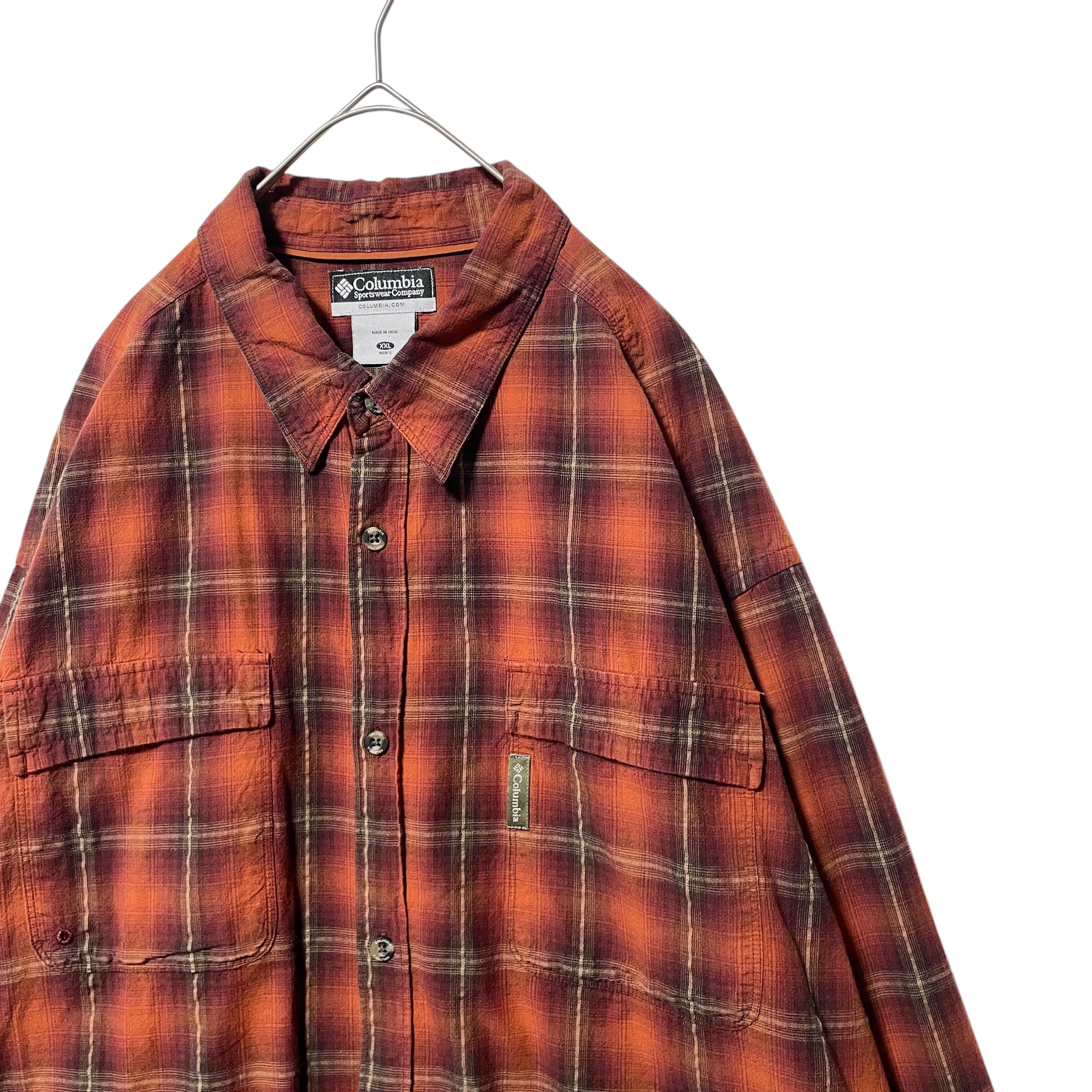 コロンビア オンブレチェック柄 長袖シャツ オレンジ 茶色 ビッグサイズ 2XL