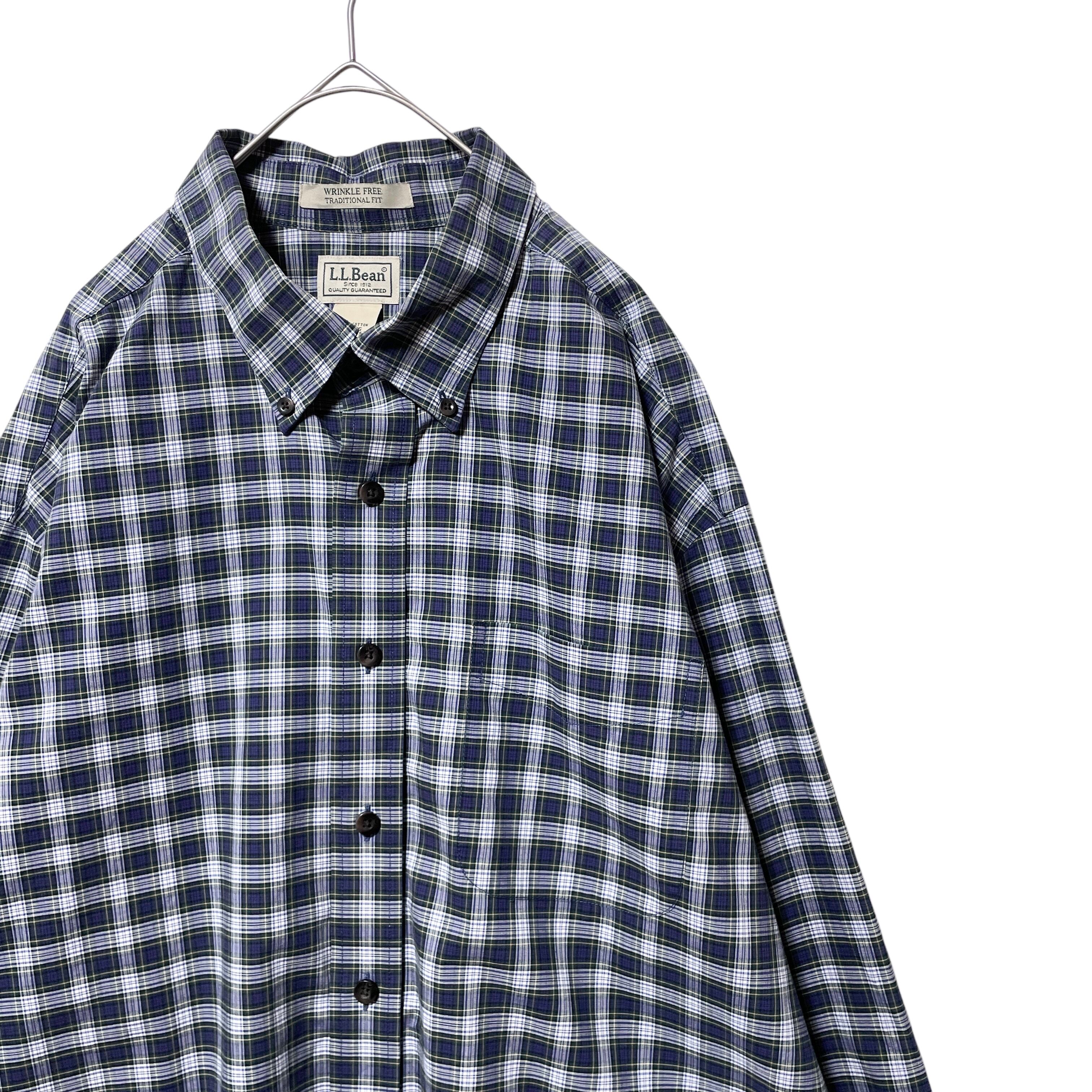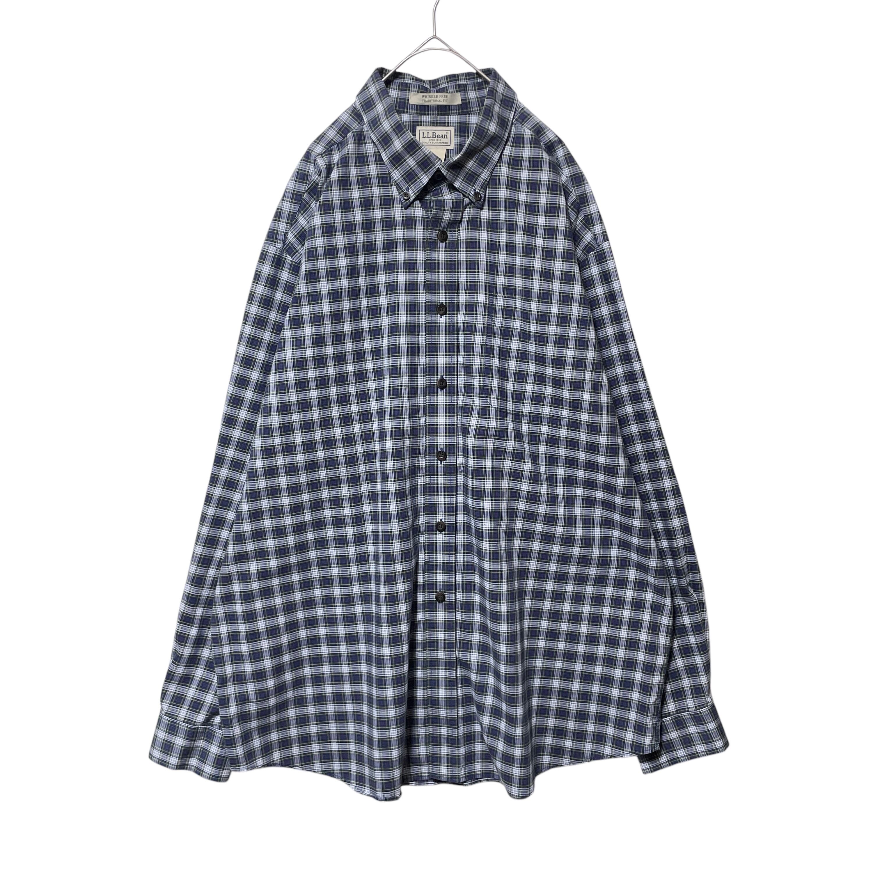 エルエルビーン タータンチェック柄 長袖ボタンダウンシャツ ネイビー メンズXL