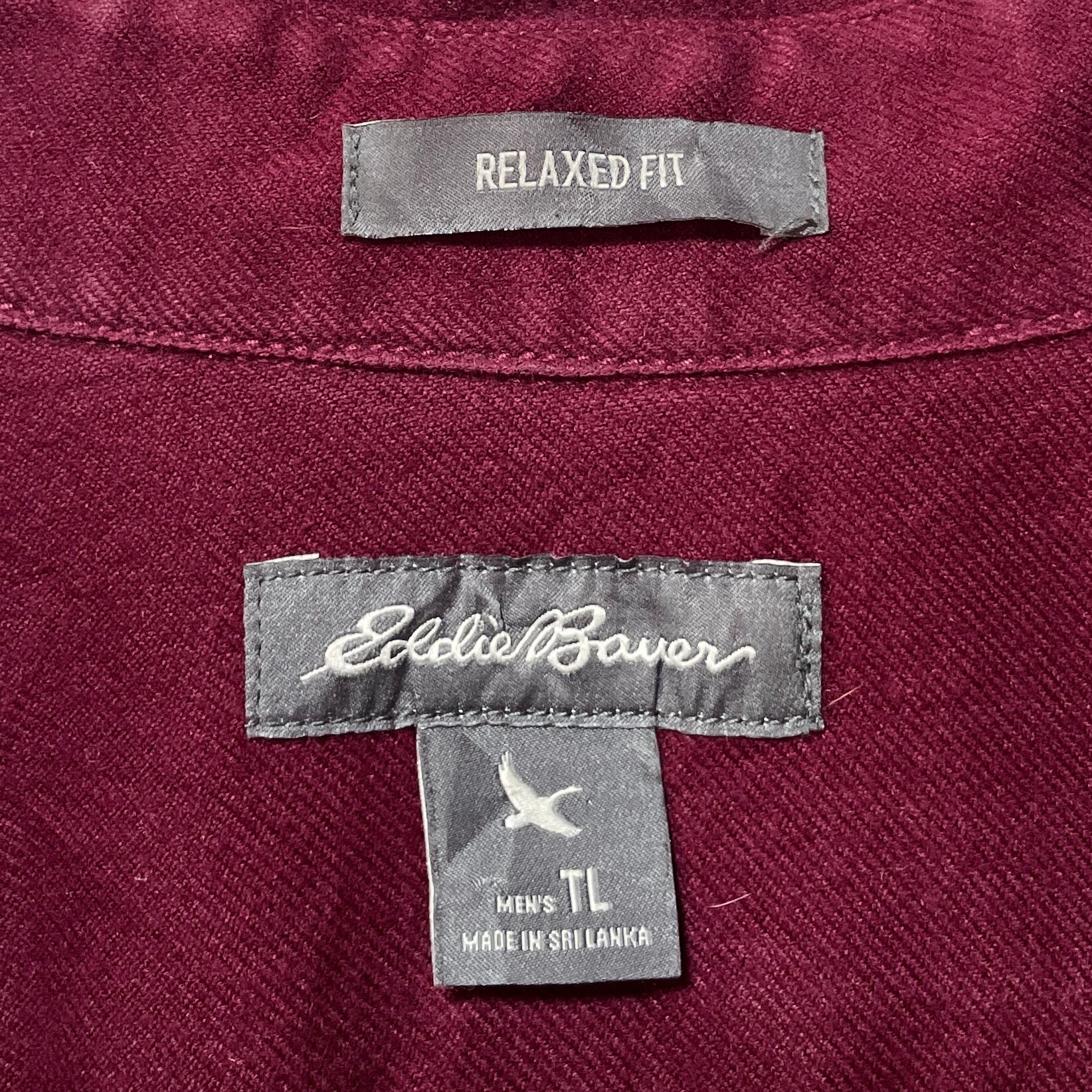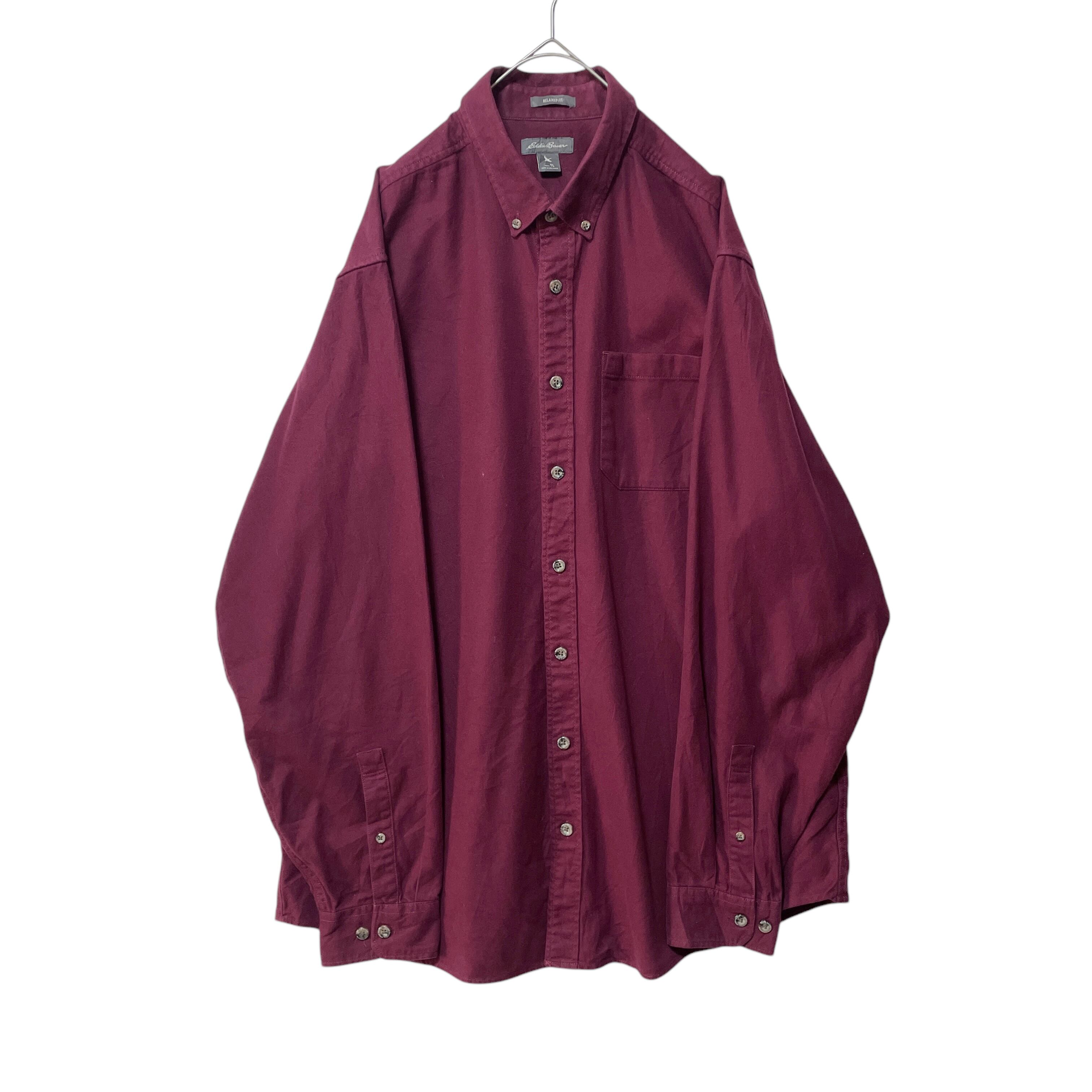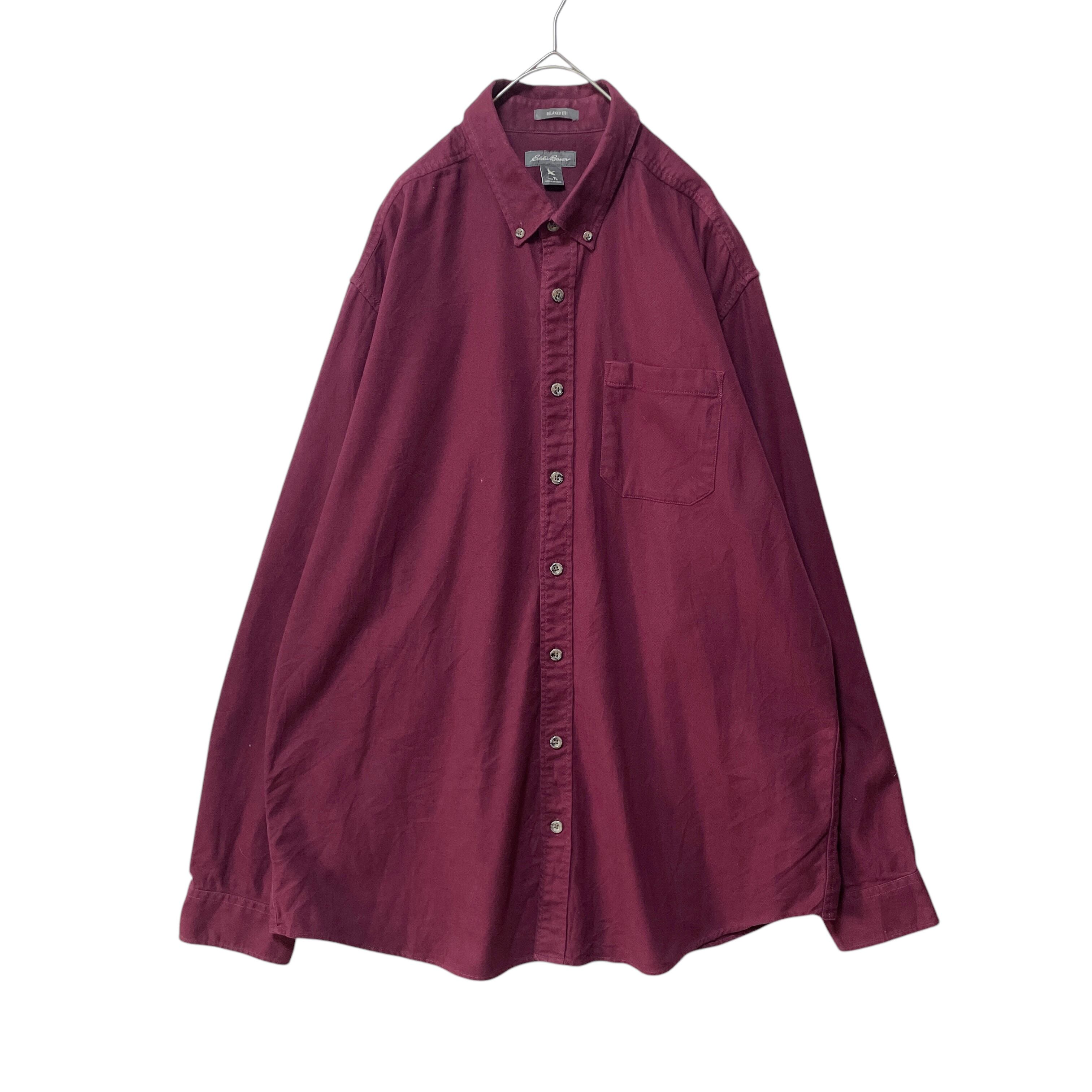 エディーバウアー 長袖ボタンダウンシャツ 無地 トール ワインレッド メンズL