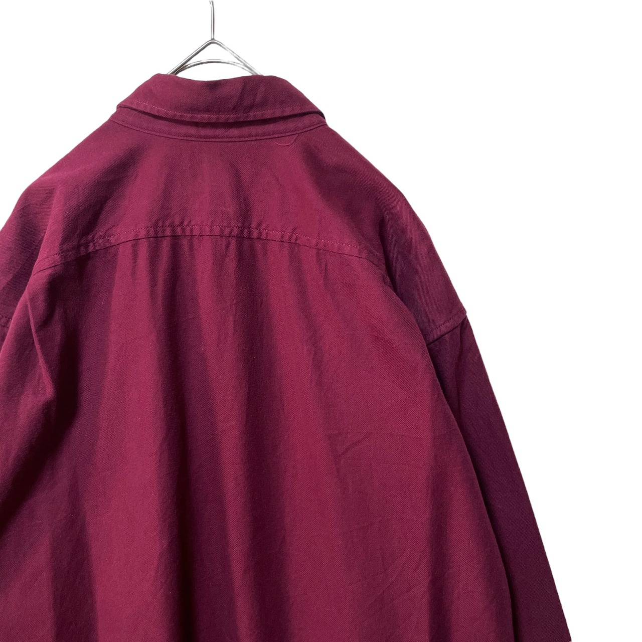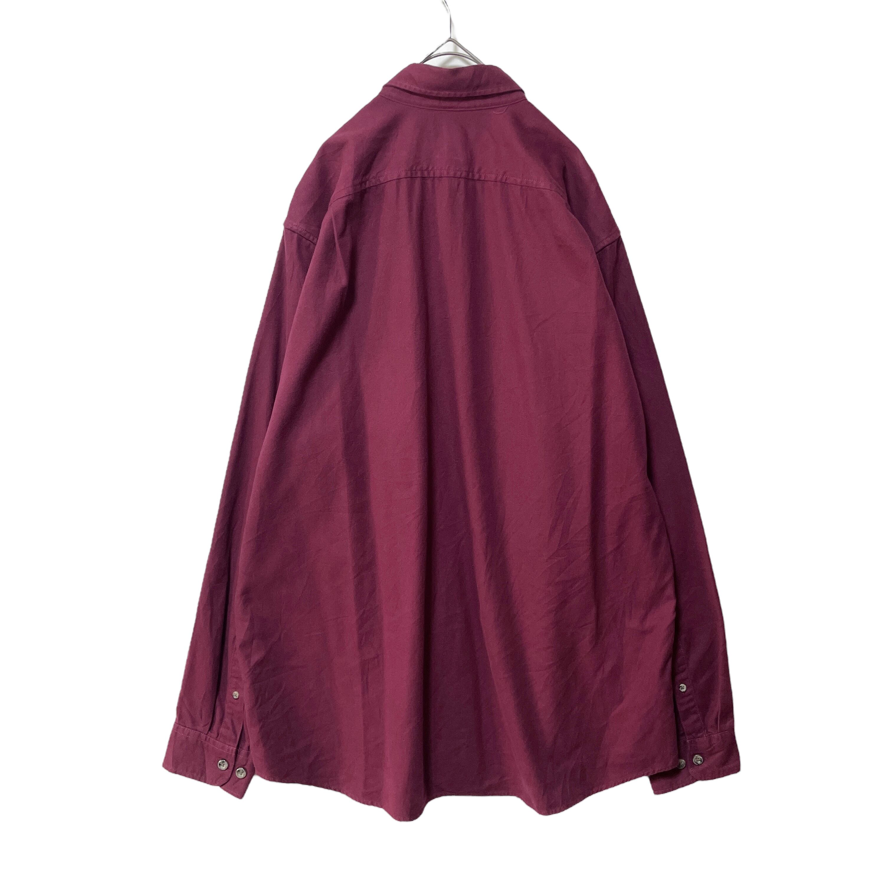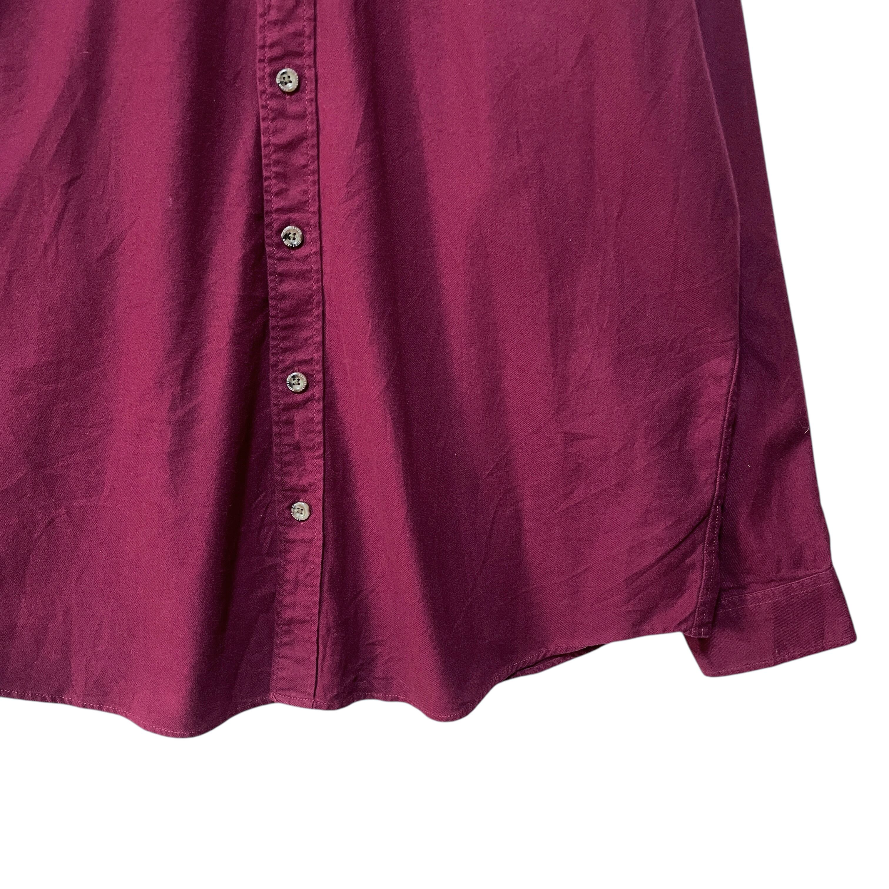 エディーバウアー 長袖ボタンダウンシャツ 無地 トール ワインレッド メンズL