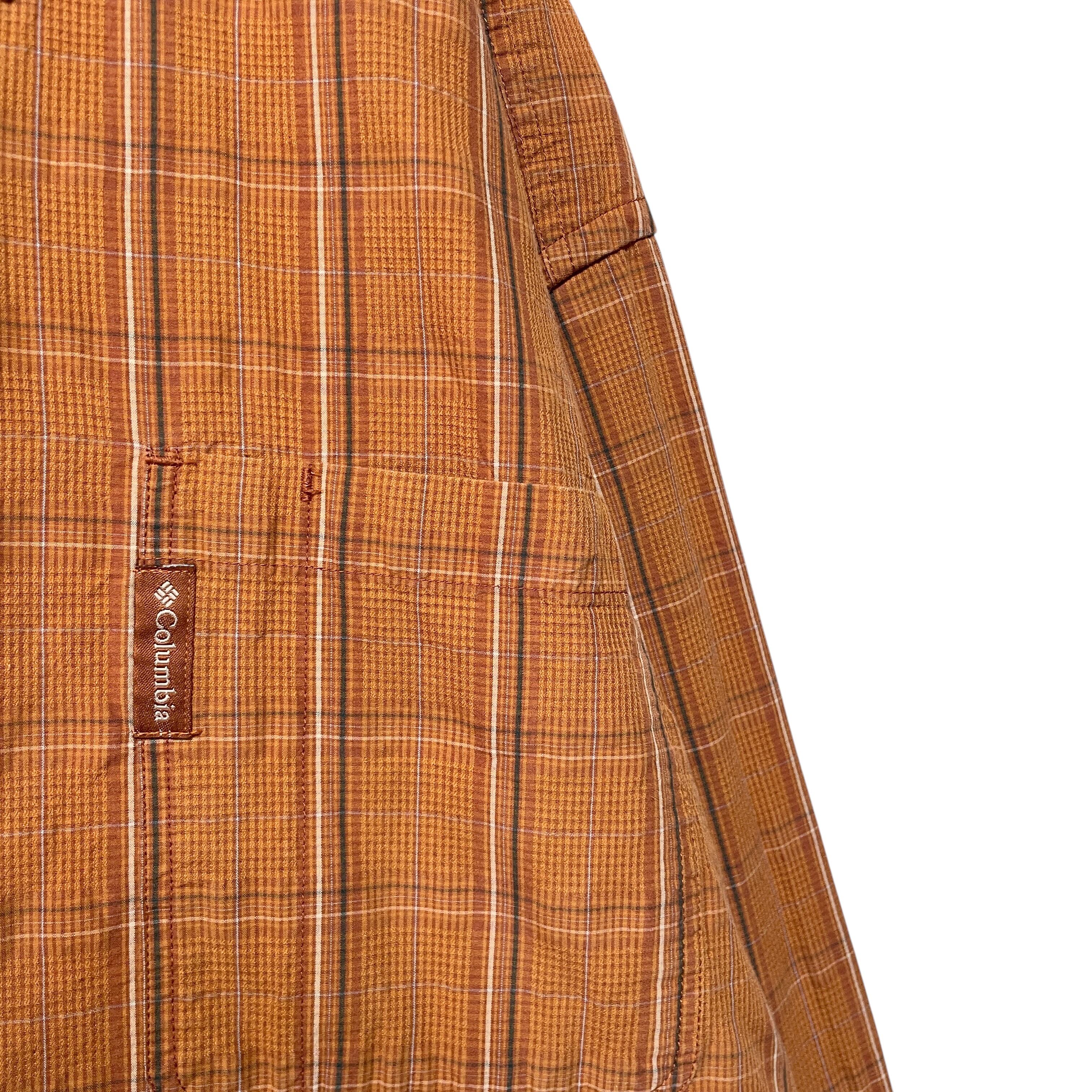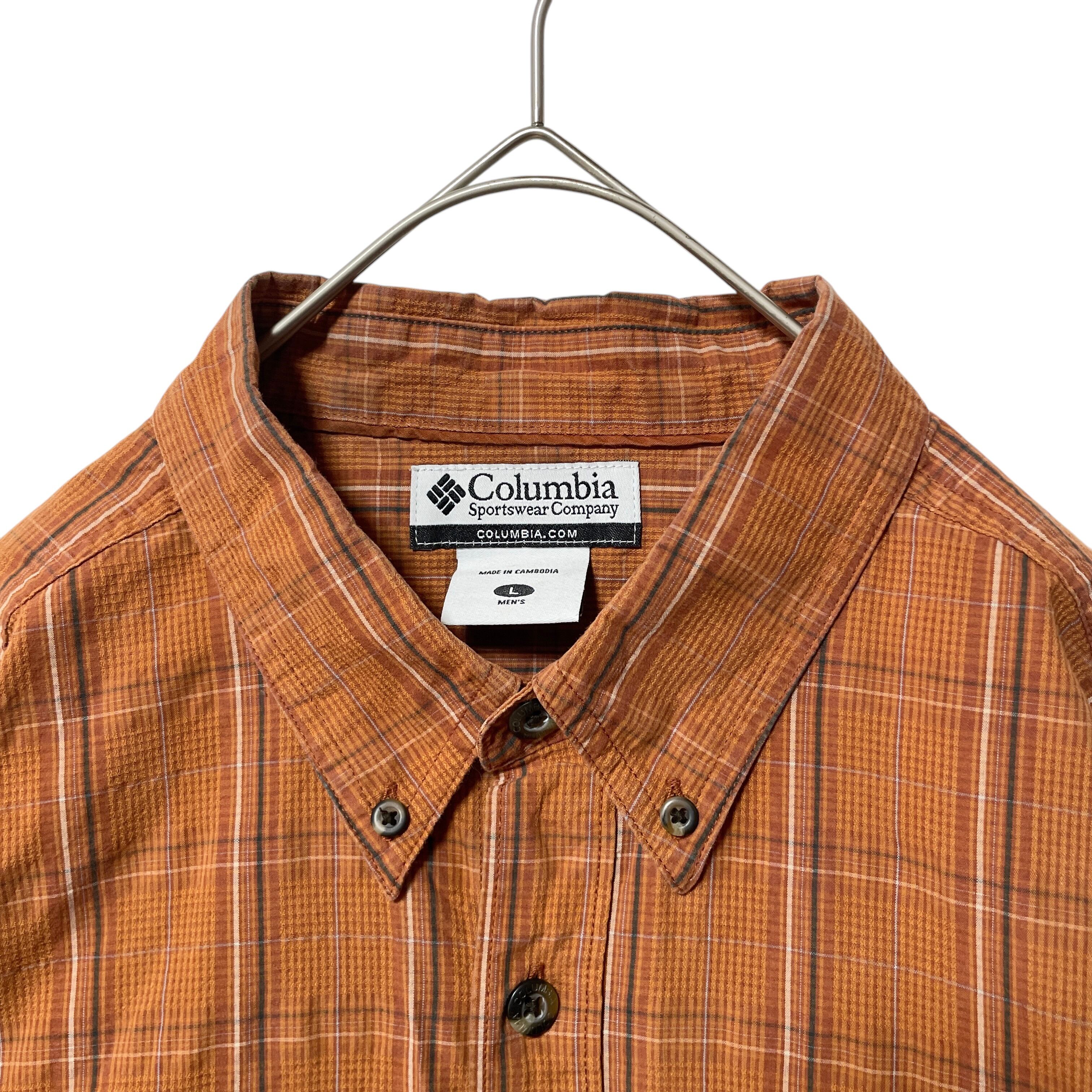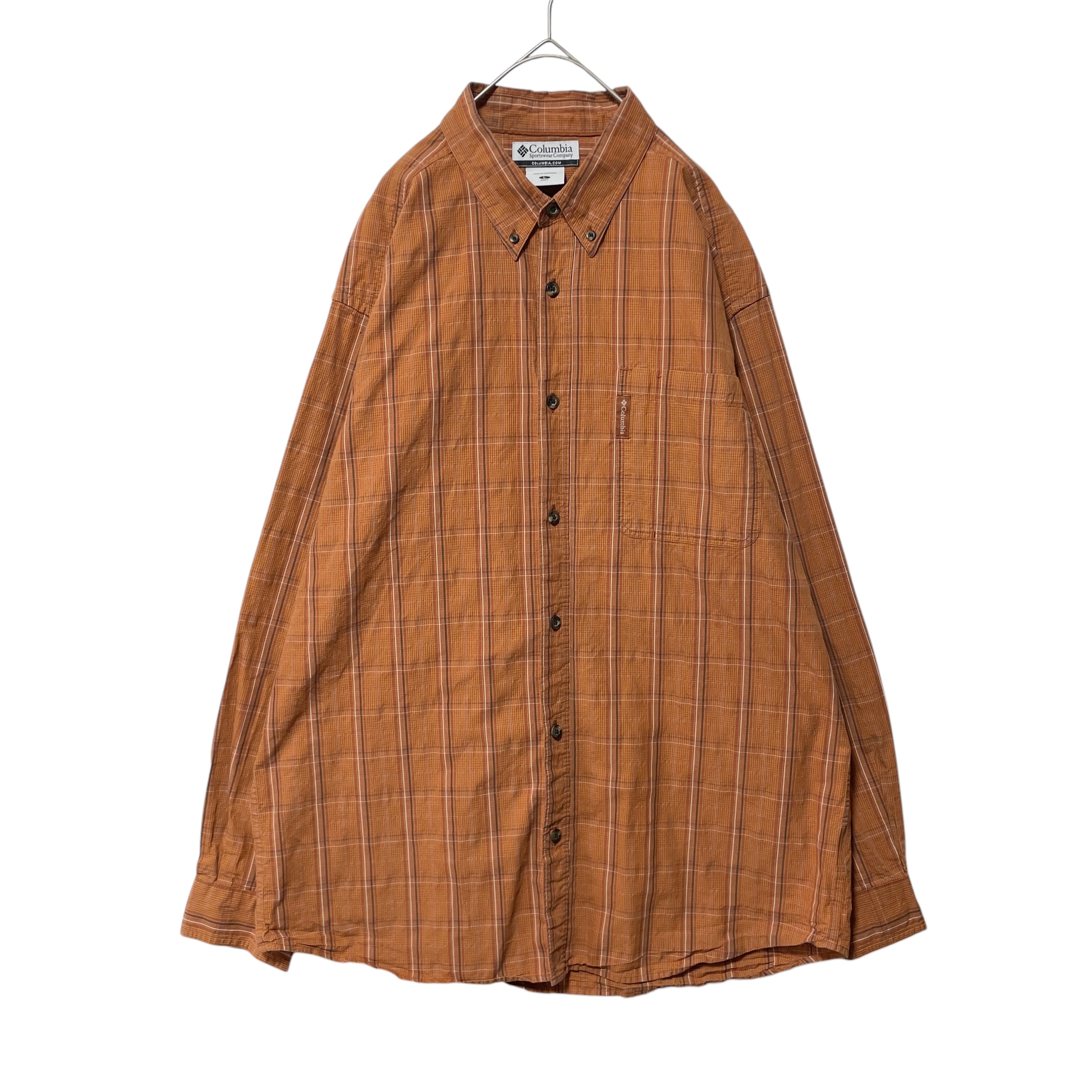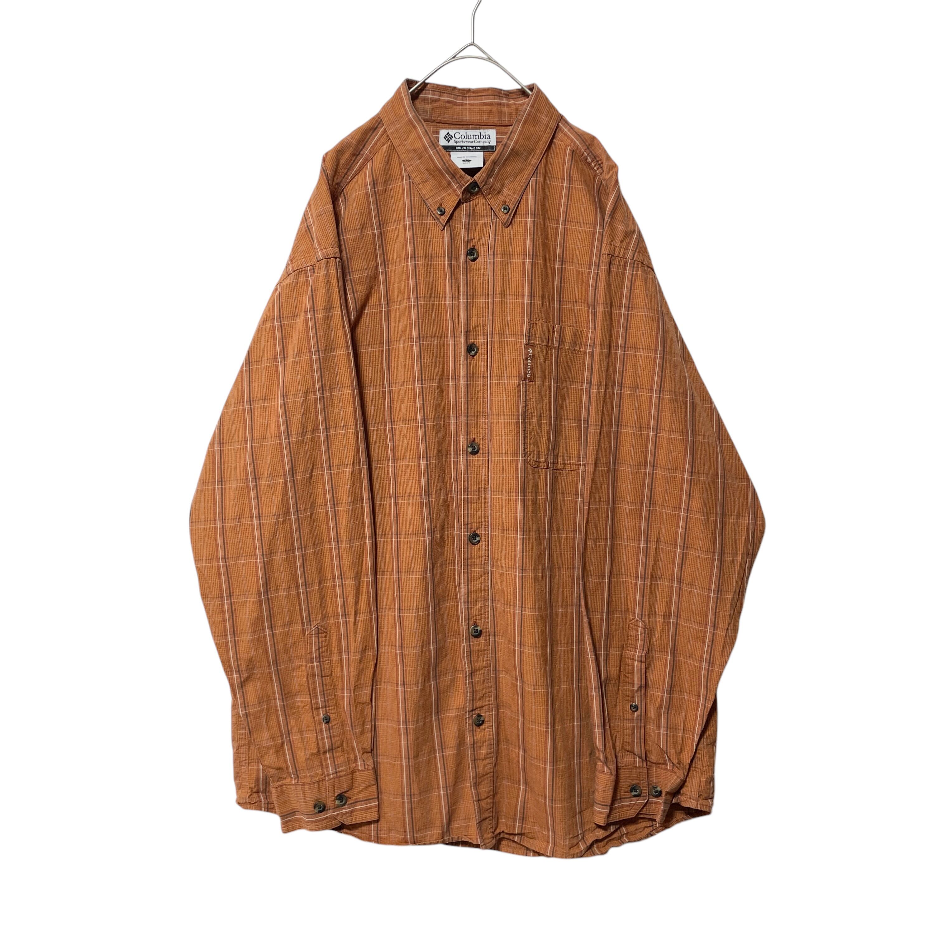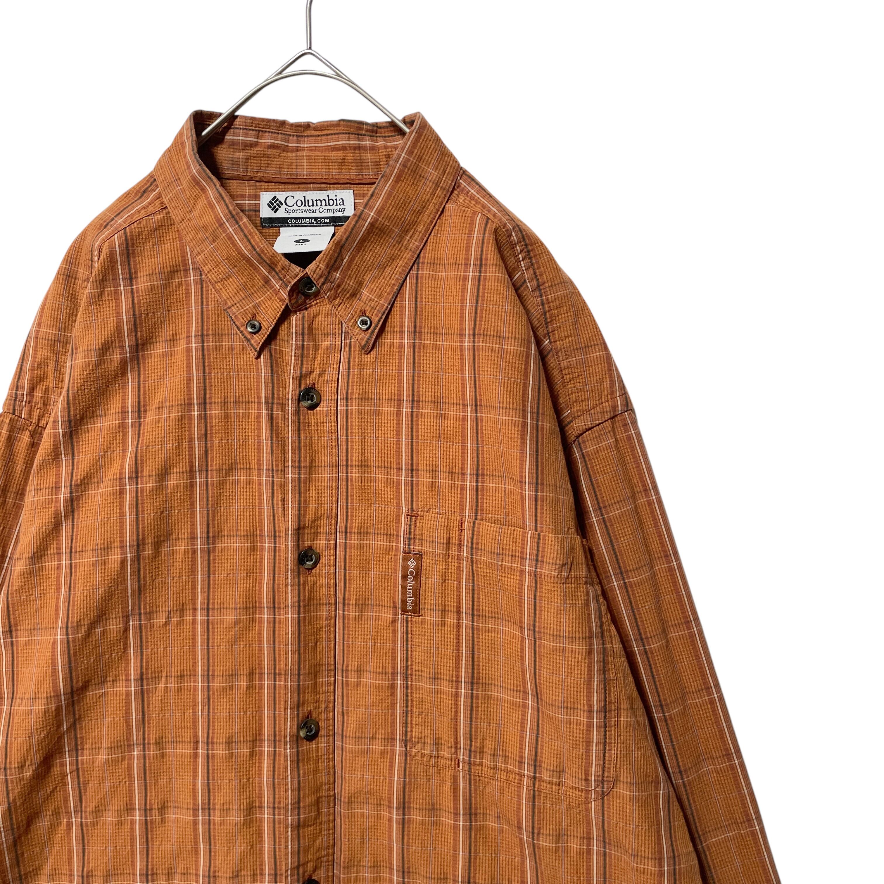 コロンビア チェック柄 長袖ボタンダウンシャツ オレンジ系 メンズ L 古着