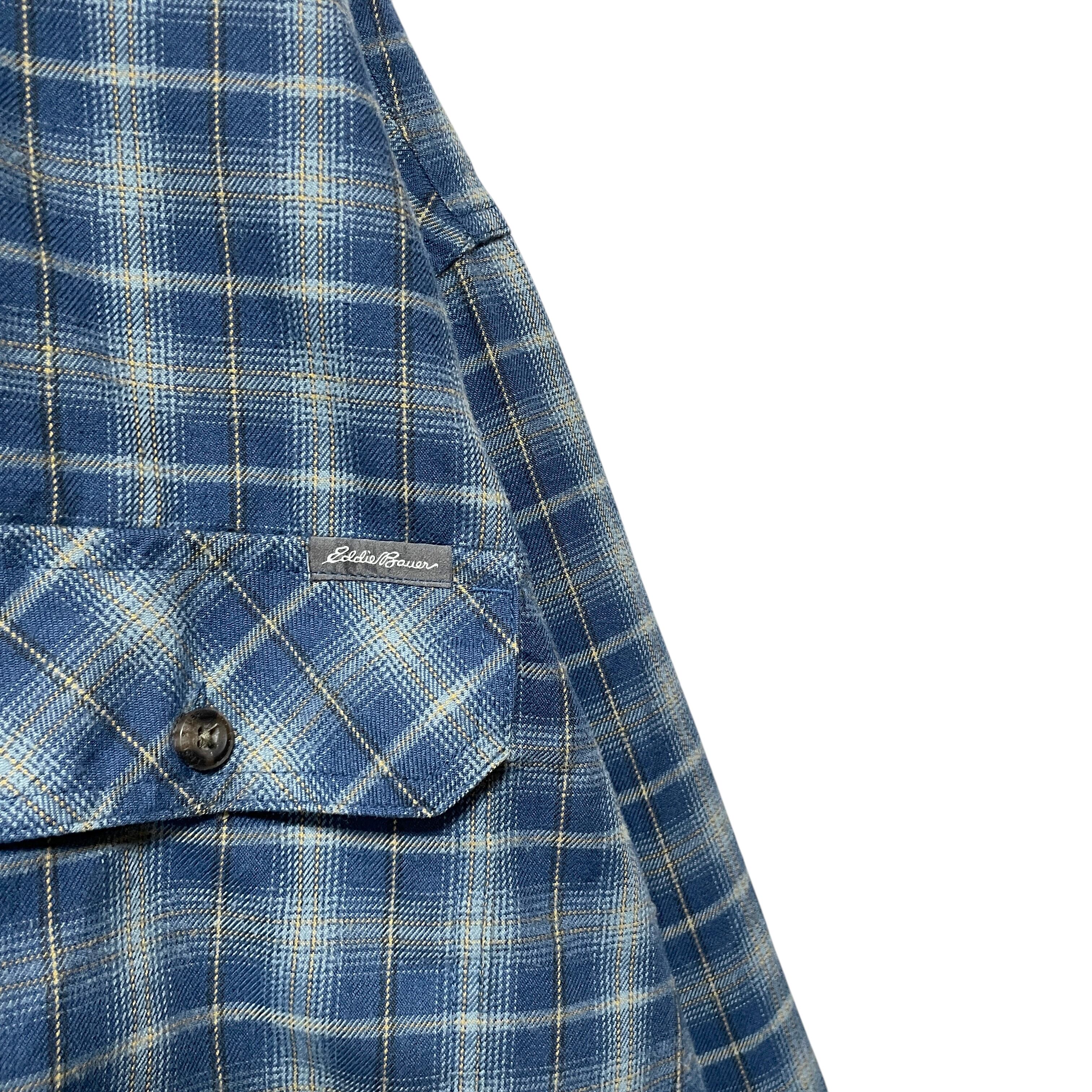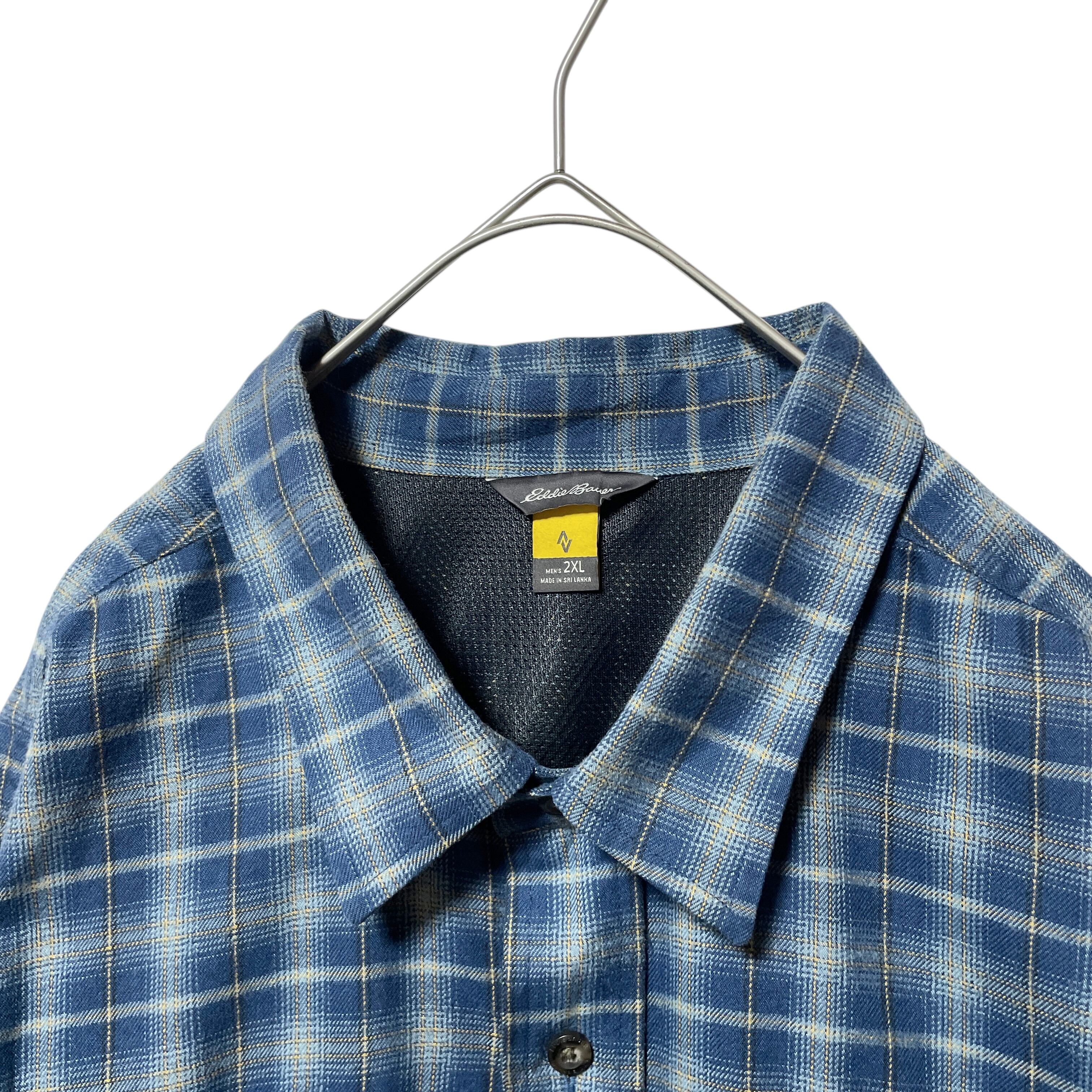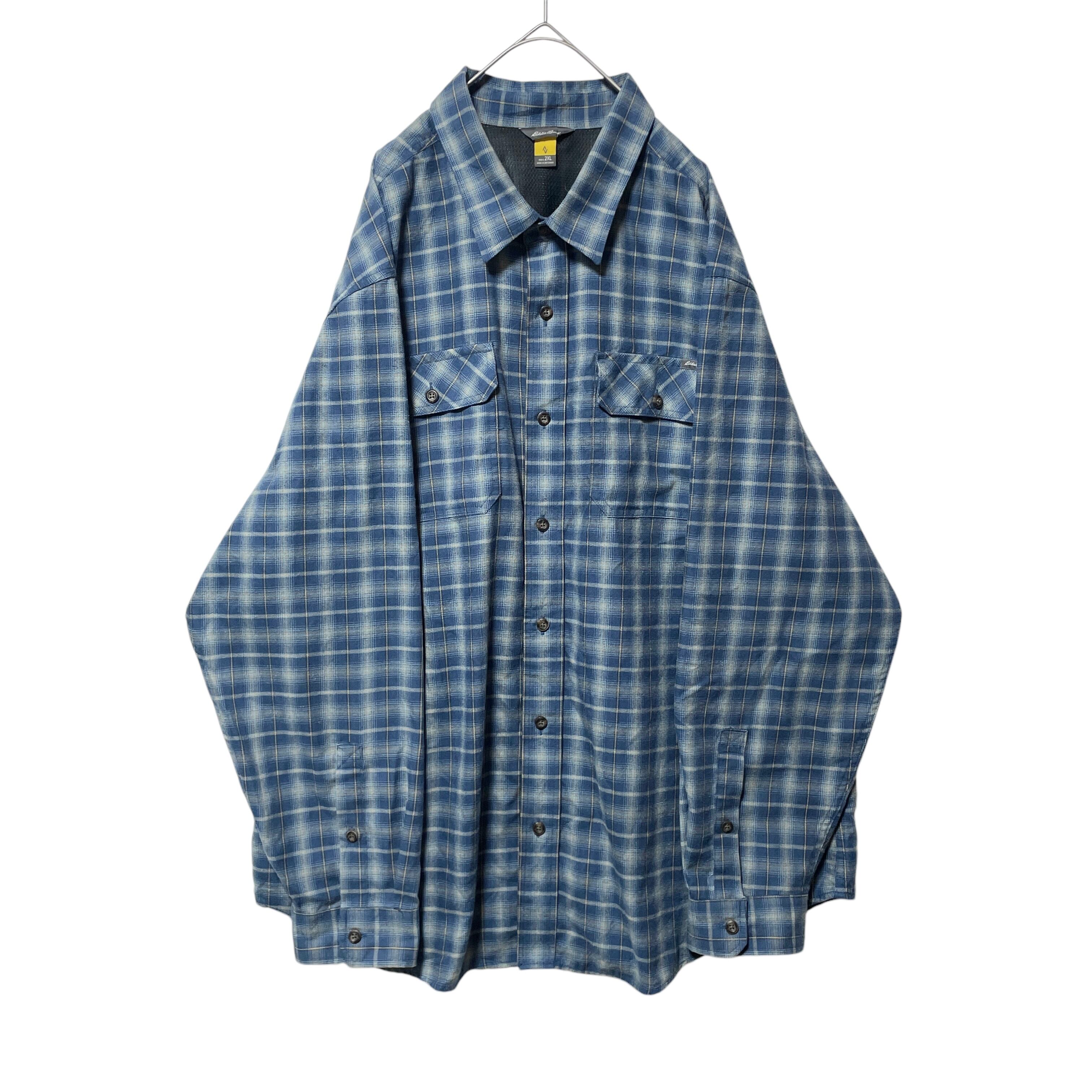 大きいサイズ エディーバウアー オンブレチェック柄 長袖シャツ ネイビー 2XL
