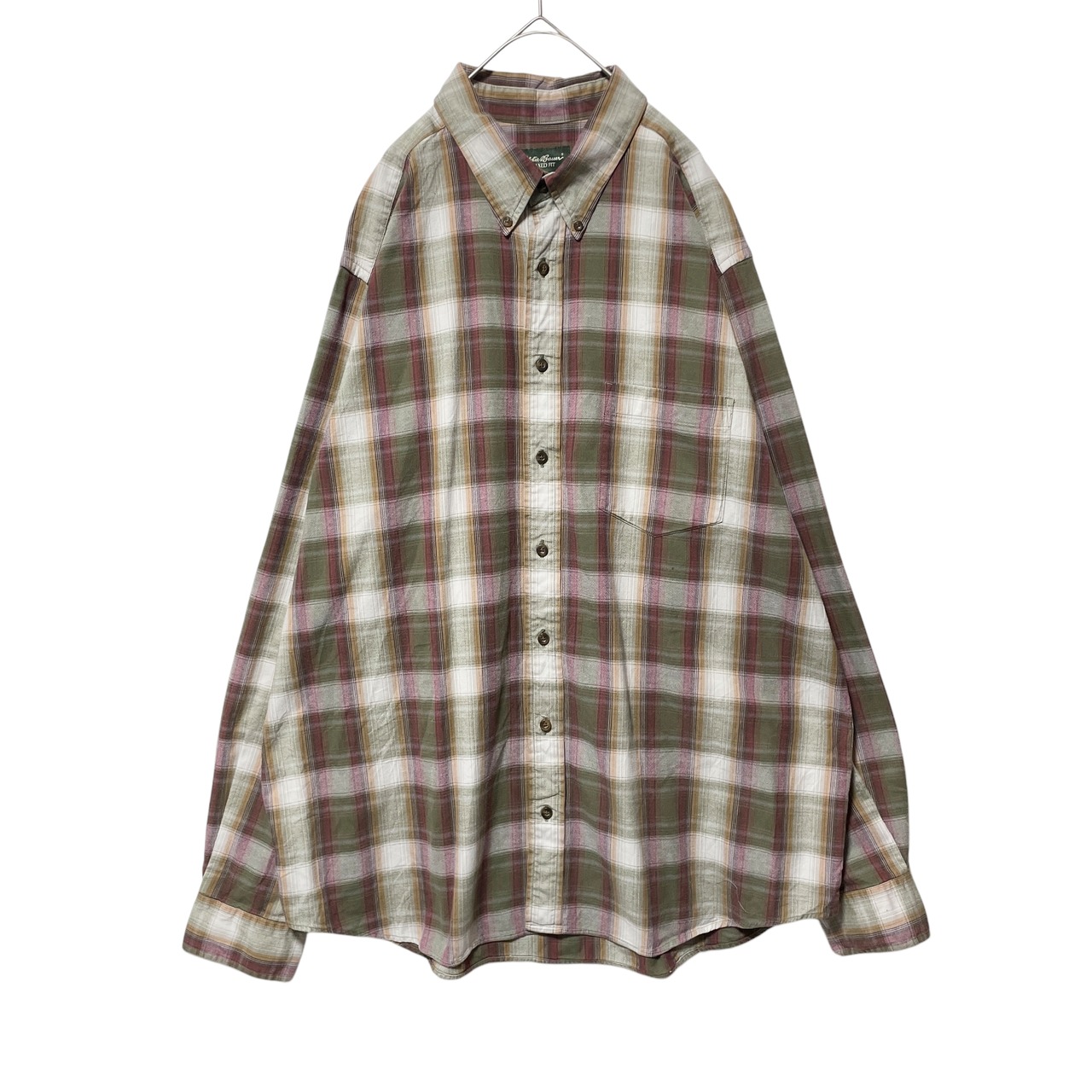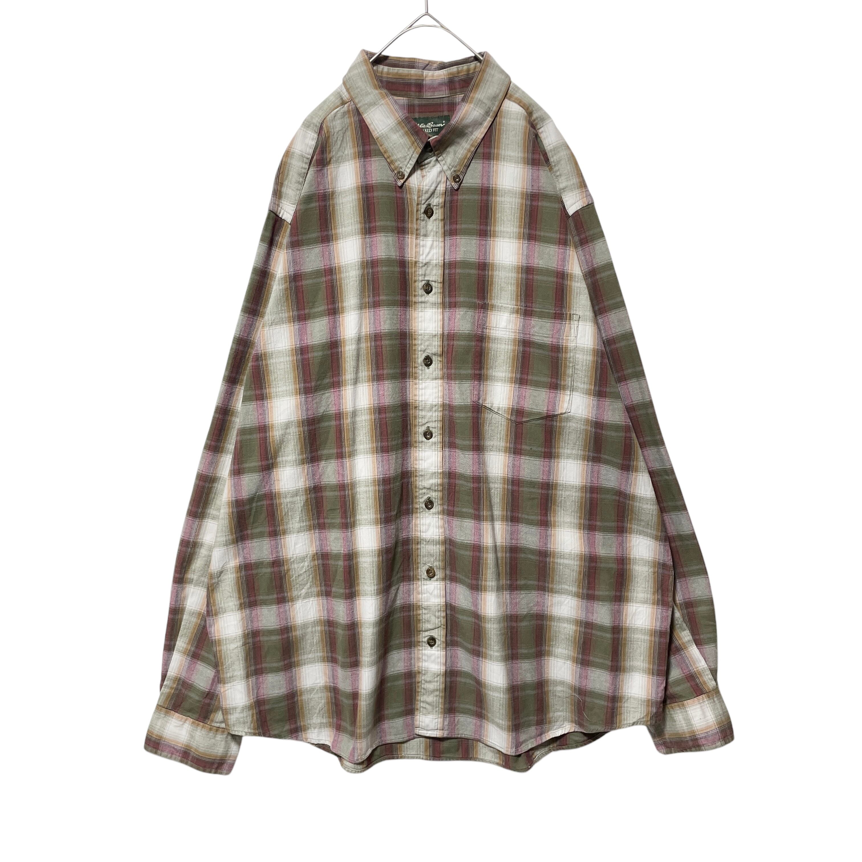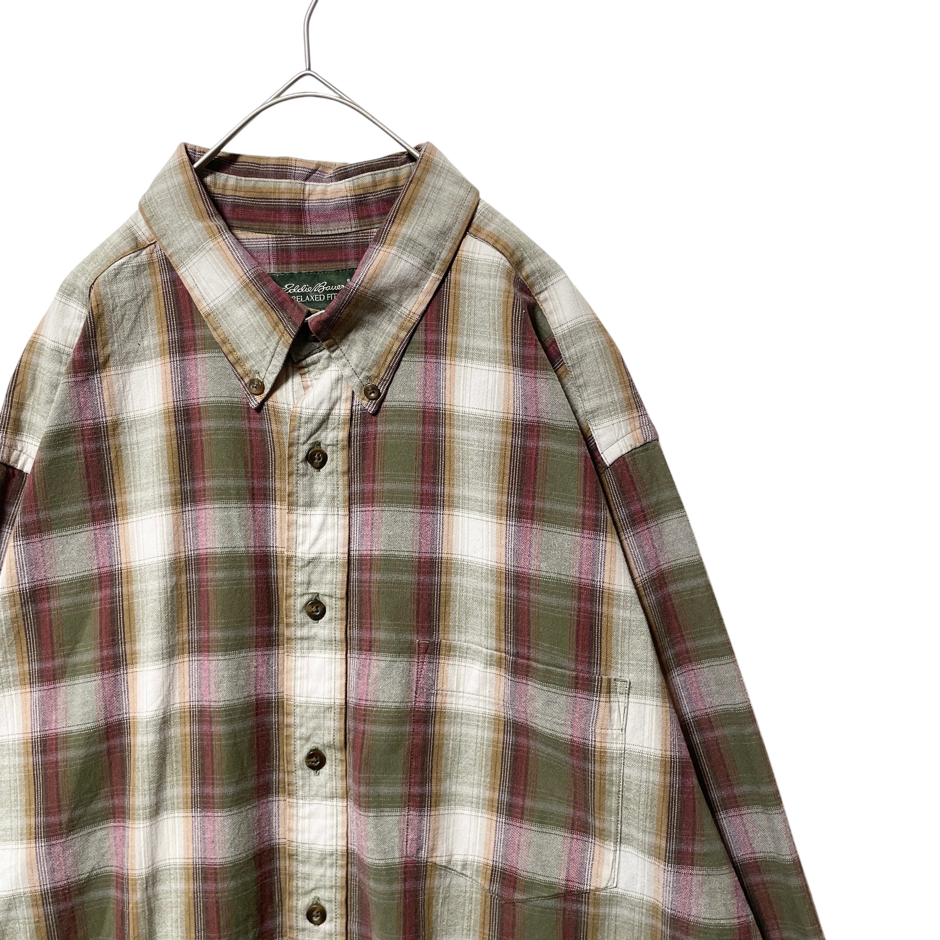 人気 エディーバウアー オンブレチェック 長袖BDシャツ カーキ ベージュ XL
