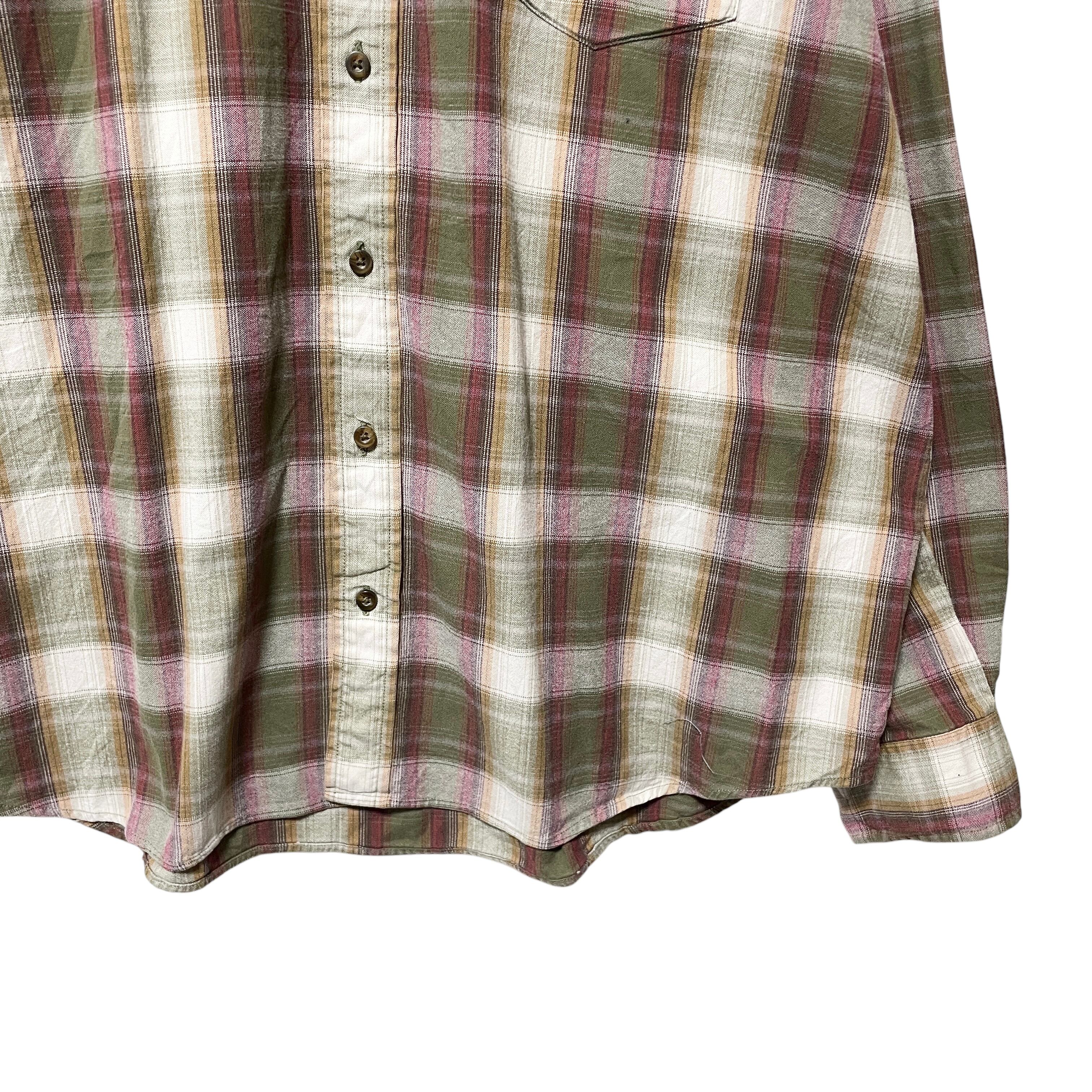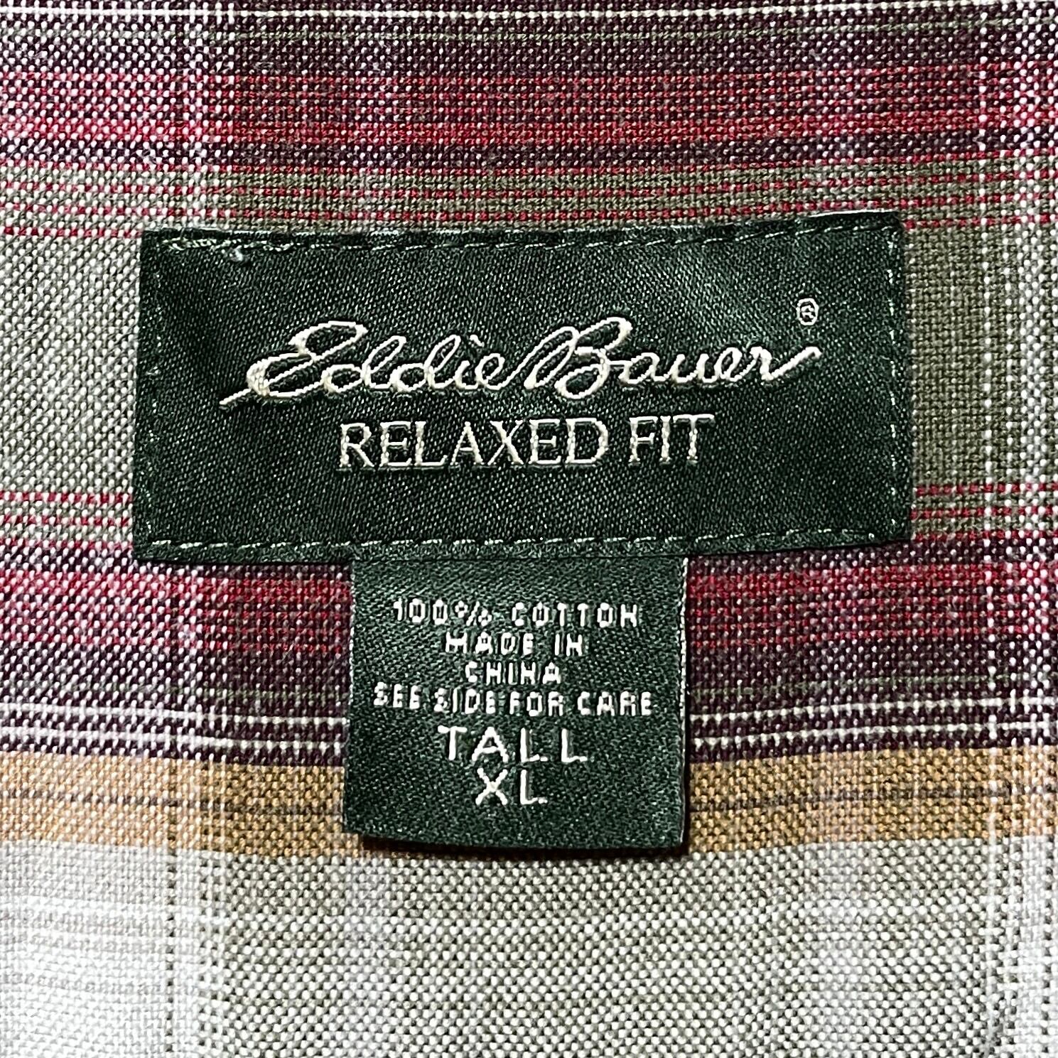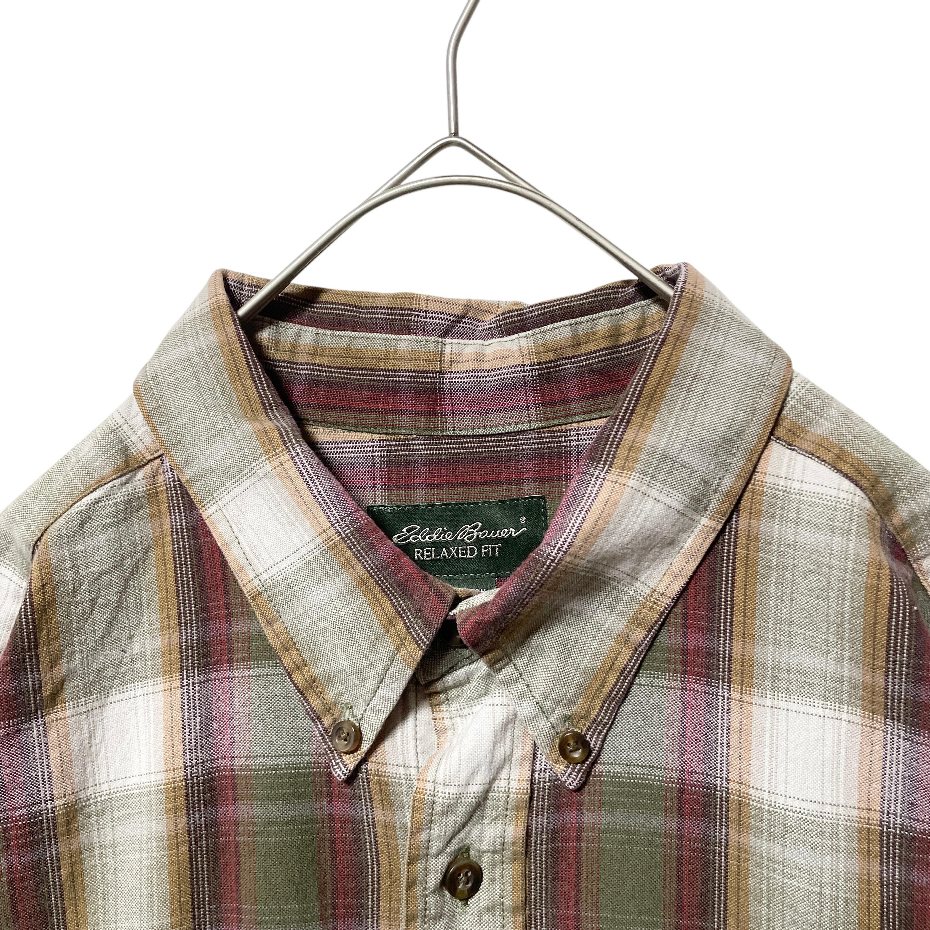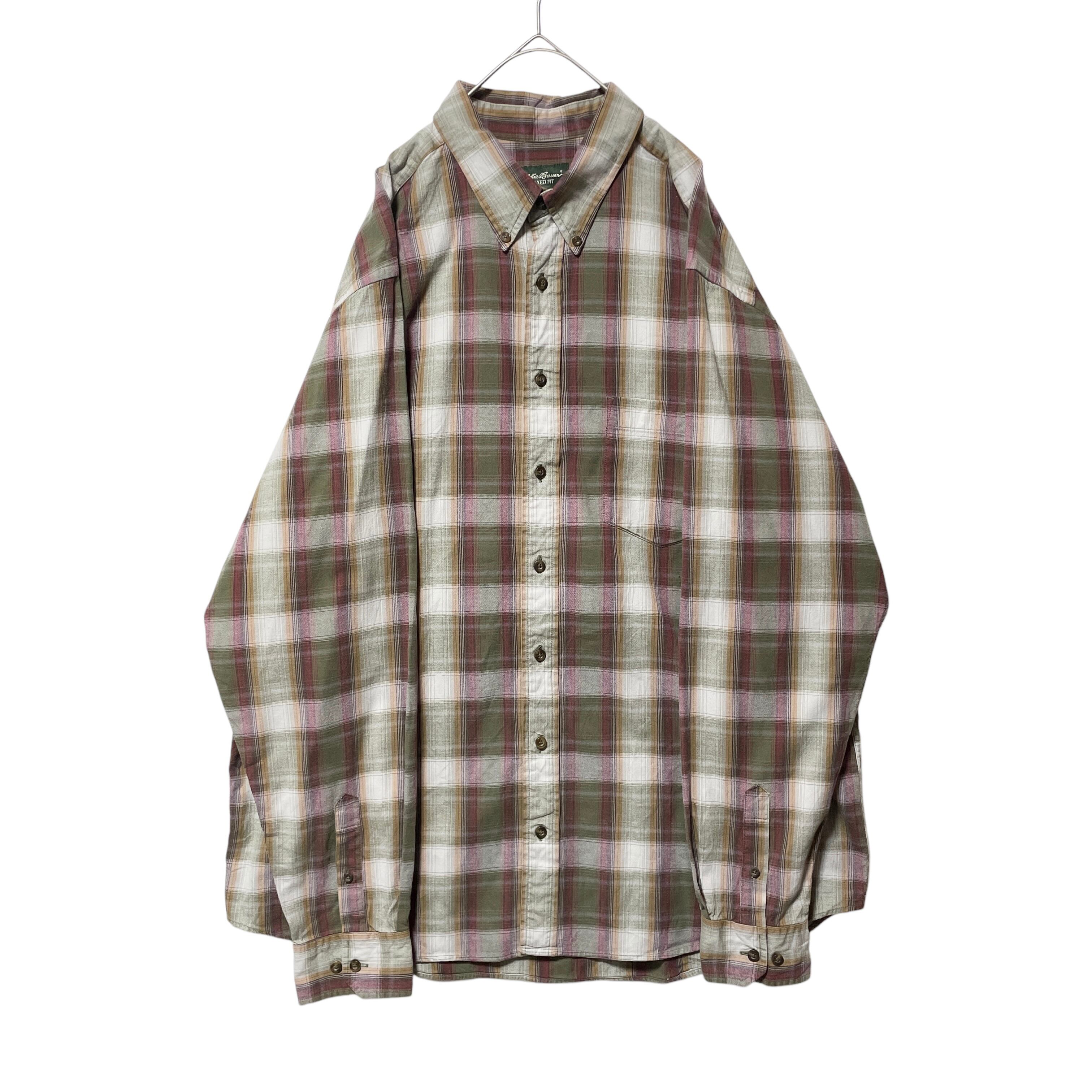 人気 エディーバウアー オンブレチェック 長袖BDシャツ カーキ ベージュ XL