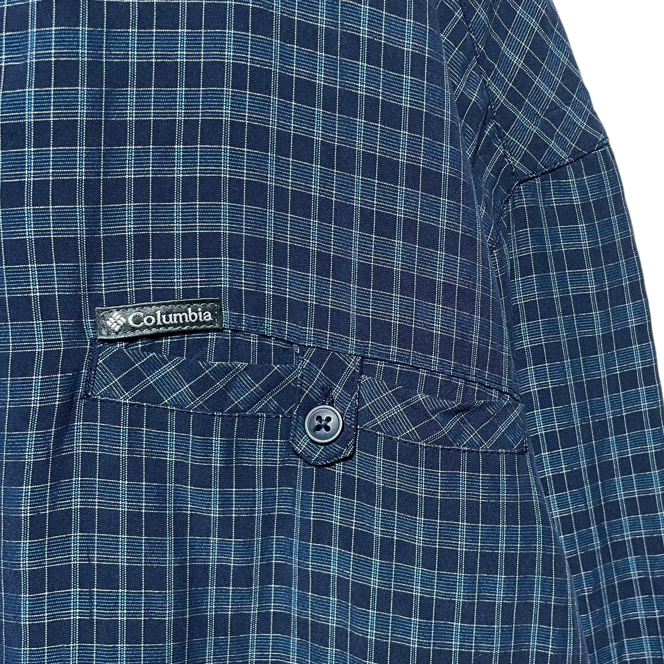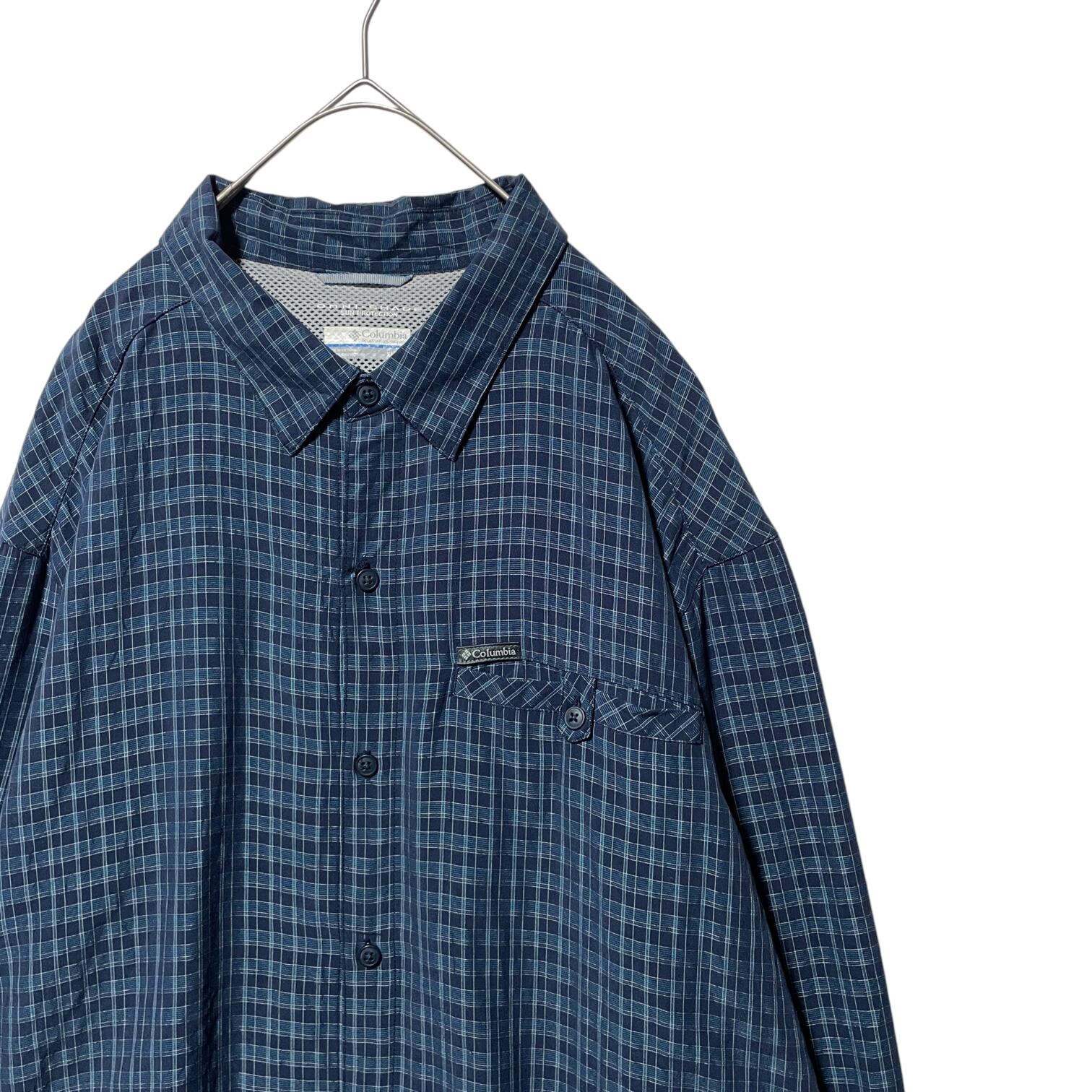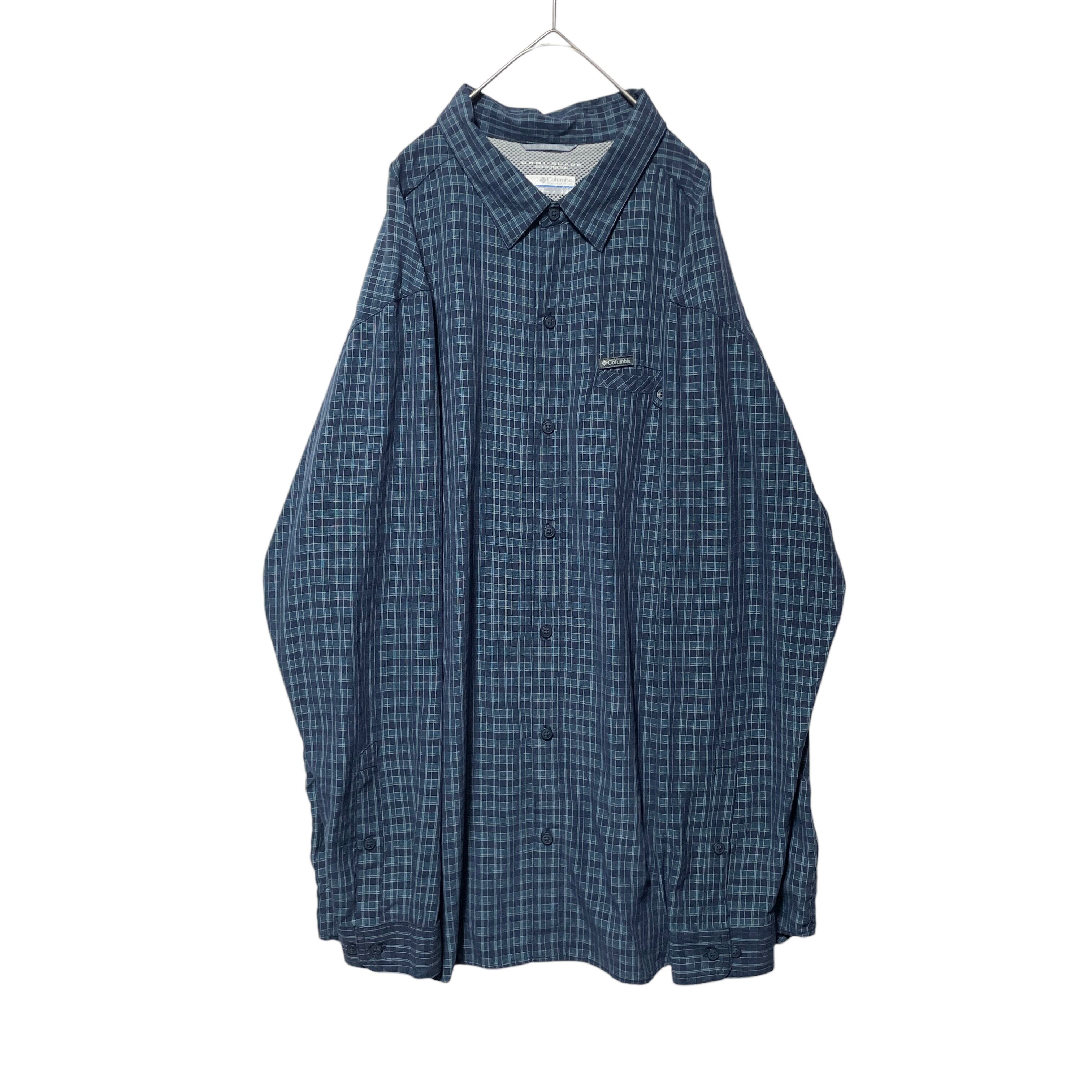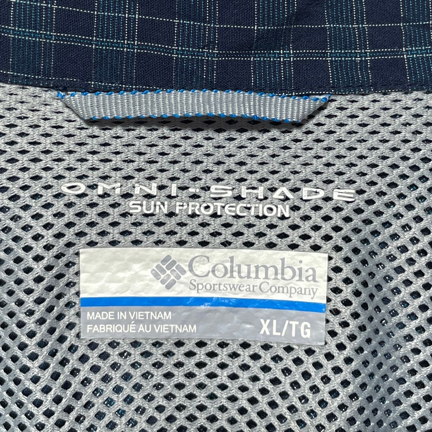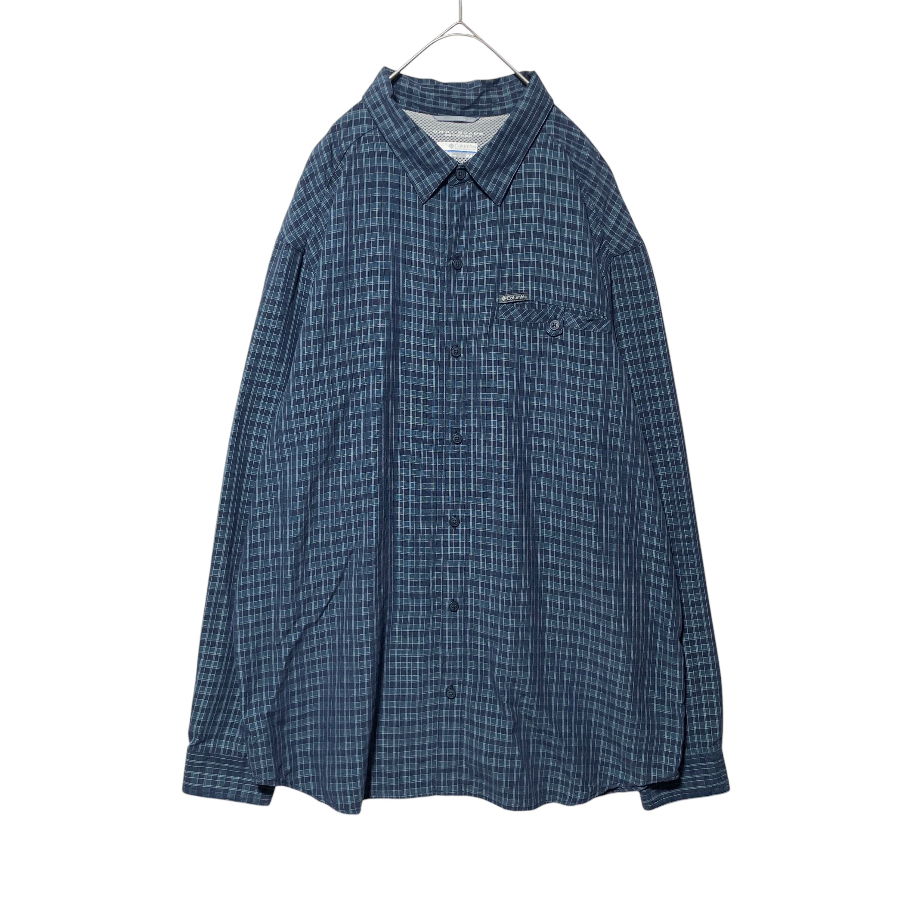 コロンビア オムニシェイド チェック柄 長袖シャツ UVカット機能 紺 XL