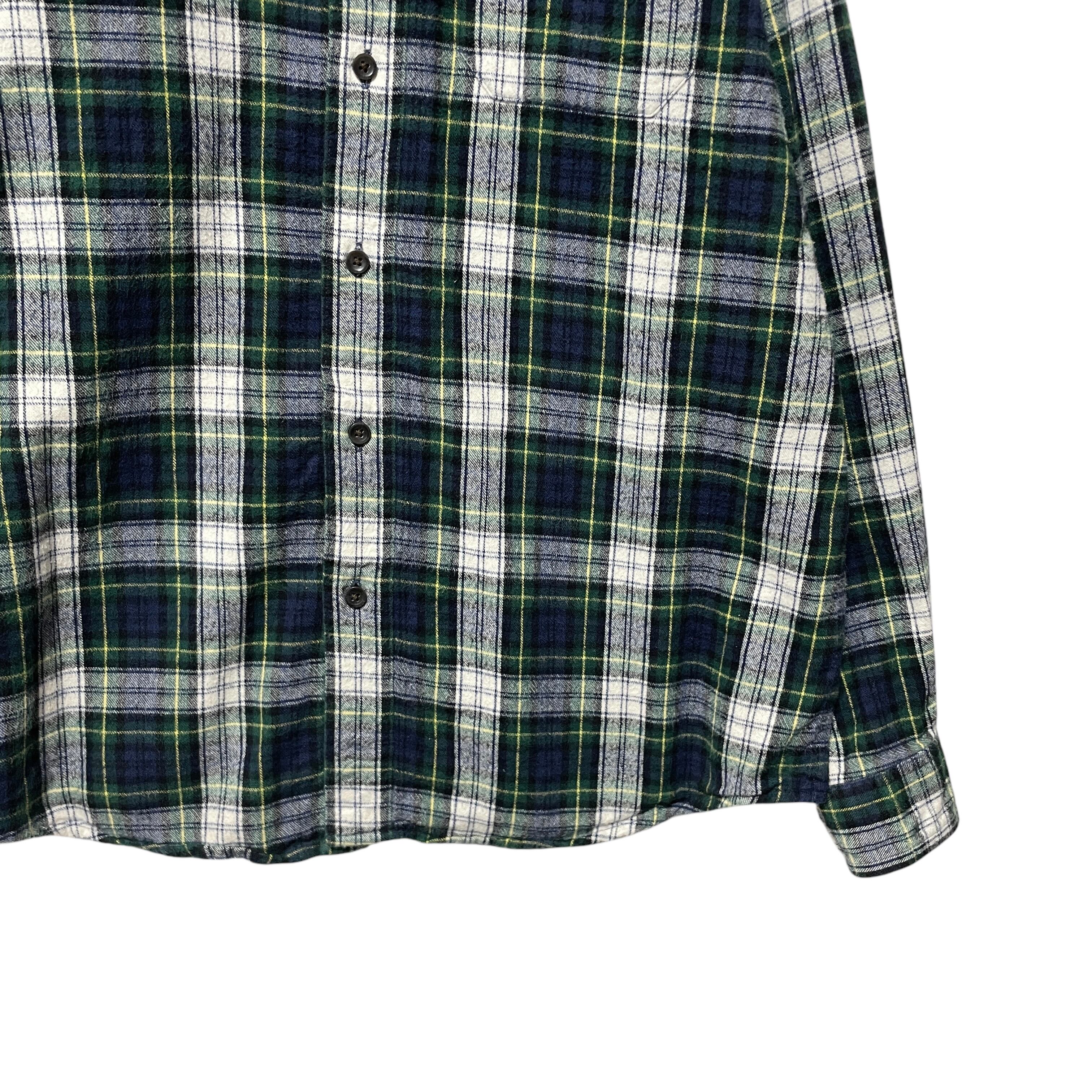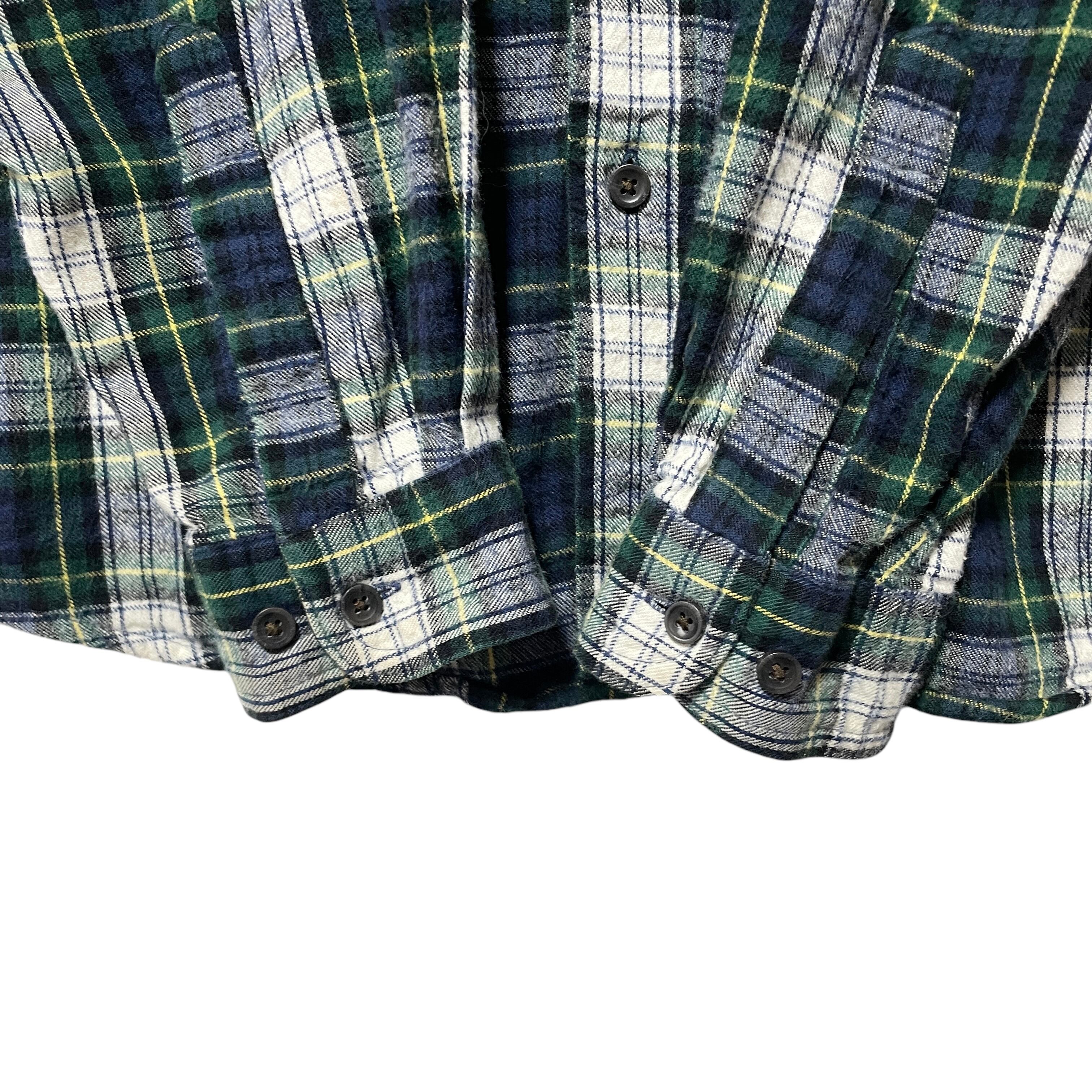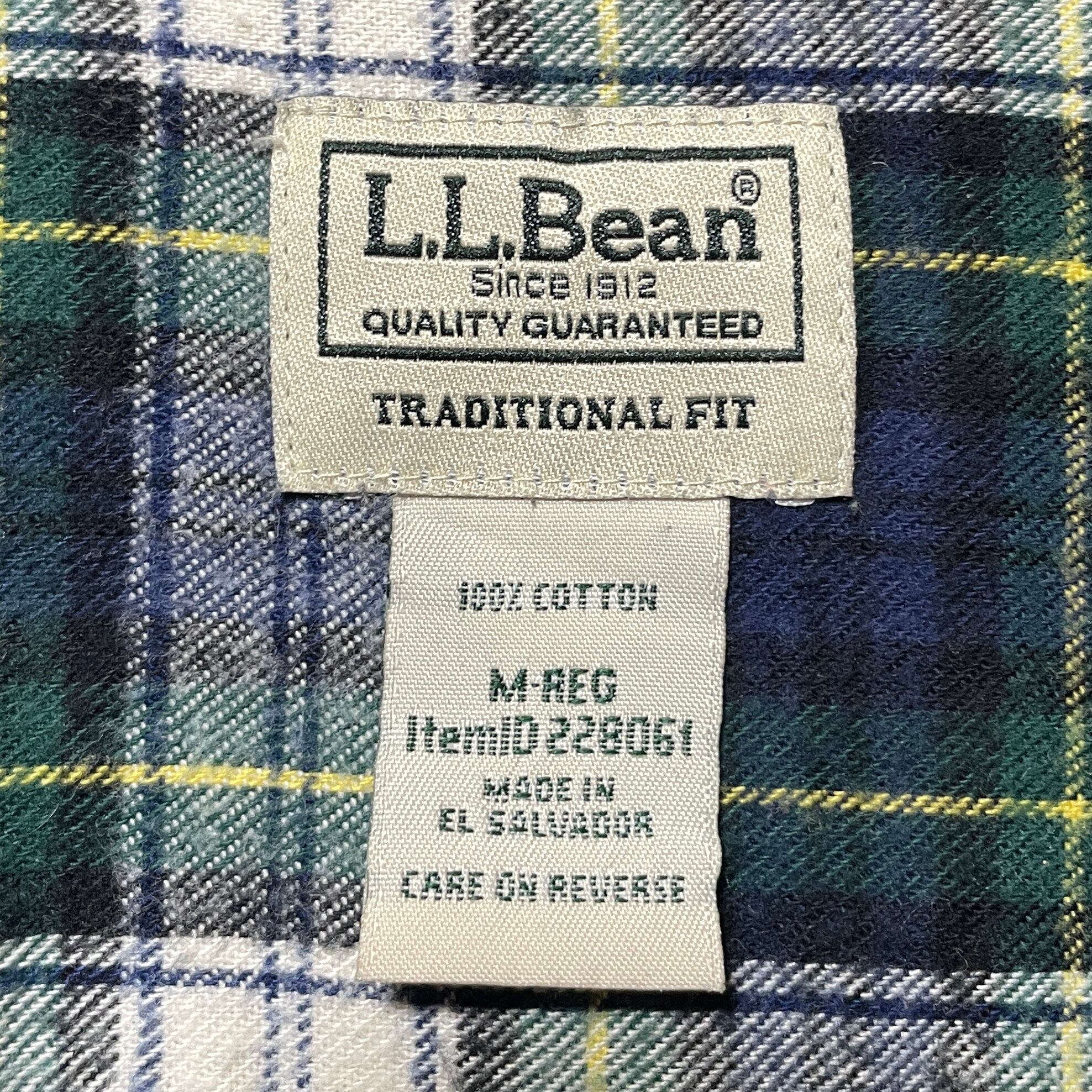 エルエルビーン タータンチェック柄 フランネルシャツ 長袖BDシャツ 緑 紺 M