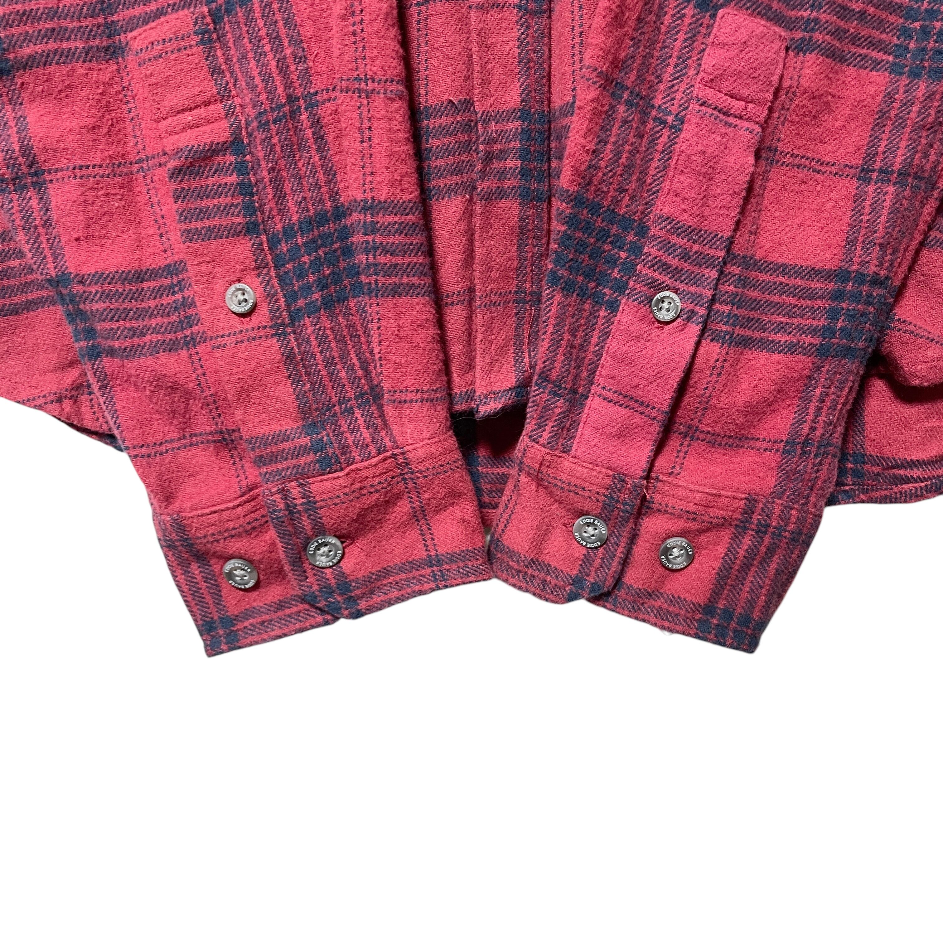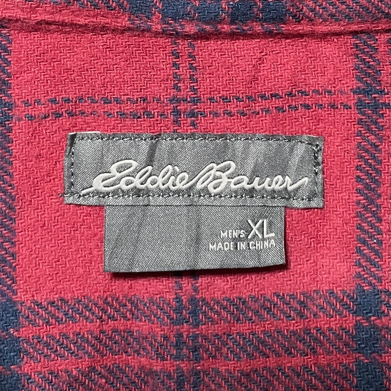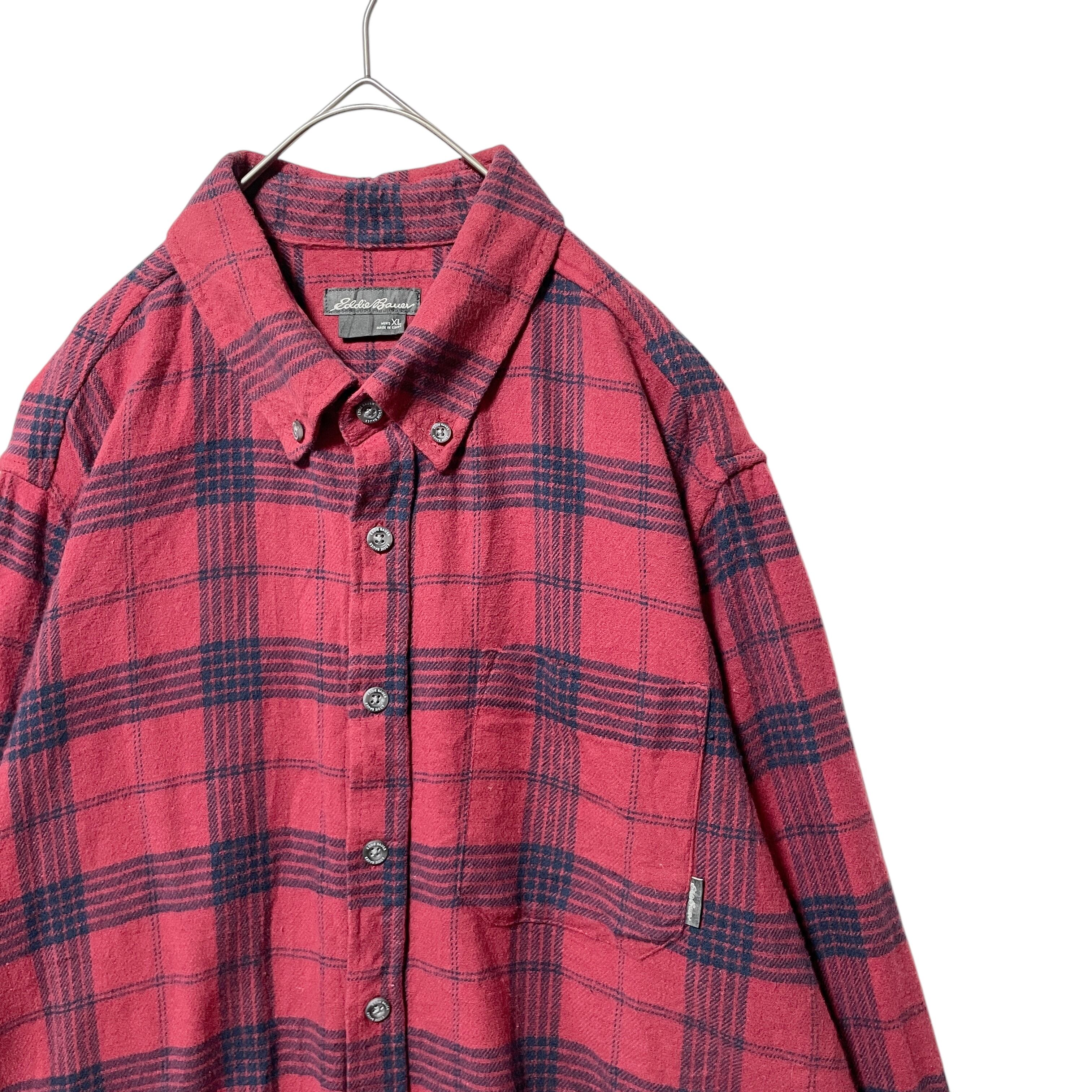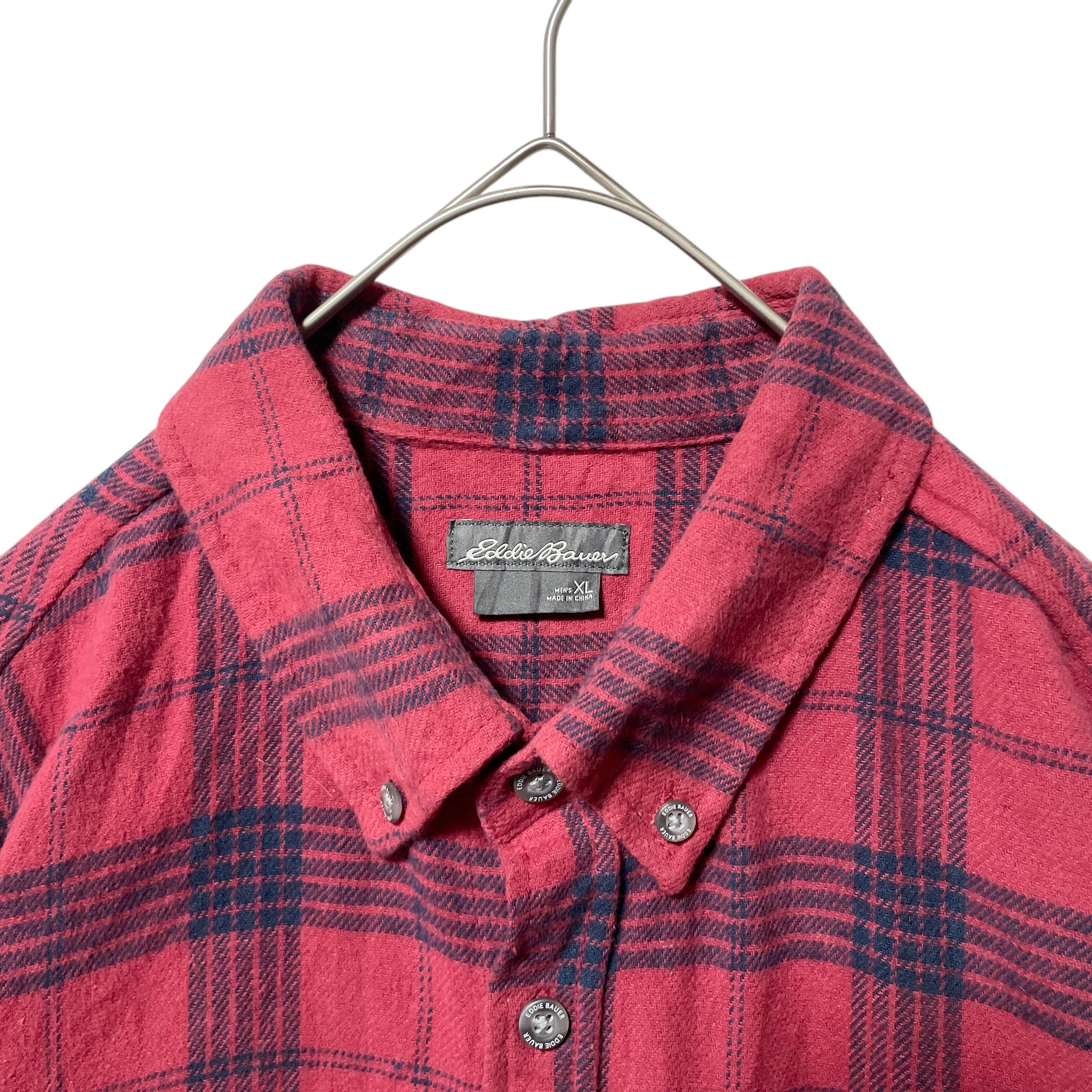 エディーバウアー チェック柄 長袖ボタンダウンシャツ メンズ XL 赤 レッド