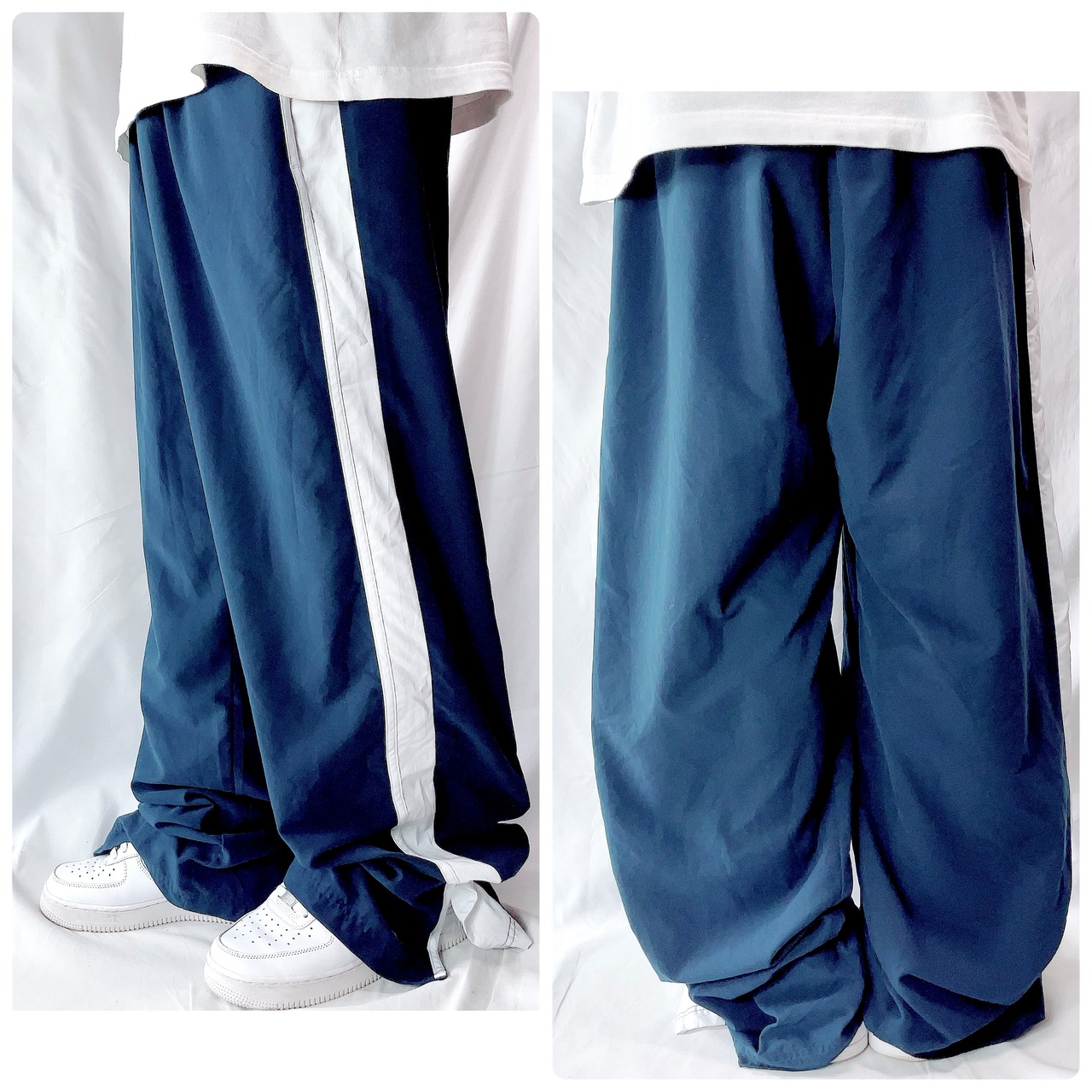 00s NIKE ナイキ トラックパンツ バギー 紺 ライン スリット XL