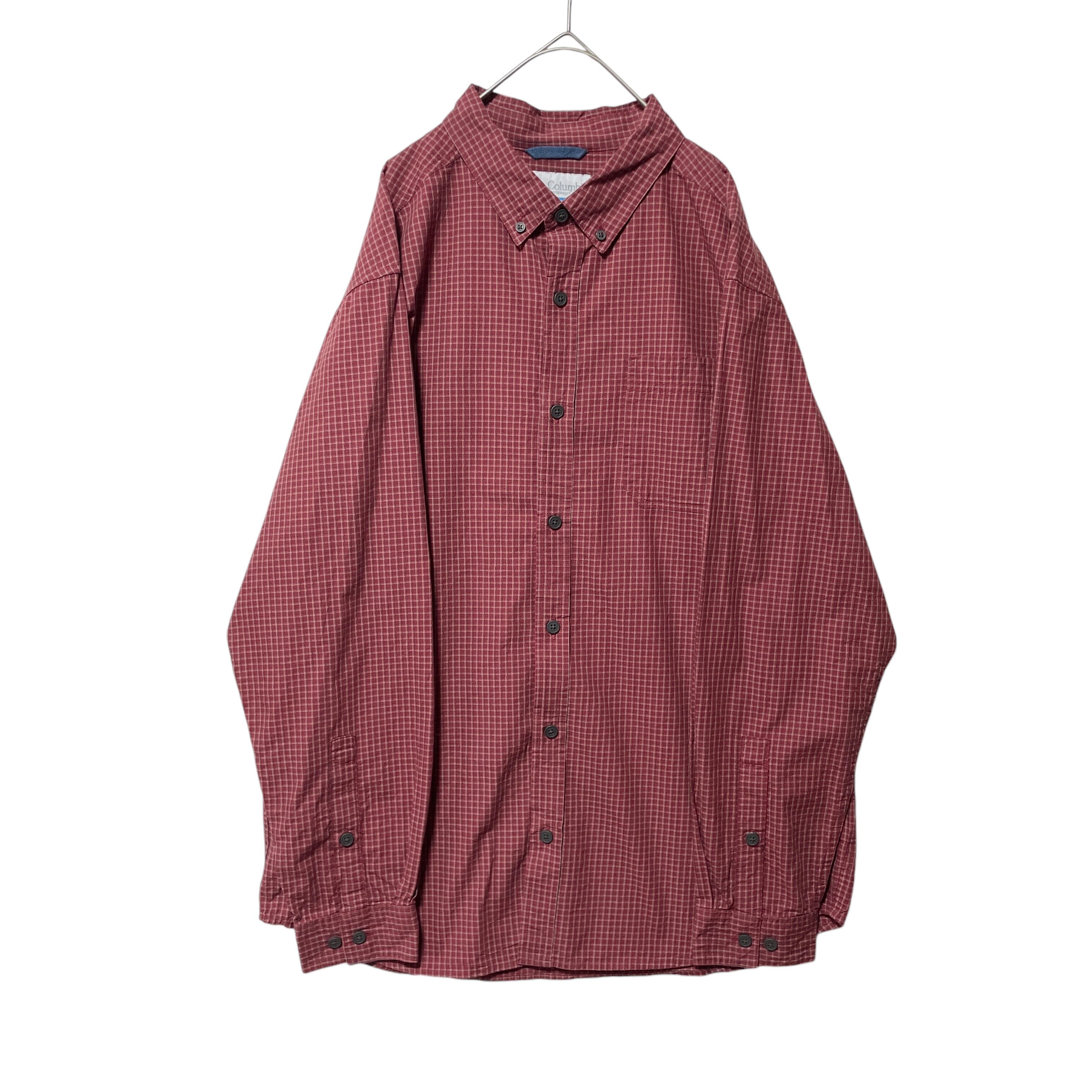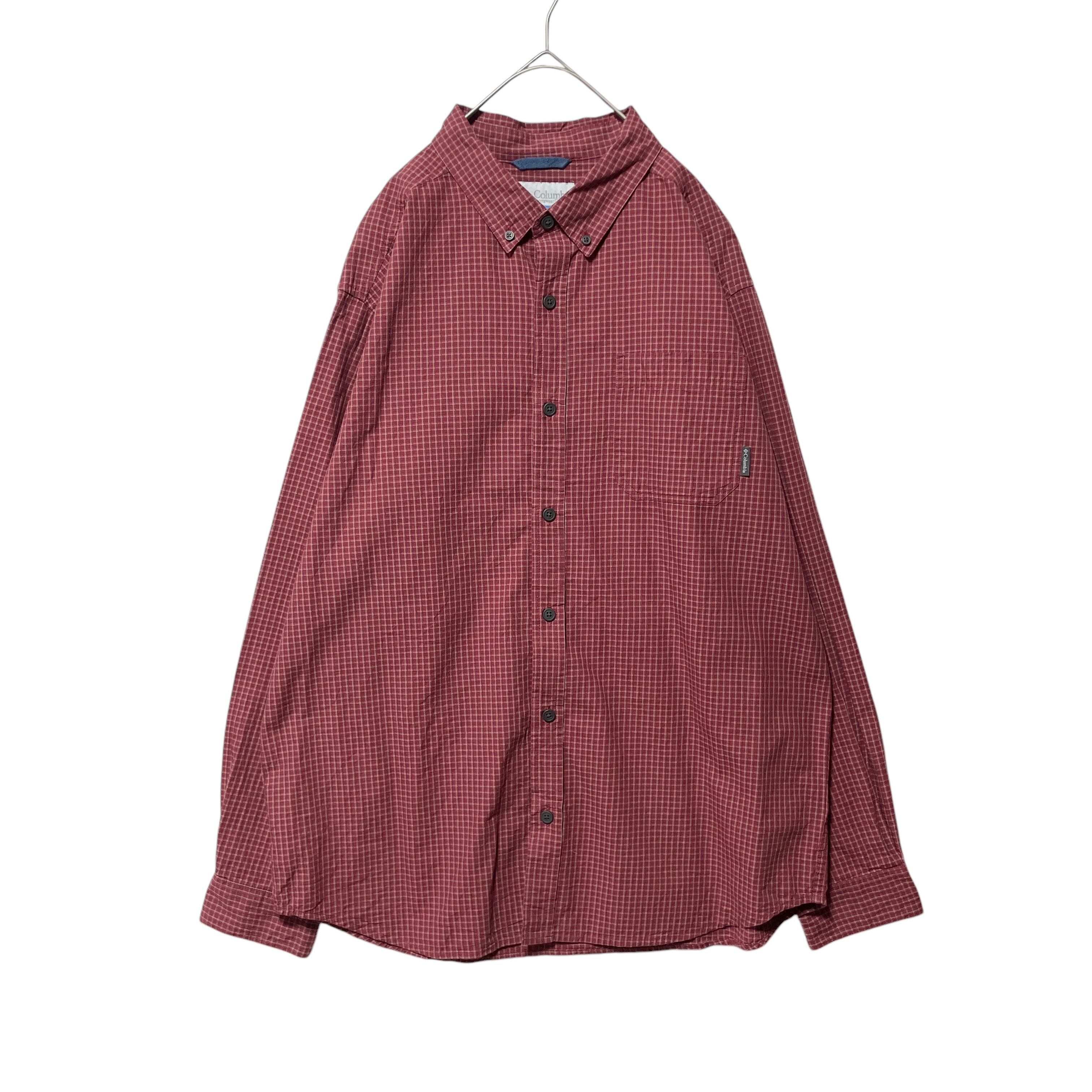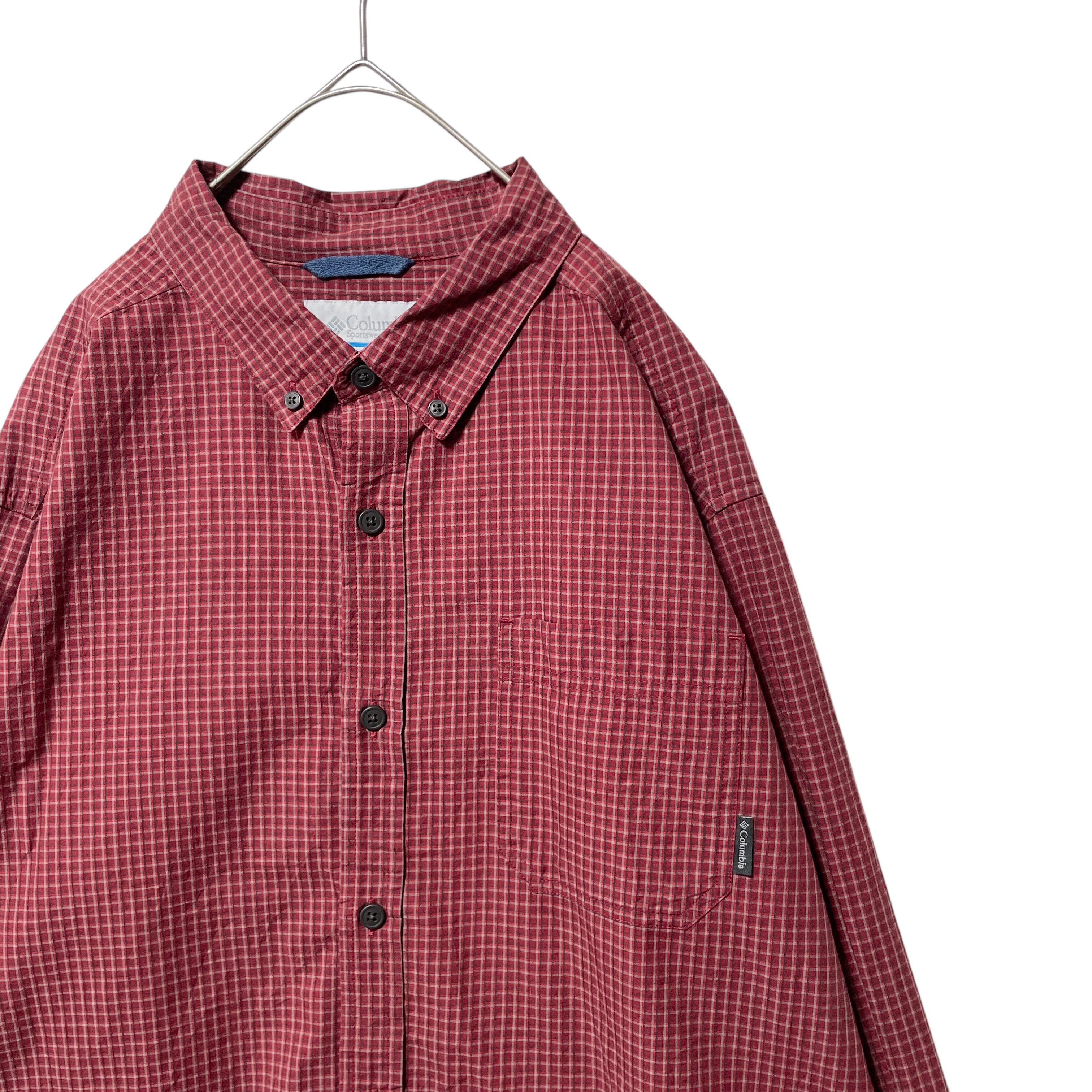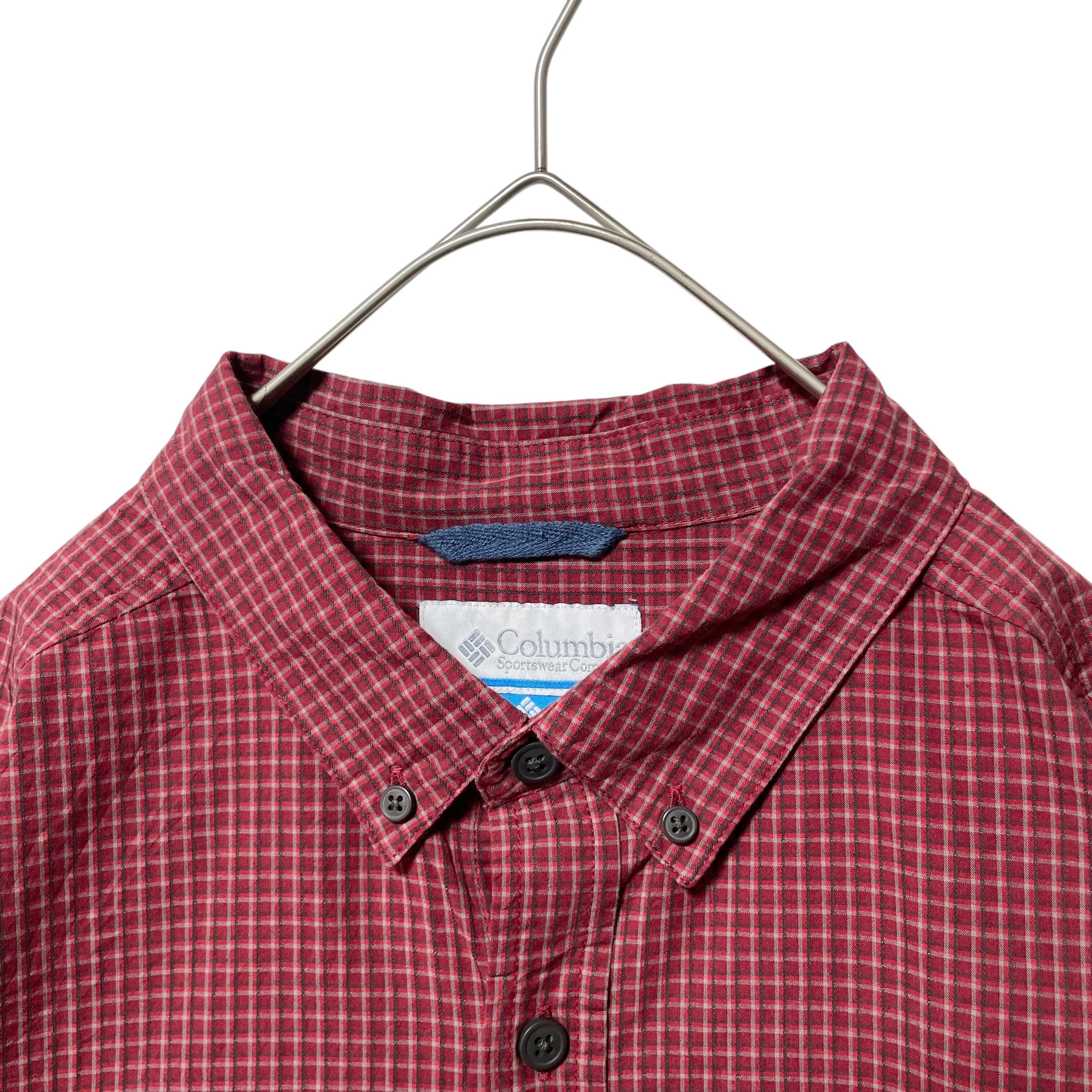 コロンビア チェック柄 長袖ボタンダウンシャツ メンズ L 赤 ロゴタグ付