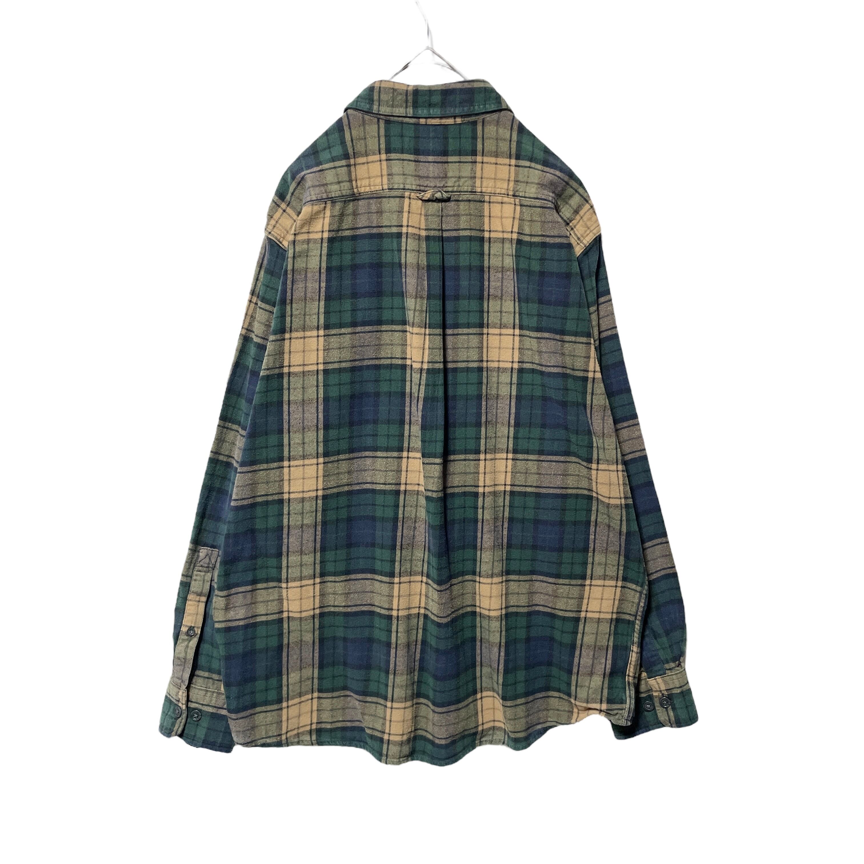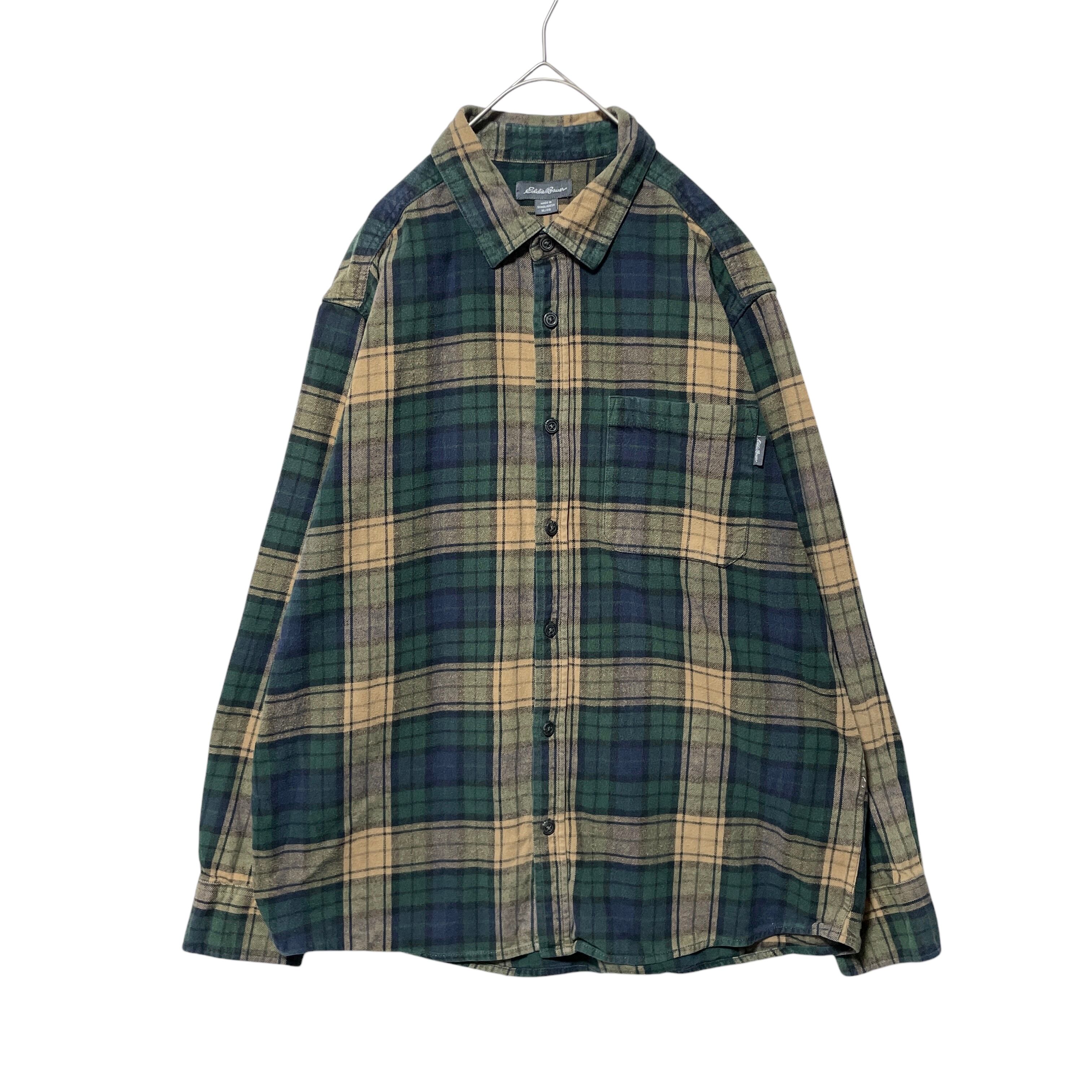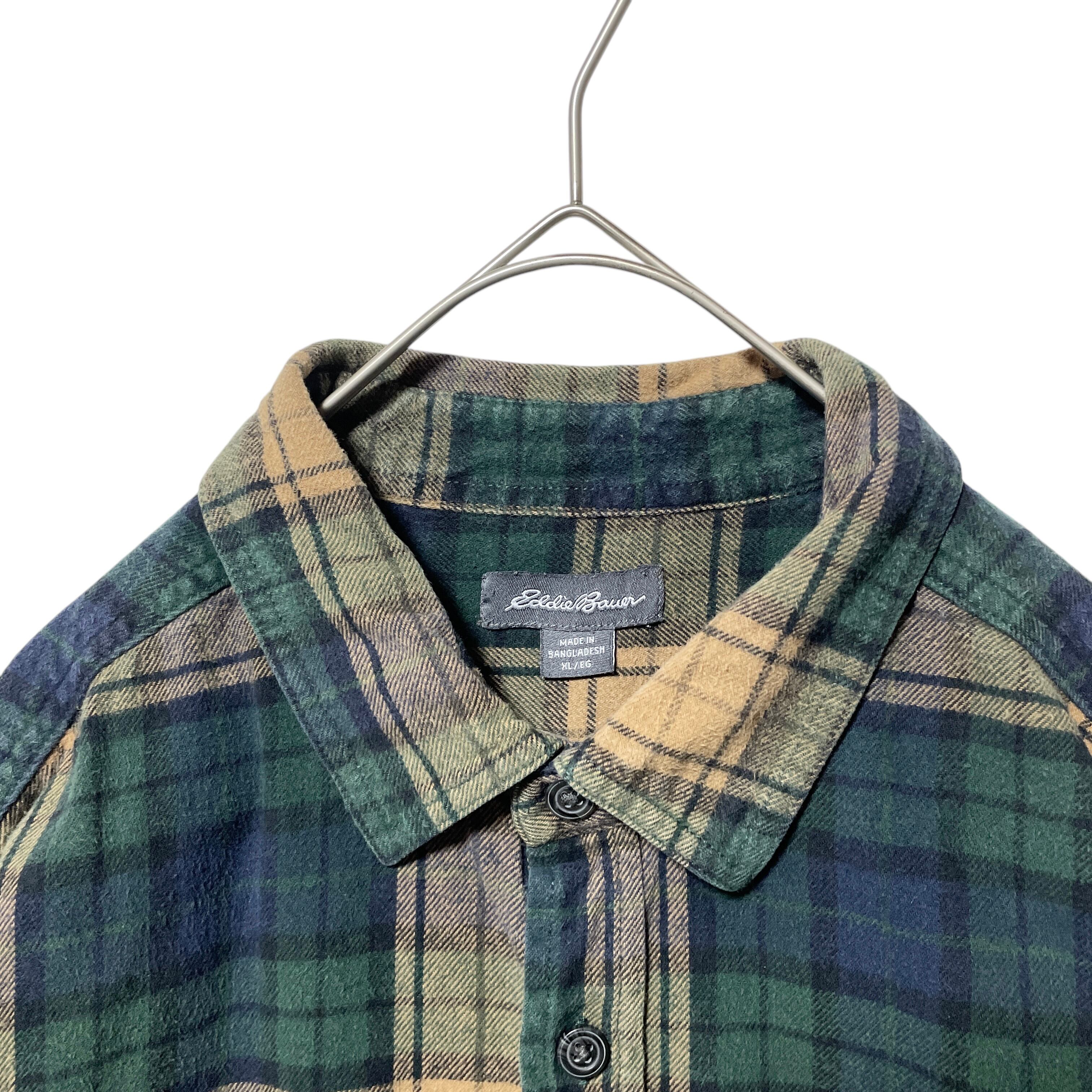 エディーバウアー フランネルシャツ チェック柄 長袖シャツ 緑 ベージュ XL