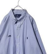 80s 90s ラルフローレン ブレイク ストライプ 長袖BDシャツ 2XL