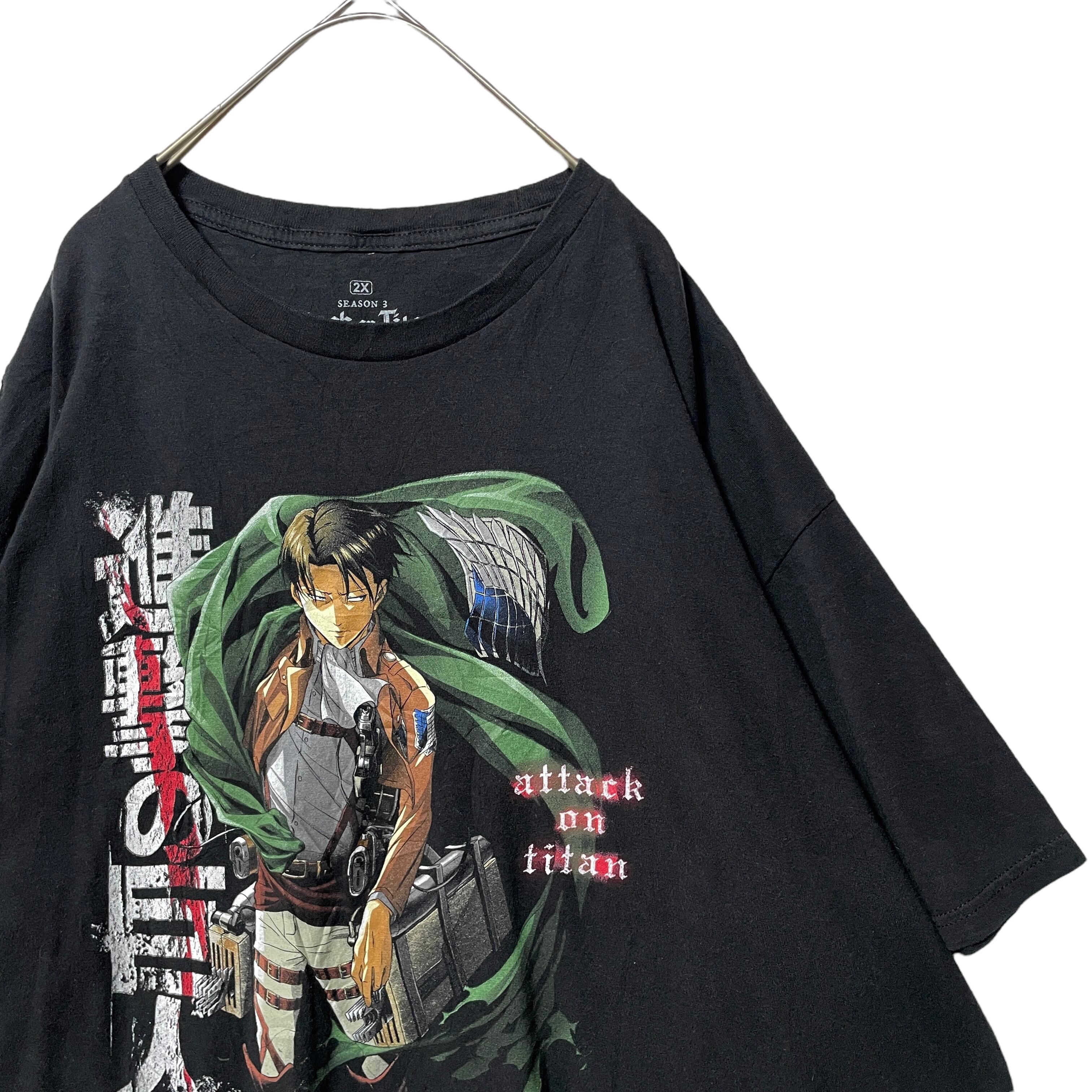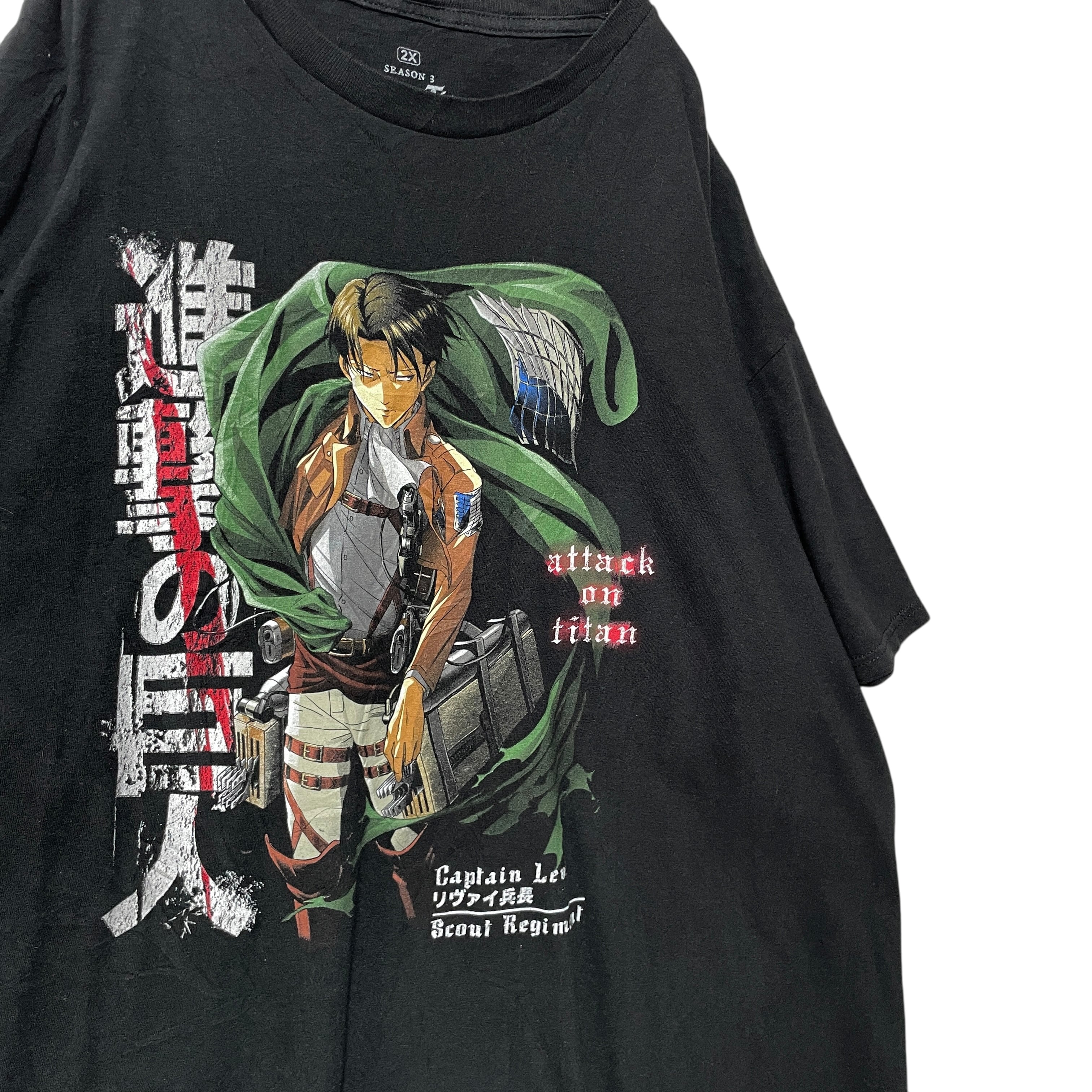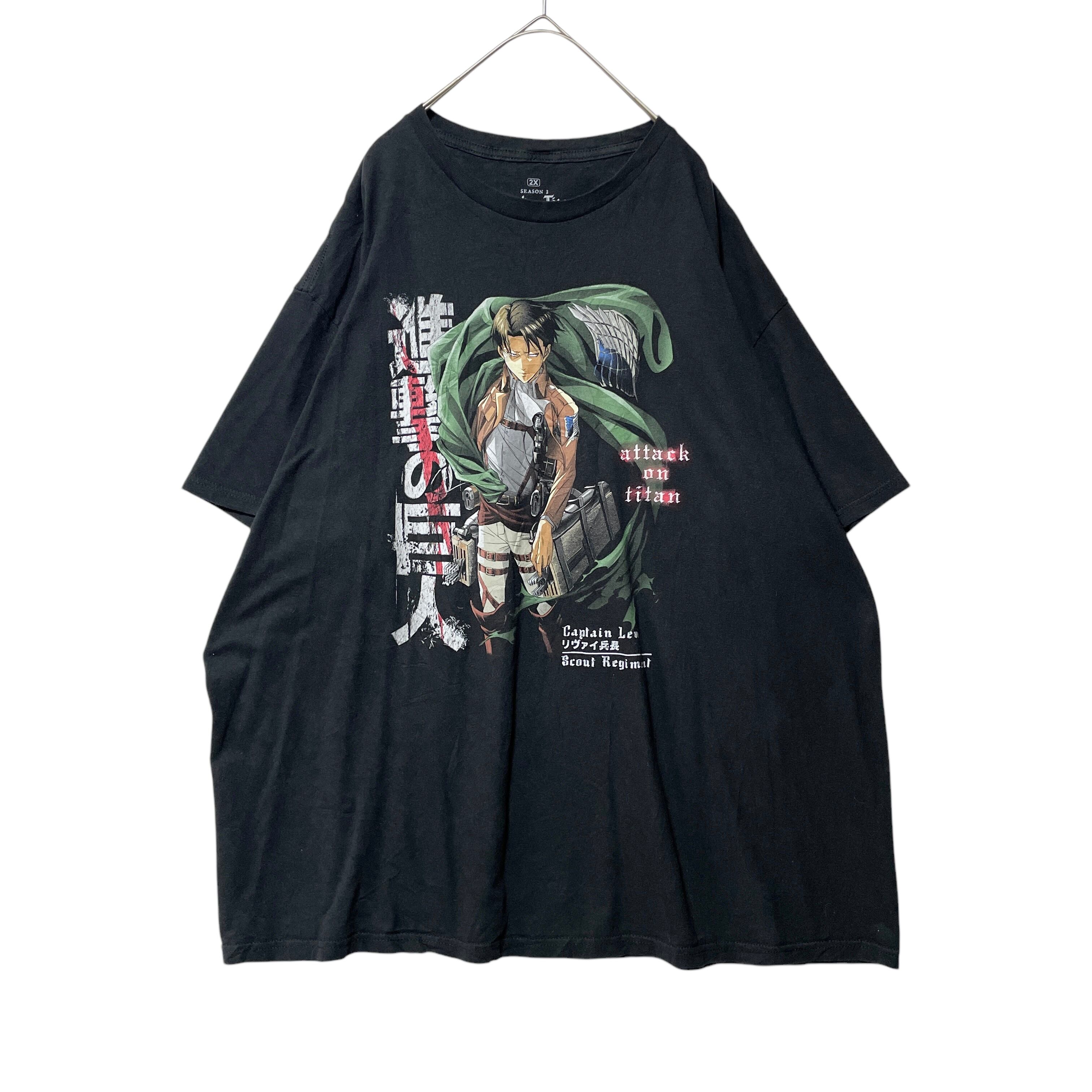 古着 海外規格 進撃の巨人 リヴァイ プリント Tシャツ 大きいサイズ 2X
