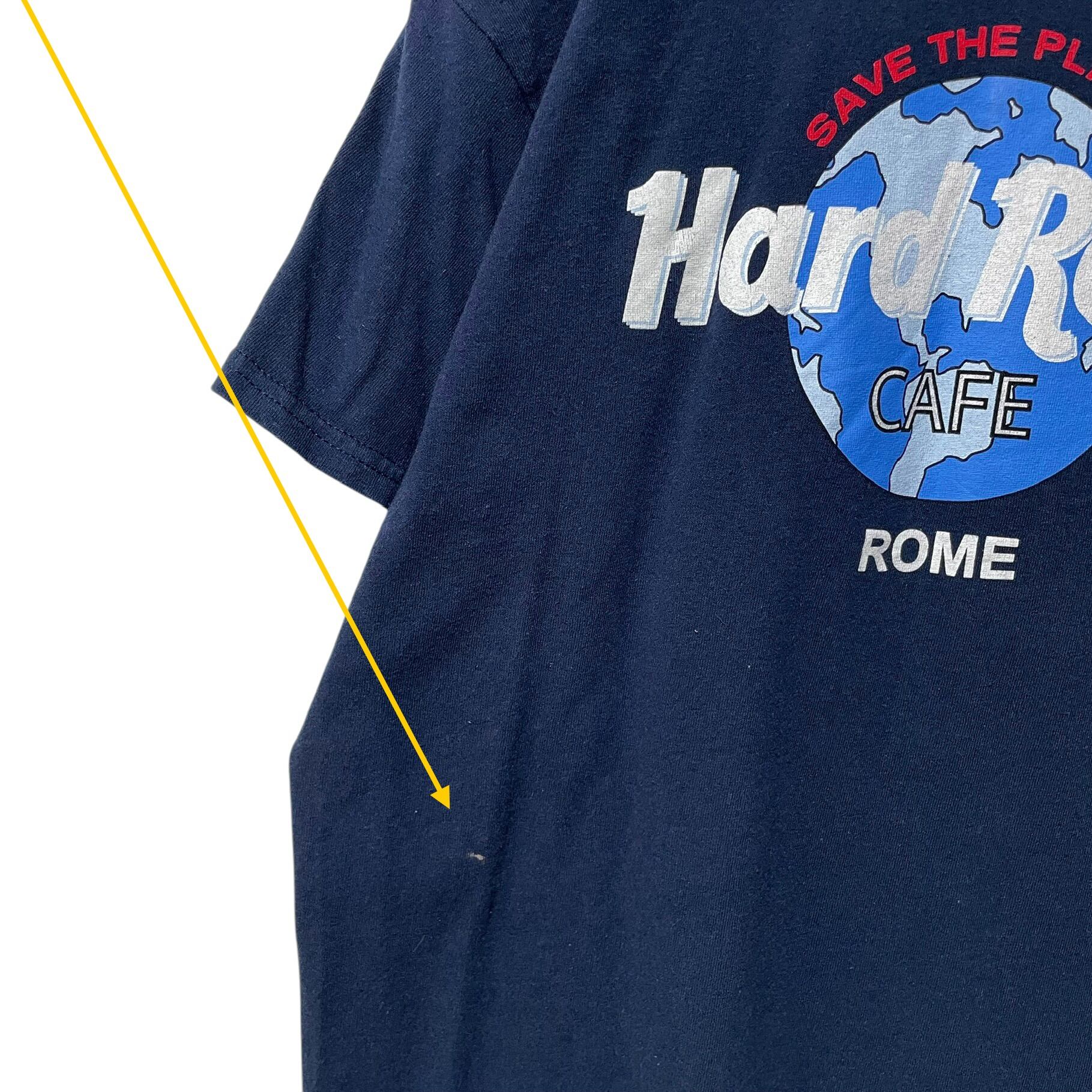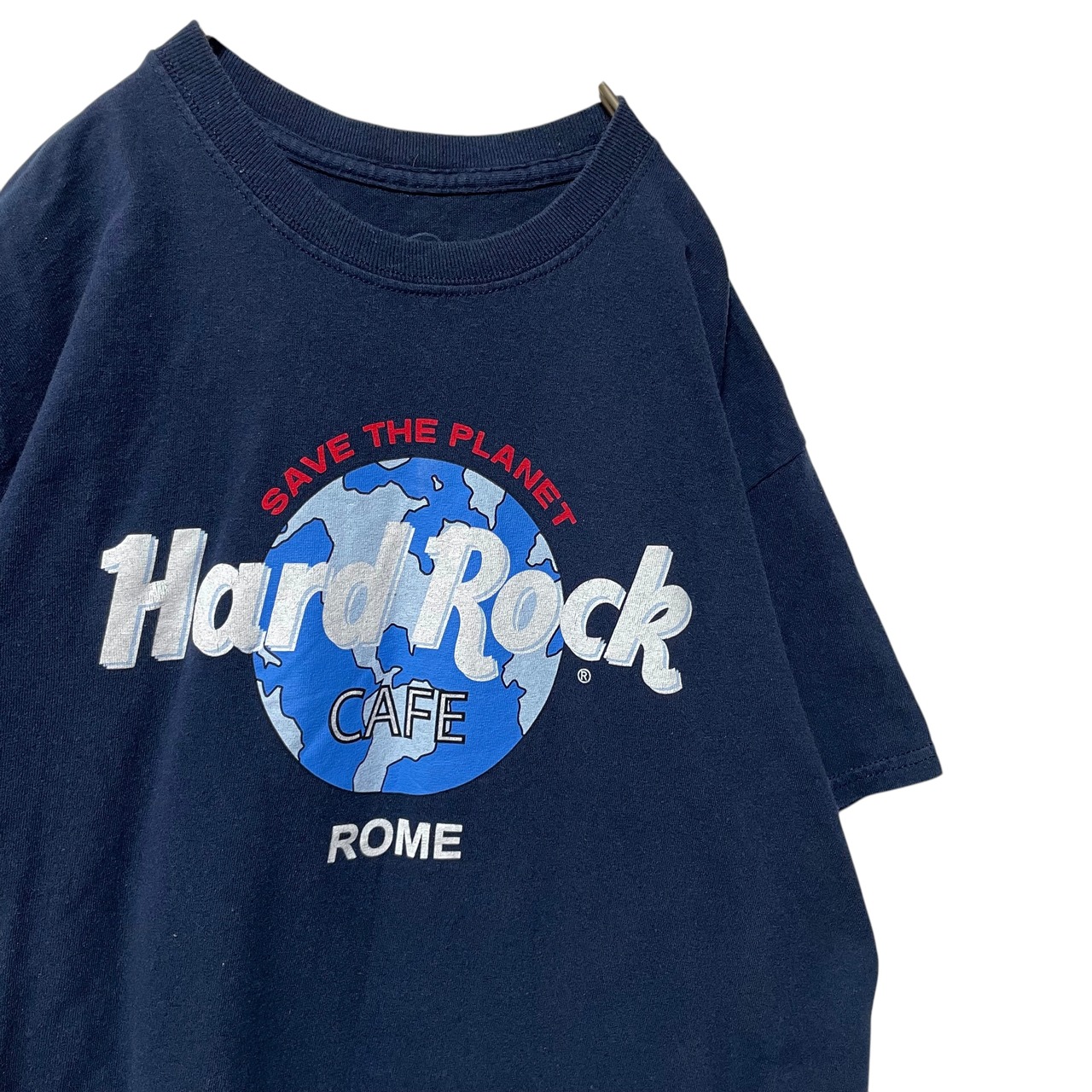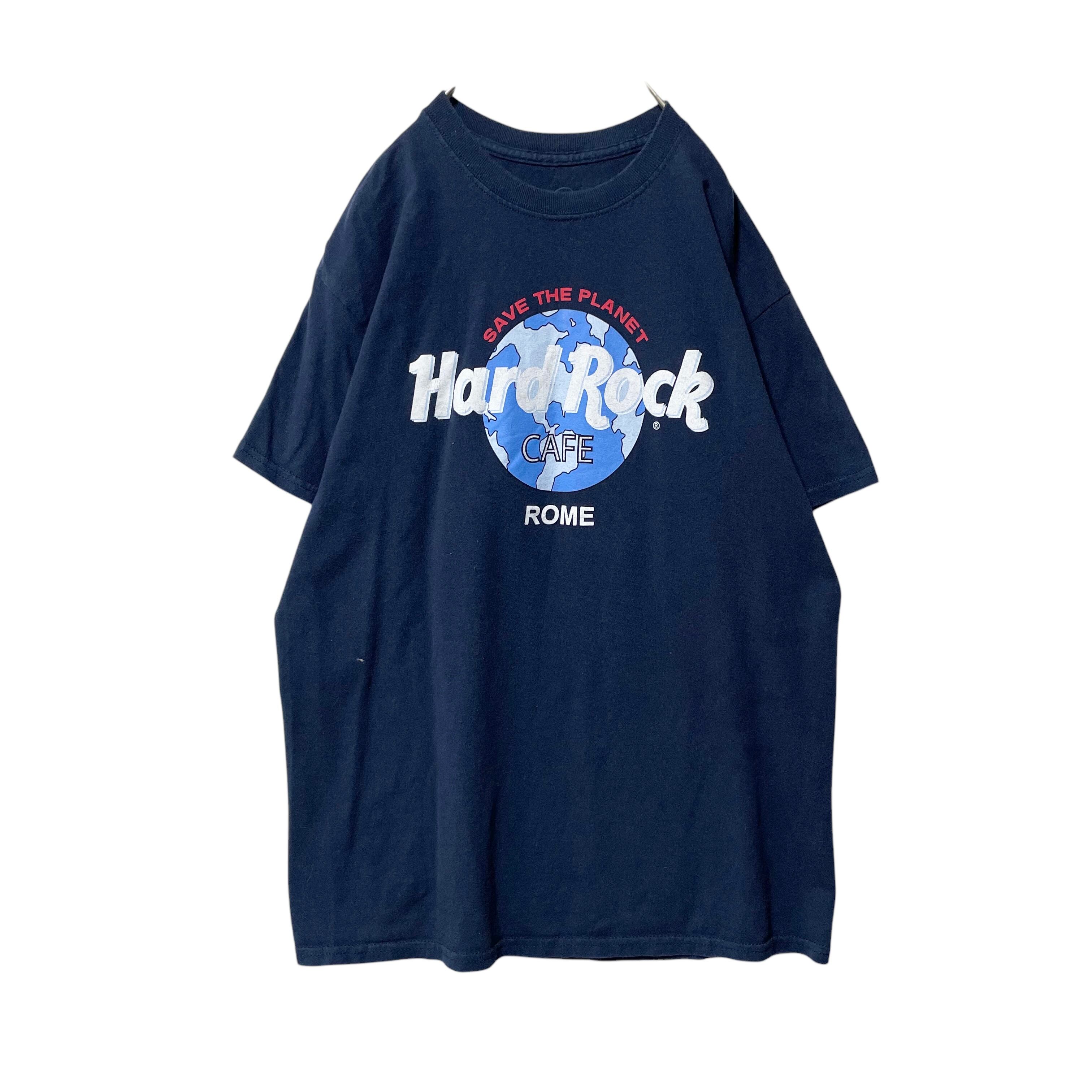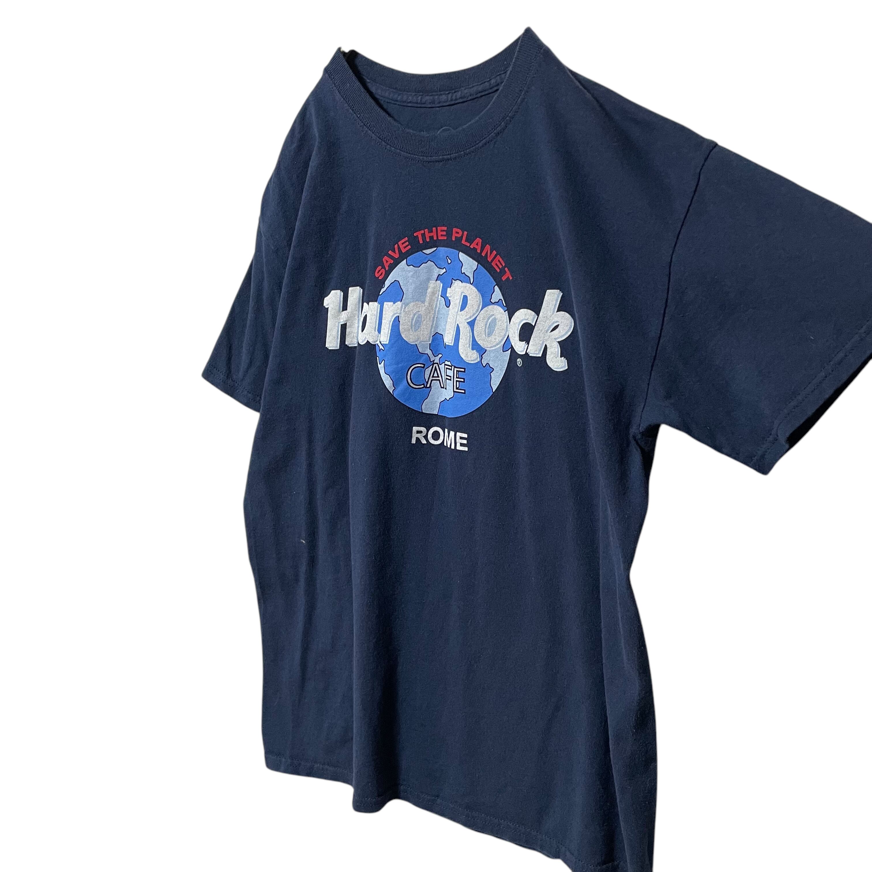 古着 ハードロックカフェ イタリア ローマ プリントTシャツ ネイビー M