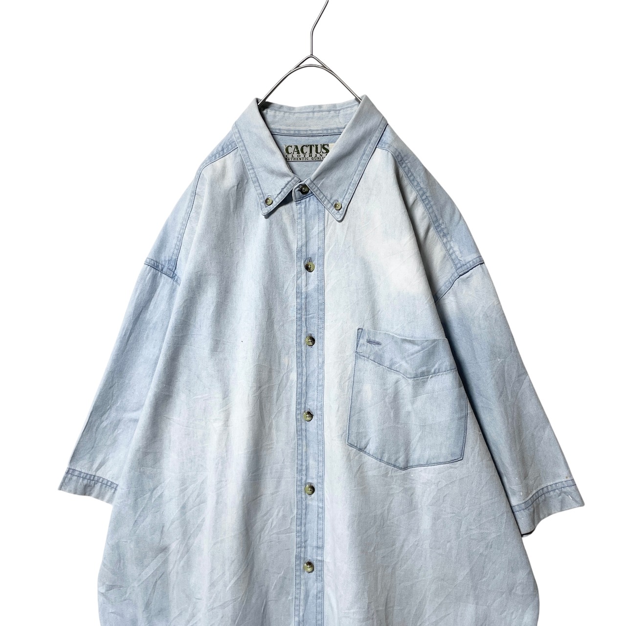 古着 CACTUS 半袖シャツ タンガリーシャツ ライトブルー メンズ XL