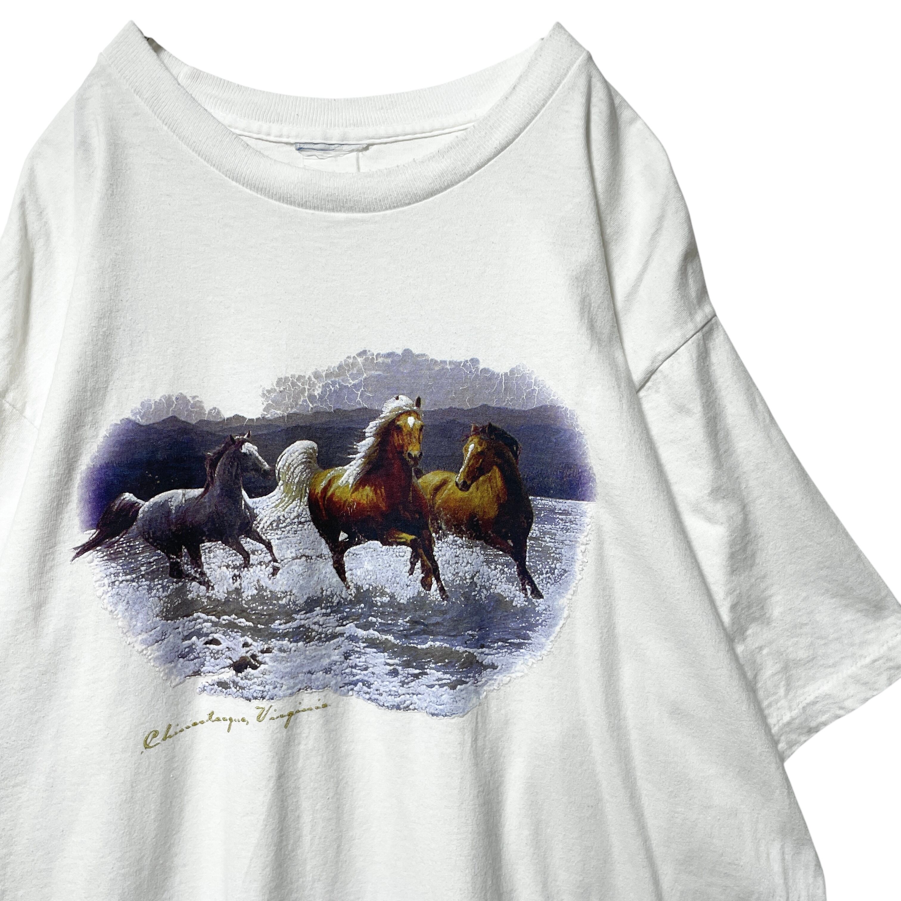 90s ヴィンテージ古着 馬 プリントTシャツ シングルステッチ 白 メンズ L