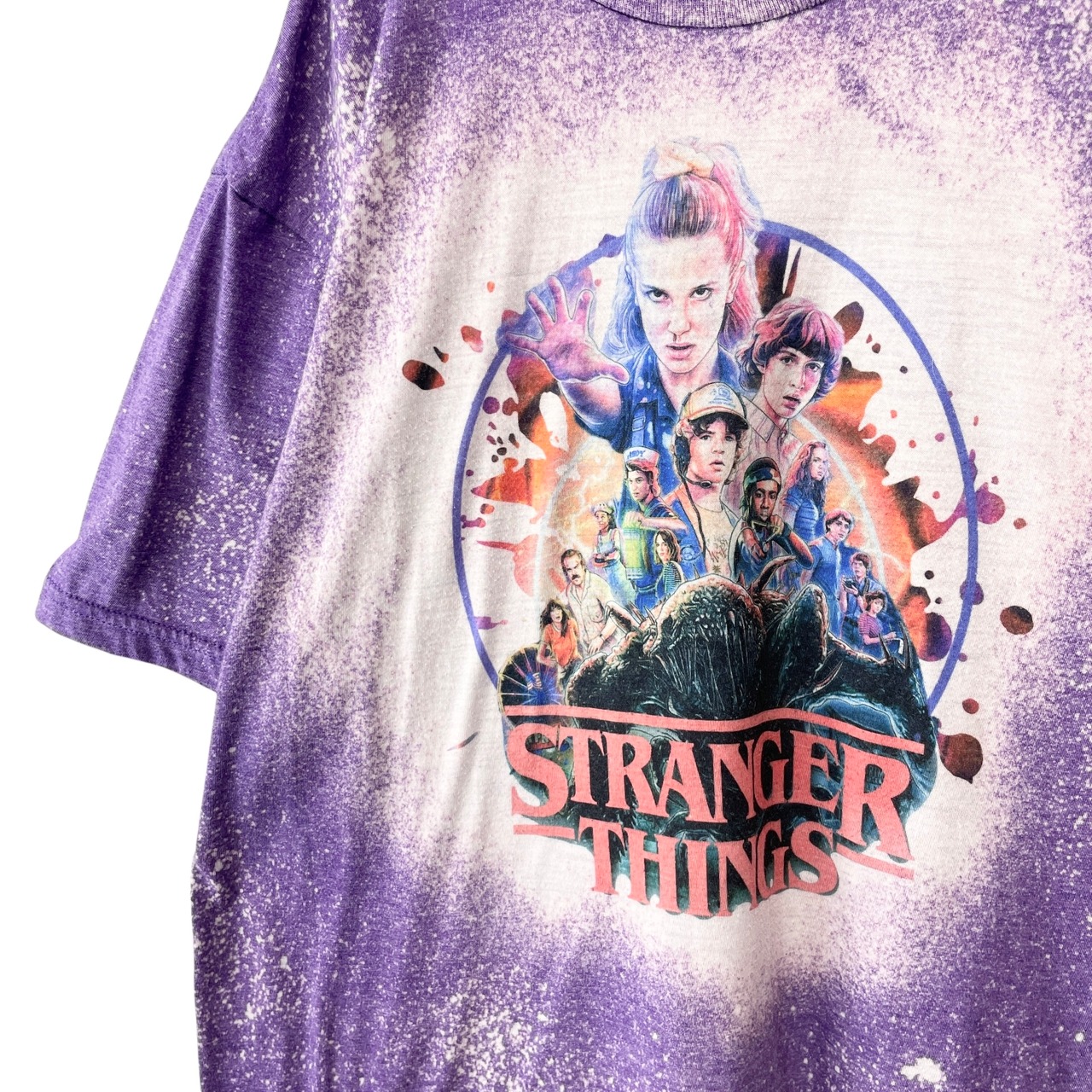 古着 海外ドラマ ストレンジャーシングス 未知の世界 プリント Tシャツ 紫 L