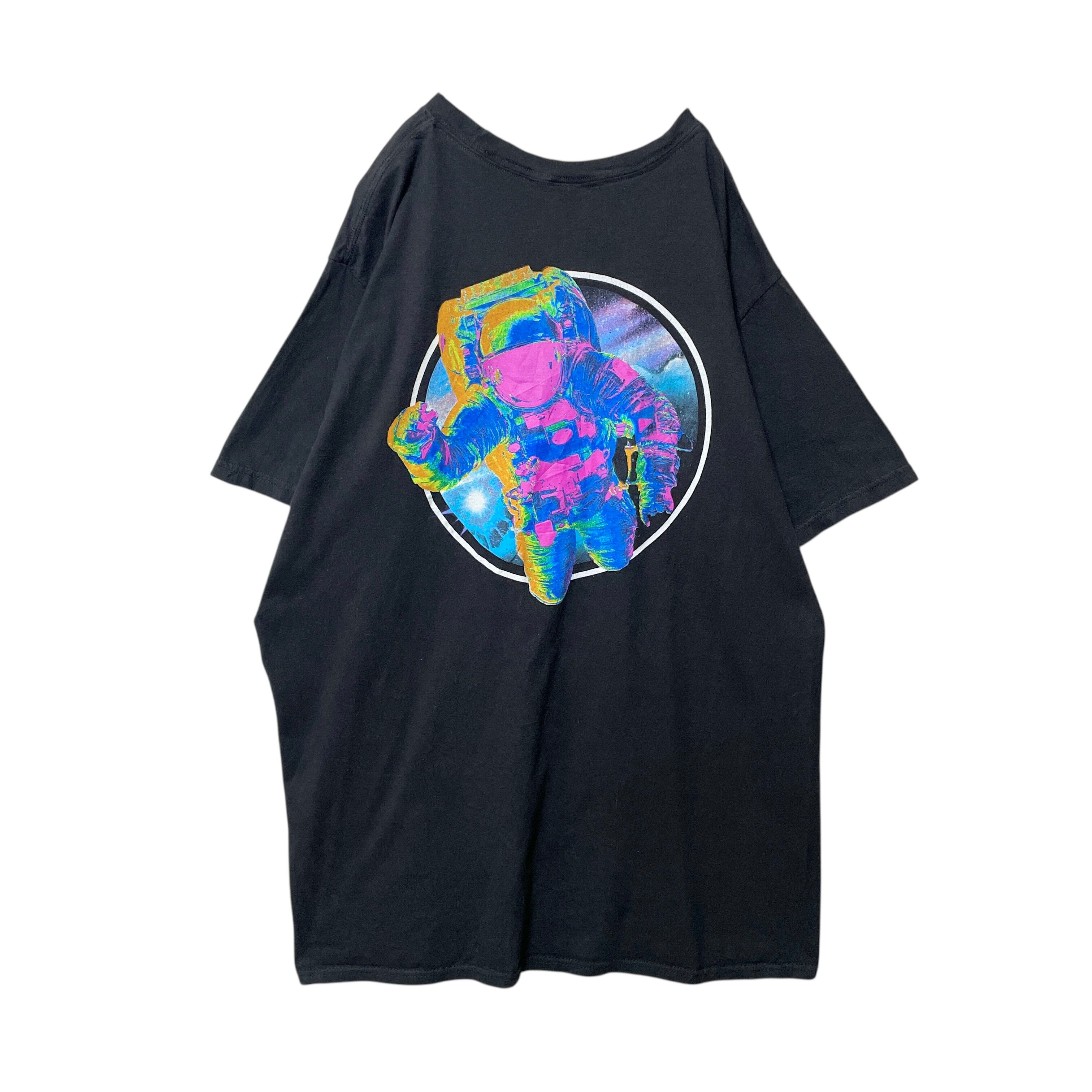 古着 NASA ナサ カラフル 宇宙飛行士 バックプリント Tシャツ 黒 XL