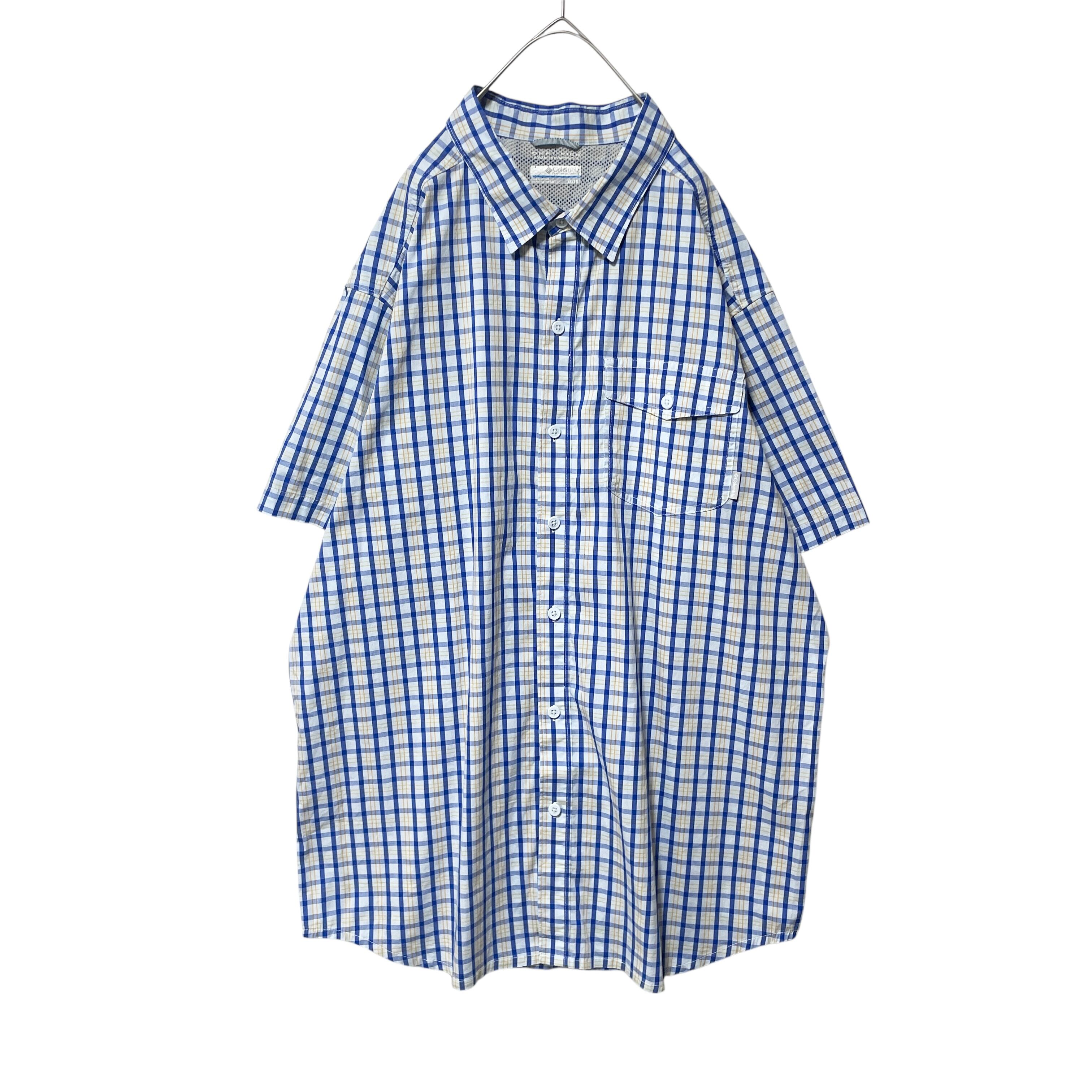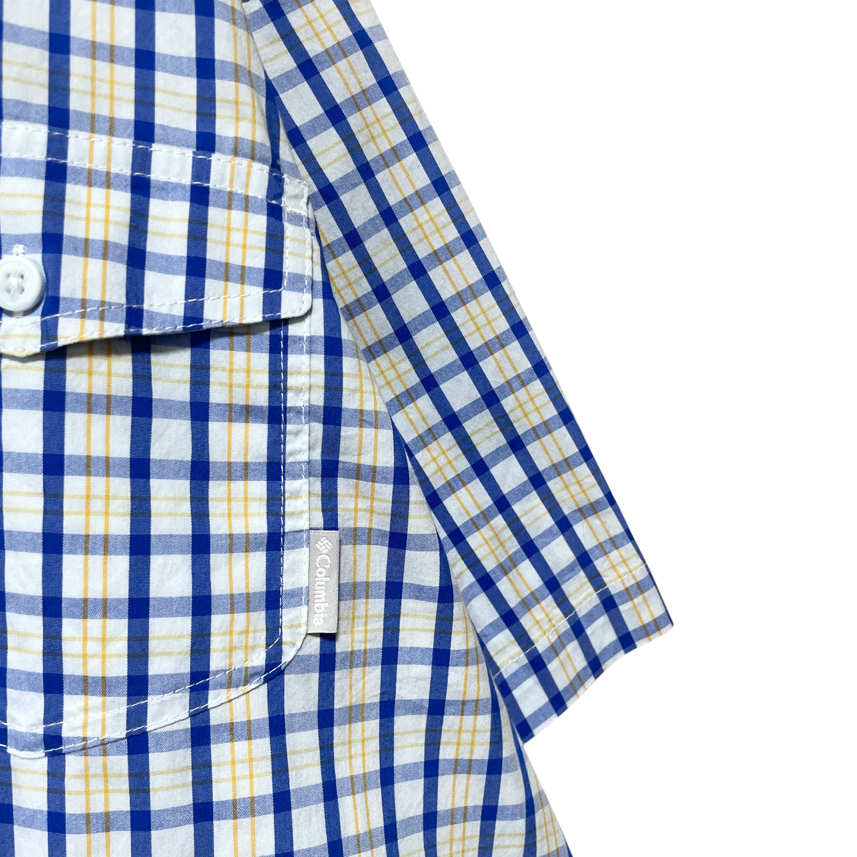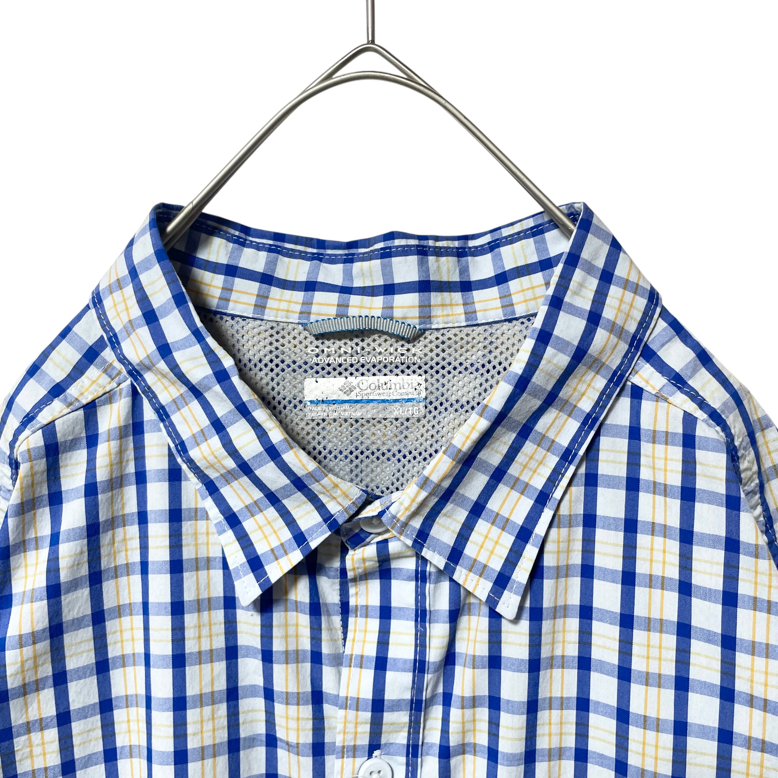 コロンビア オムニウィック 吸湿速乾 チェック柄 半袖シャツ 青 ブルー系 XL