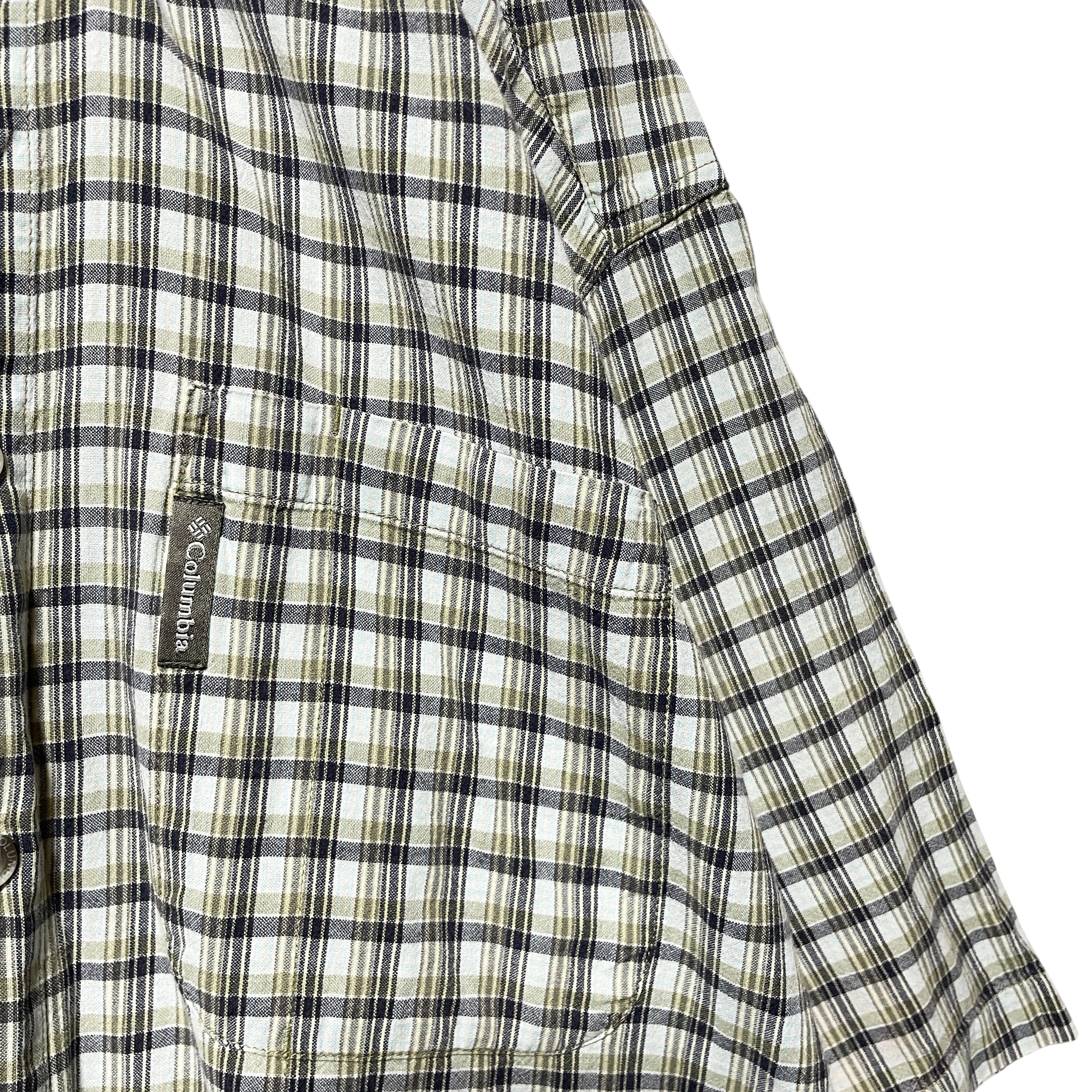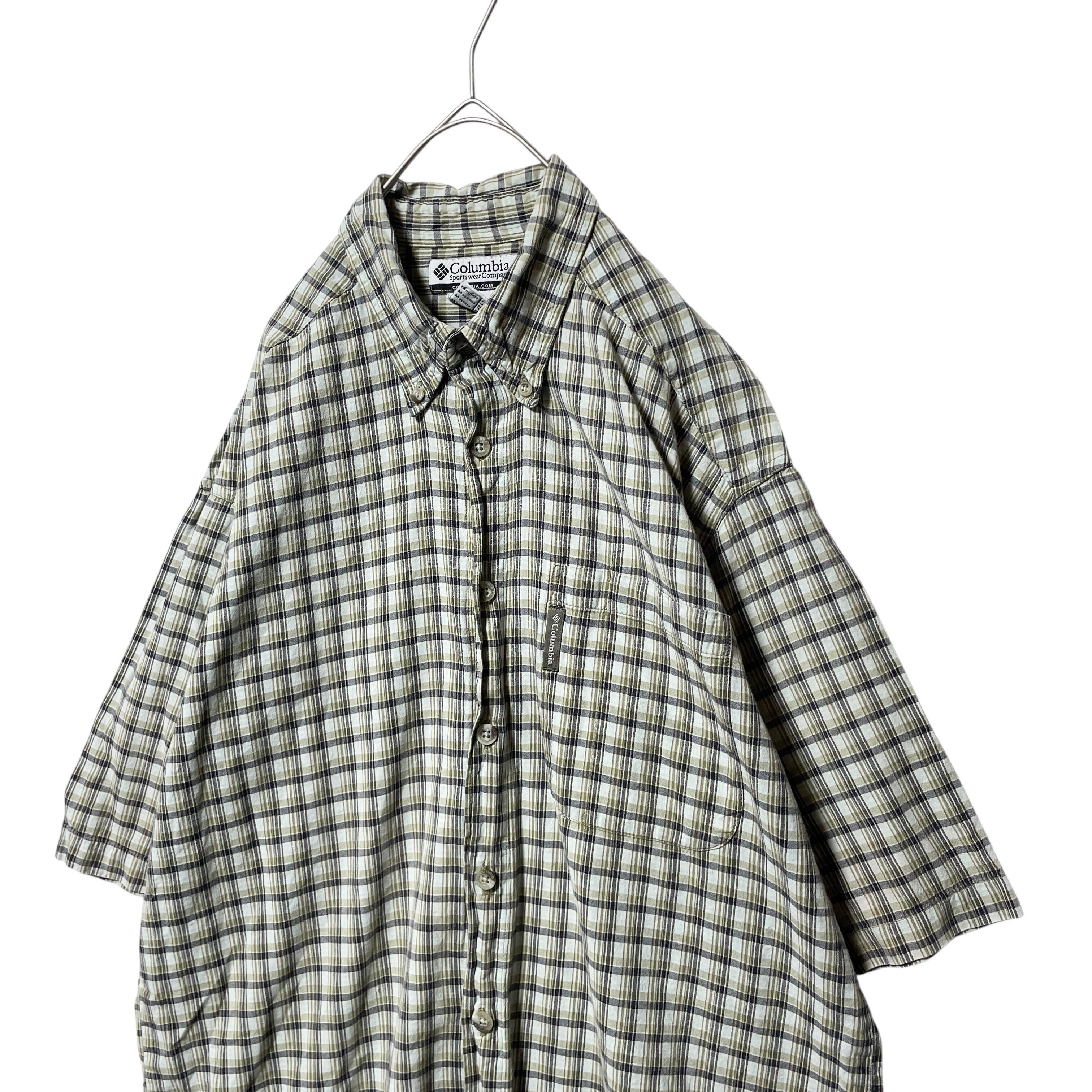 古着 コロンビア チェック柄 半袖シャツ カジュアルシャツ ベージュ メンズ M