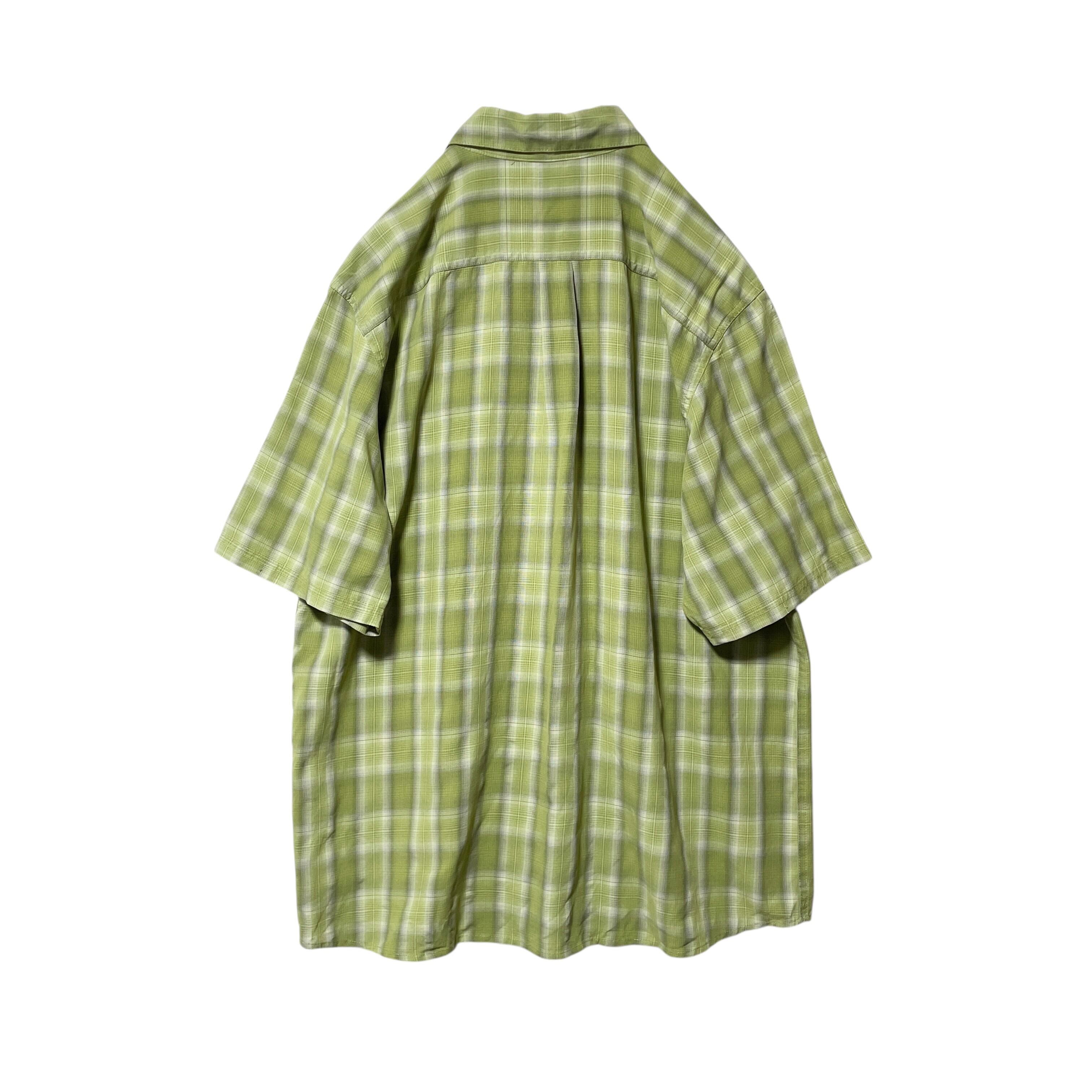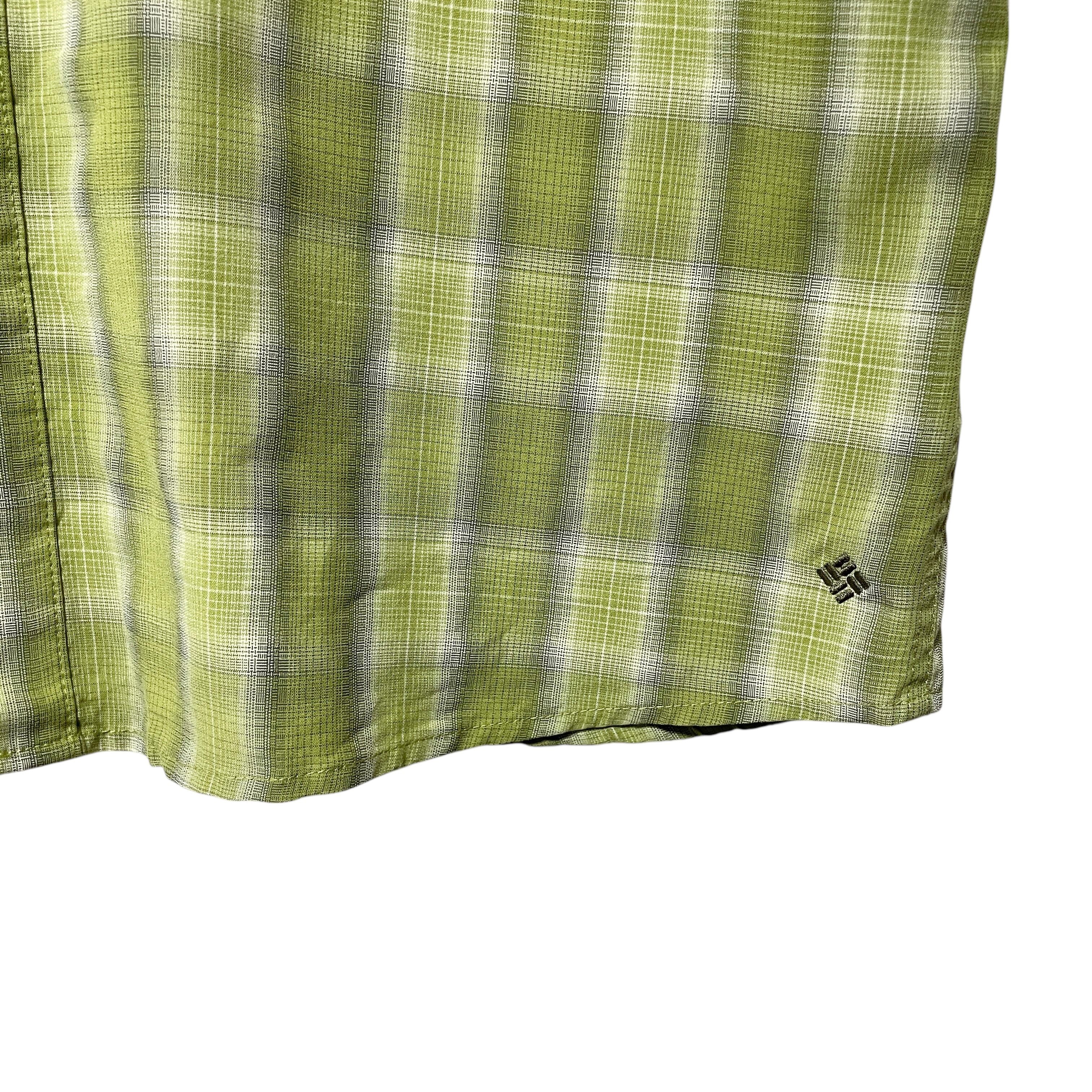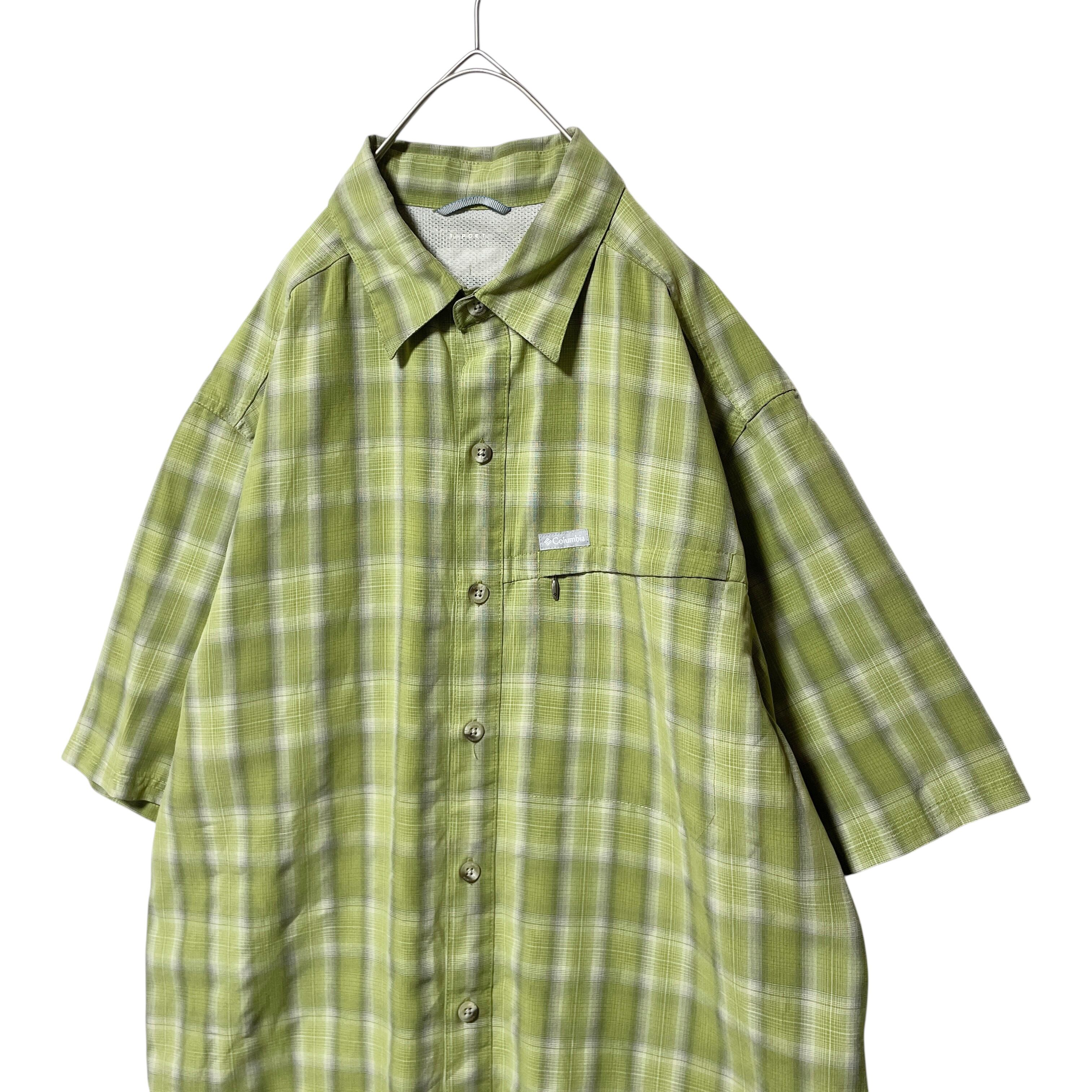 コロンビア チェック柄 半袖シャツ オリーブグリーン メンズ L 薄手 とろみ