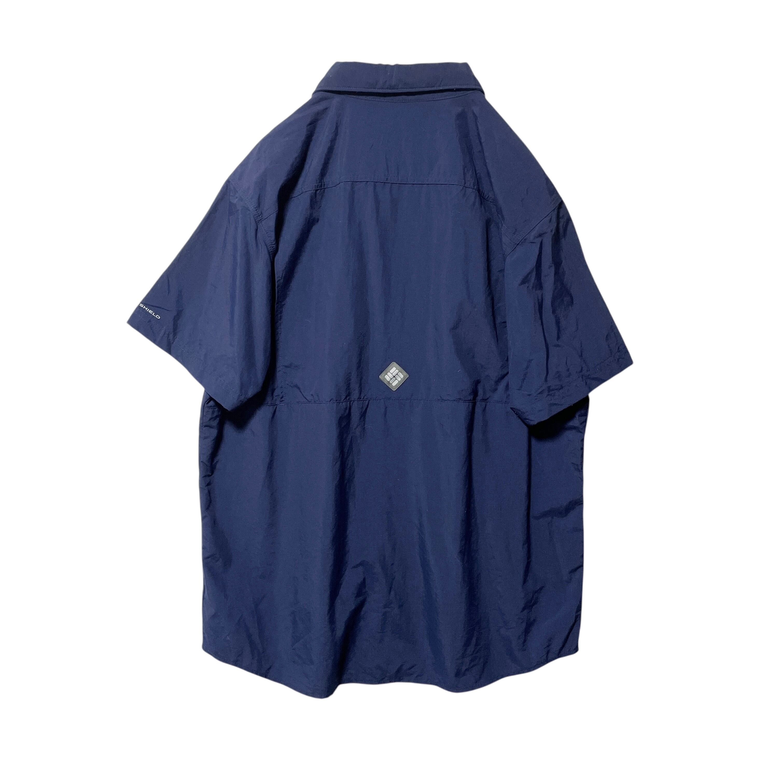 コロンビア オムニシールド ナイロン 半袖シャツ アウトドアシャツ 防水 紺 L