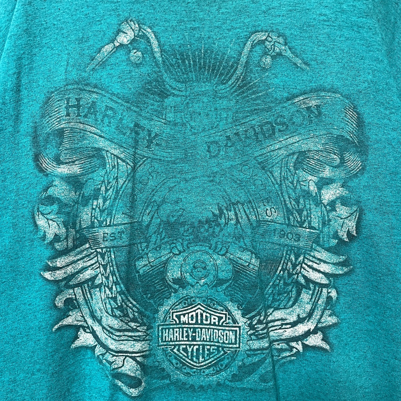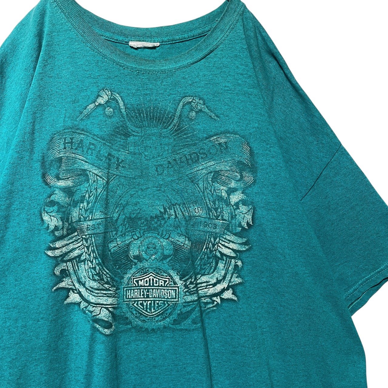 ハーレーダビッドソン オーランド かすれ オールドプリント Tシャツ 緑 3XL