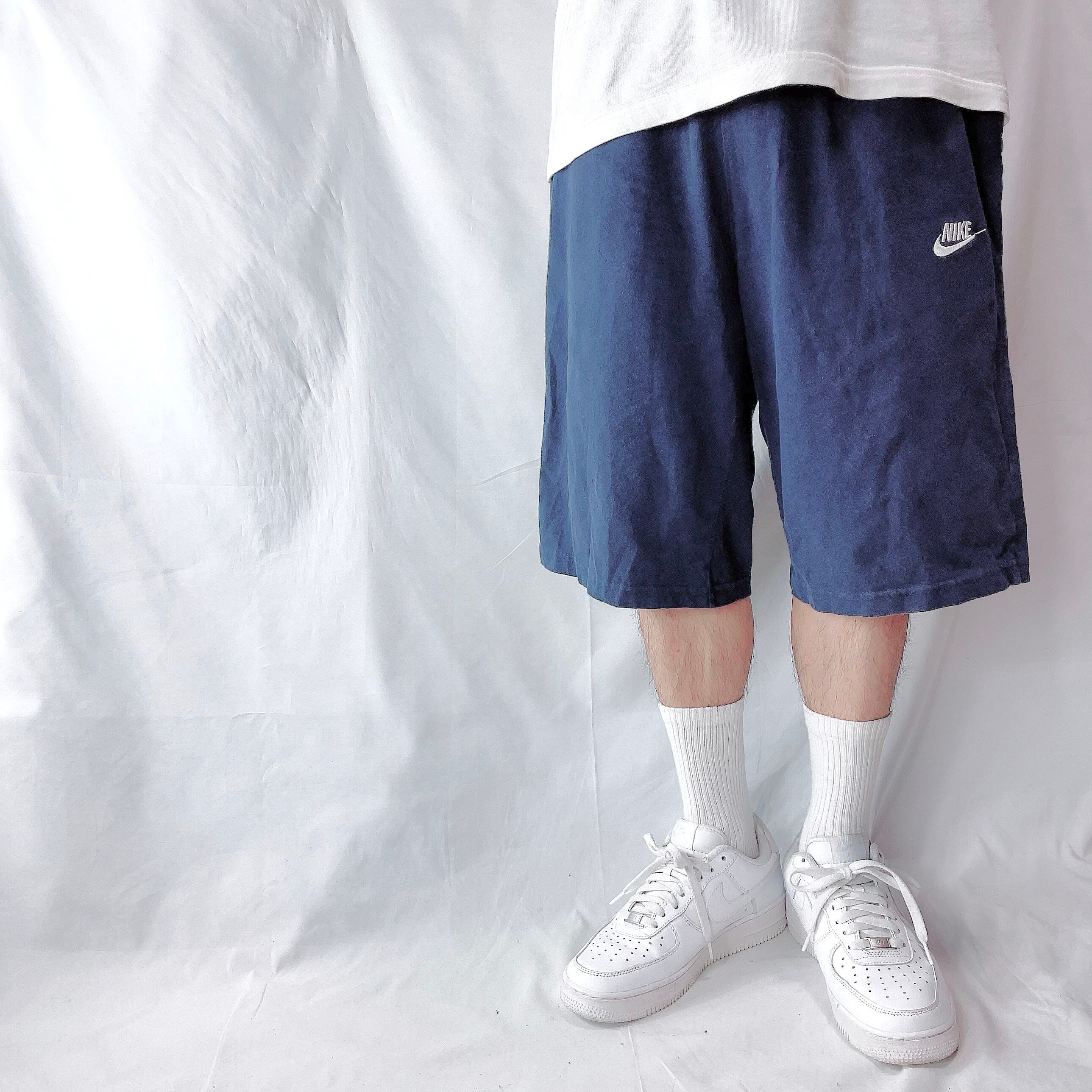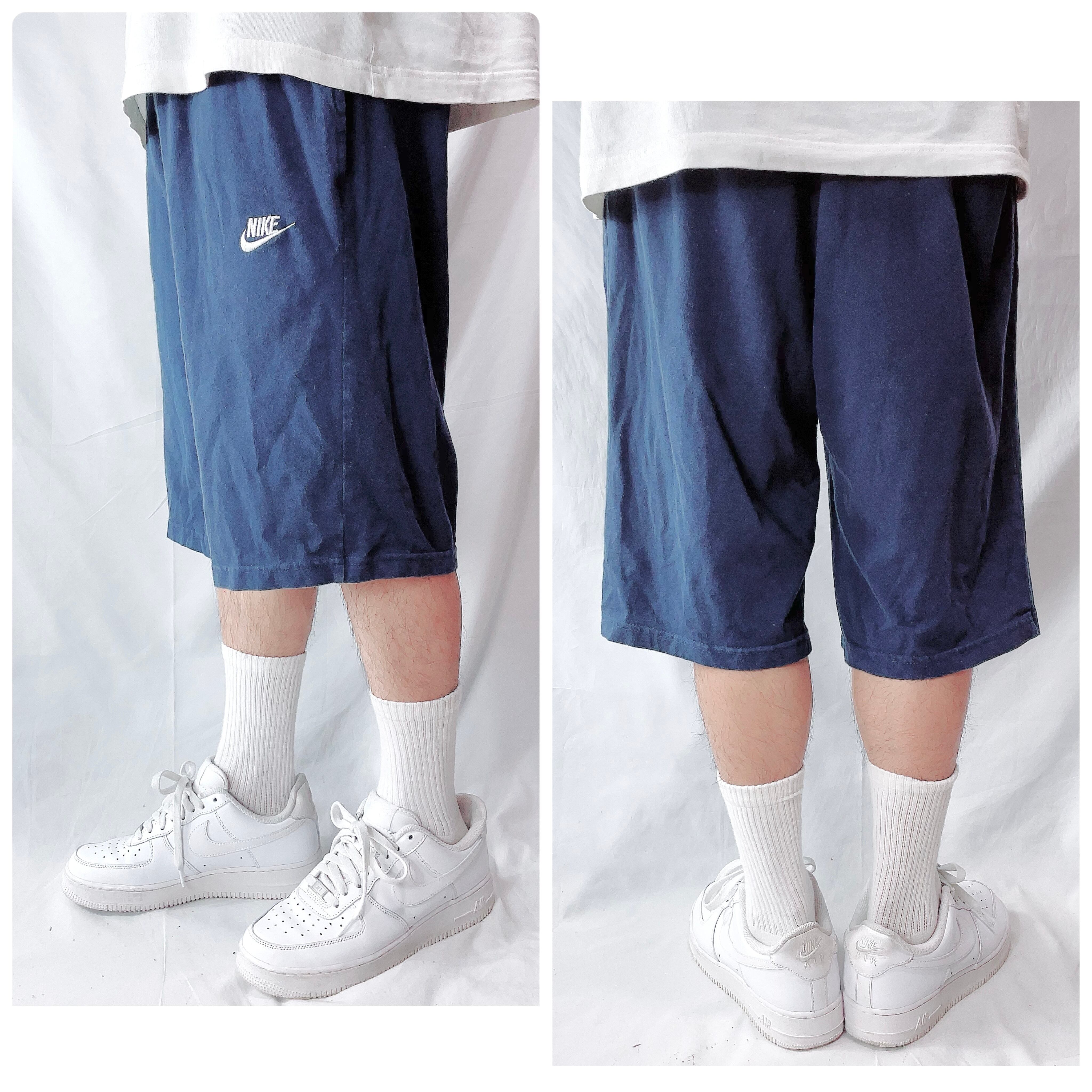 ナイキ コットンハーフパンツ ワンポイント 刺繍ロゴ 紺 ネイビー メンズ XL