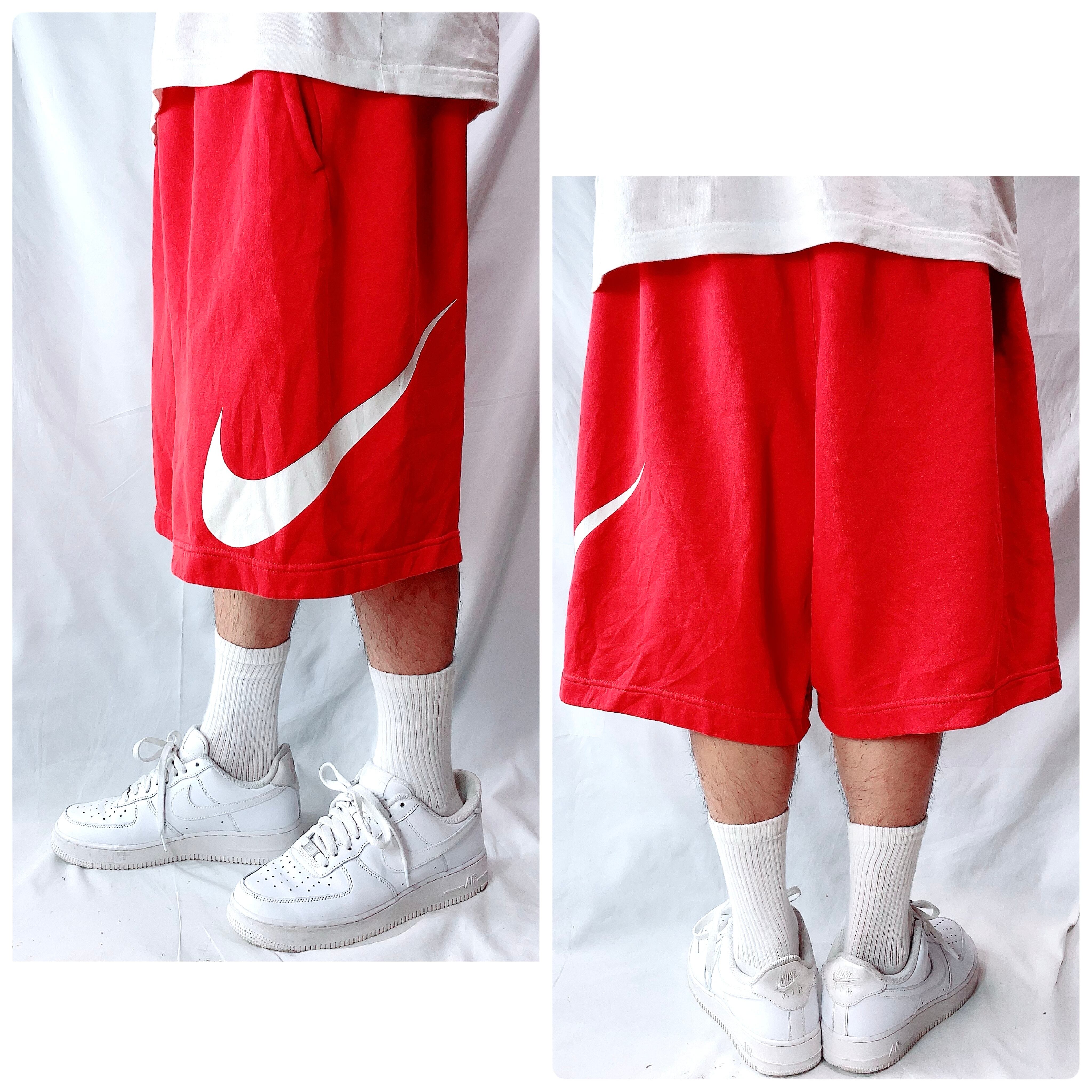 NIKE ナイキ ビッグロゴ スウェットハーフパンツ 赤×白ロゴ メンズ 2XL