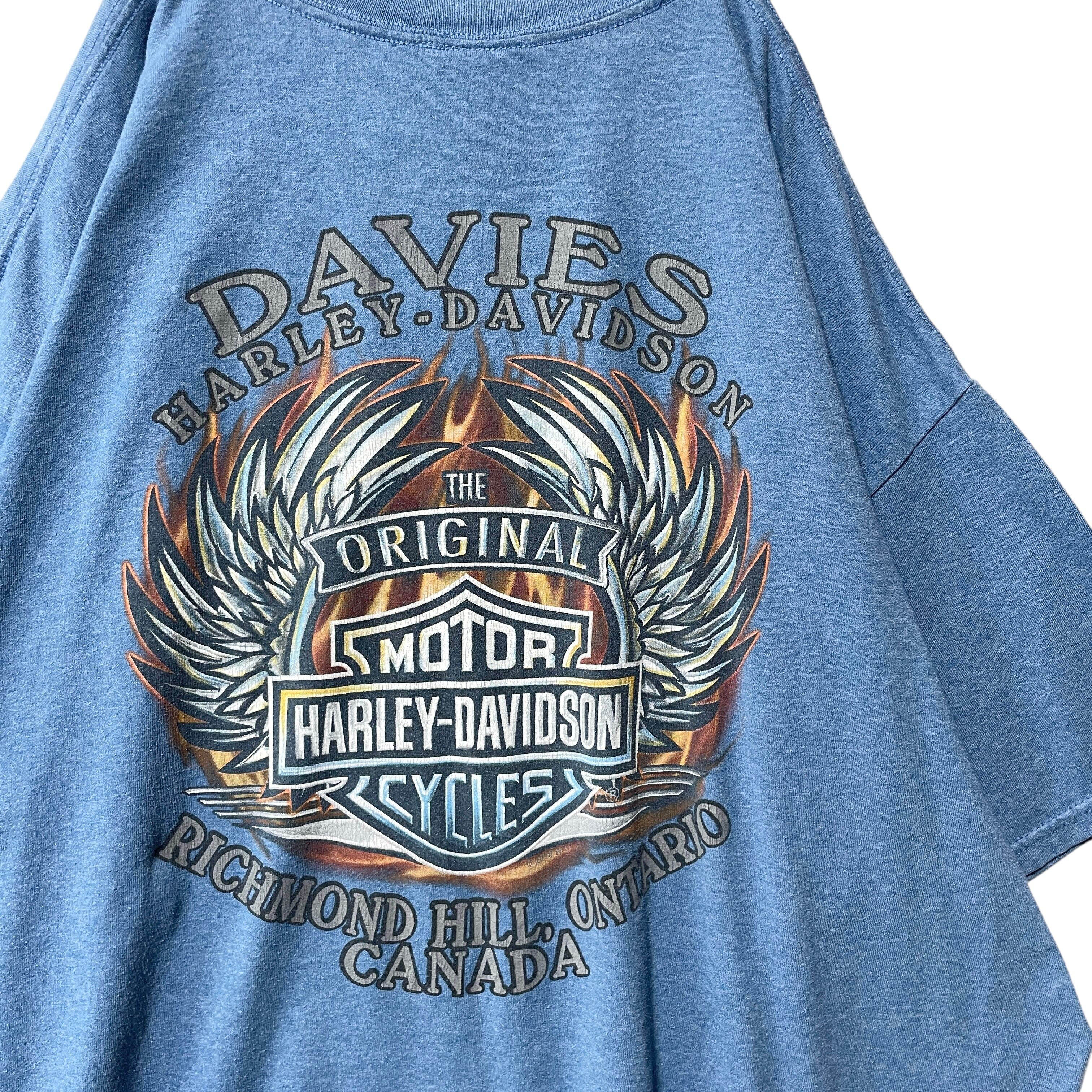 古着 ハーレーダビッドソン 両面プリント Tシャツ 翼 炎 ファイヤー 2XL