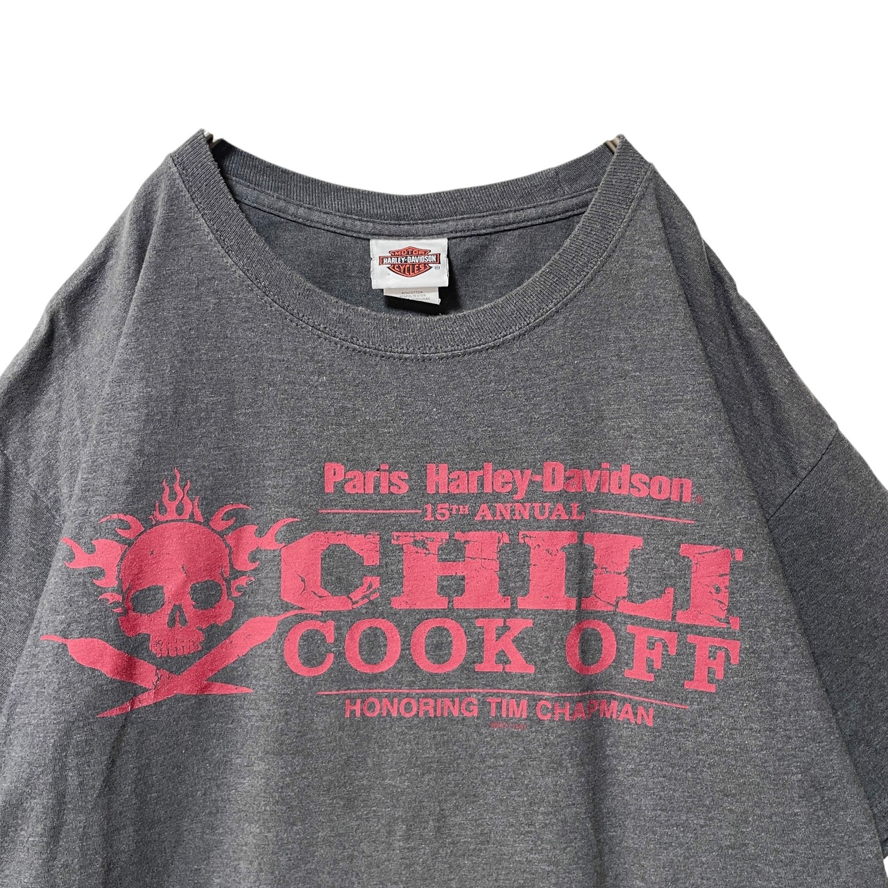 古着 ハーレーダビッドソン テキサス州パリス Tシャツ グレー バイク Lサイズ