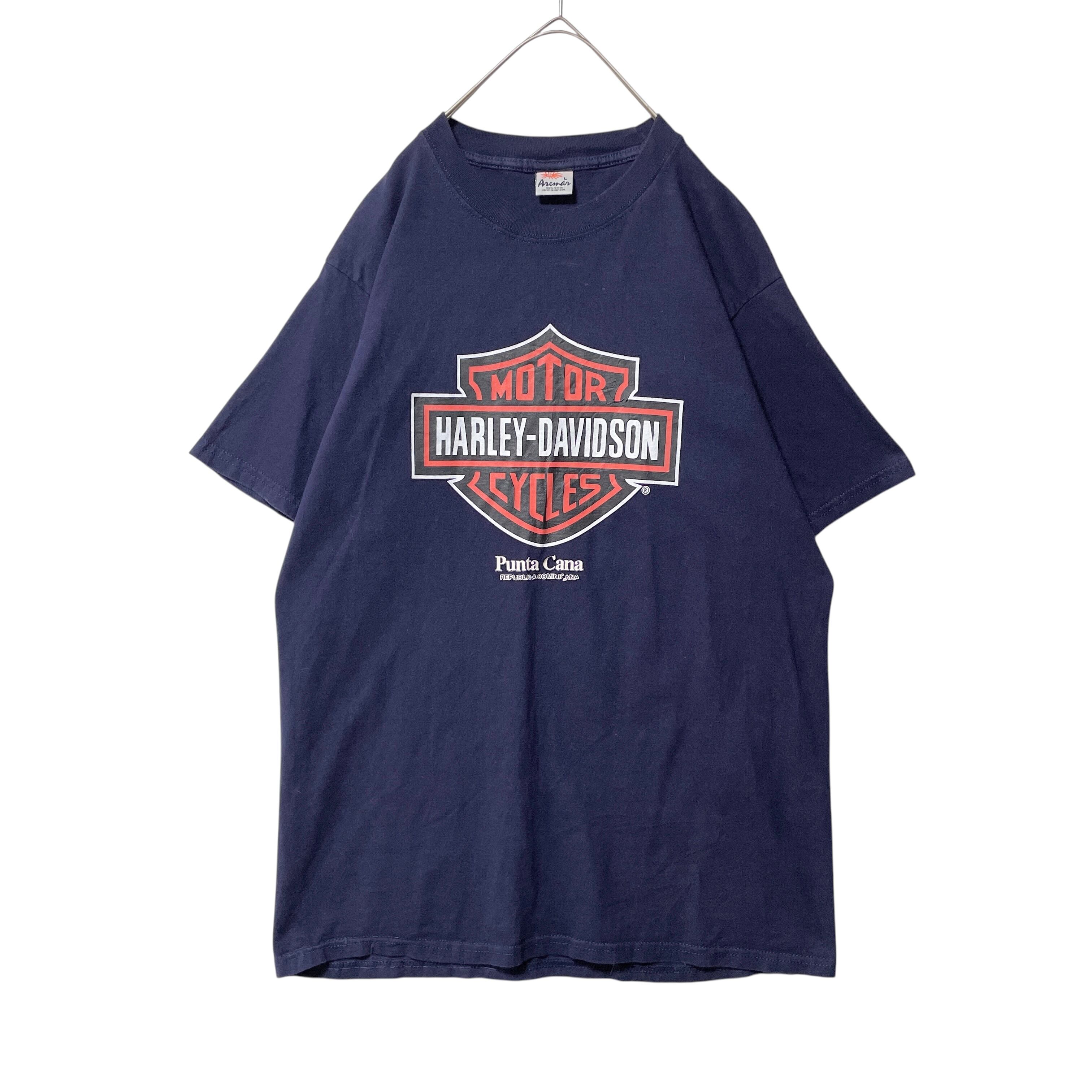 古着 Aremar製 ハーレーダビッドソン ビッグロゴ Tシャツ ネイビー L