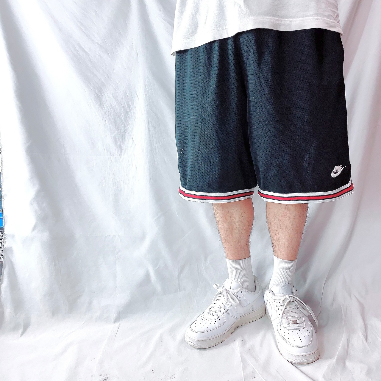00s NIKE ナイキ メッシュ ハーフパンツ バスパン 縁取り 黒 メンズL
