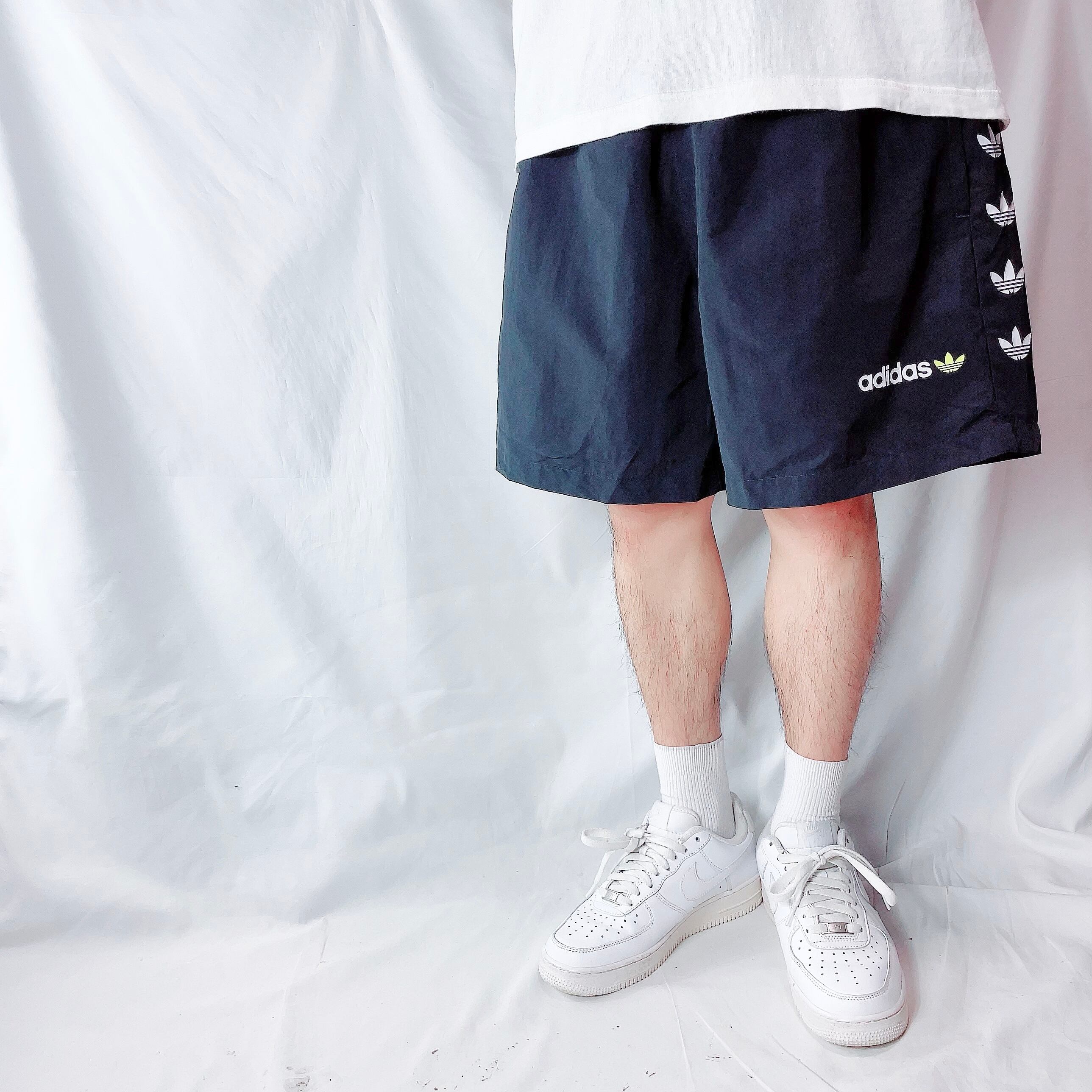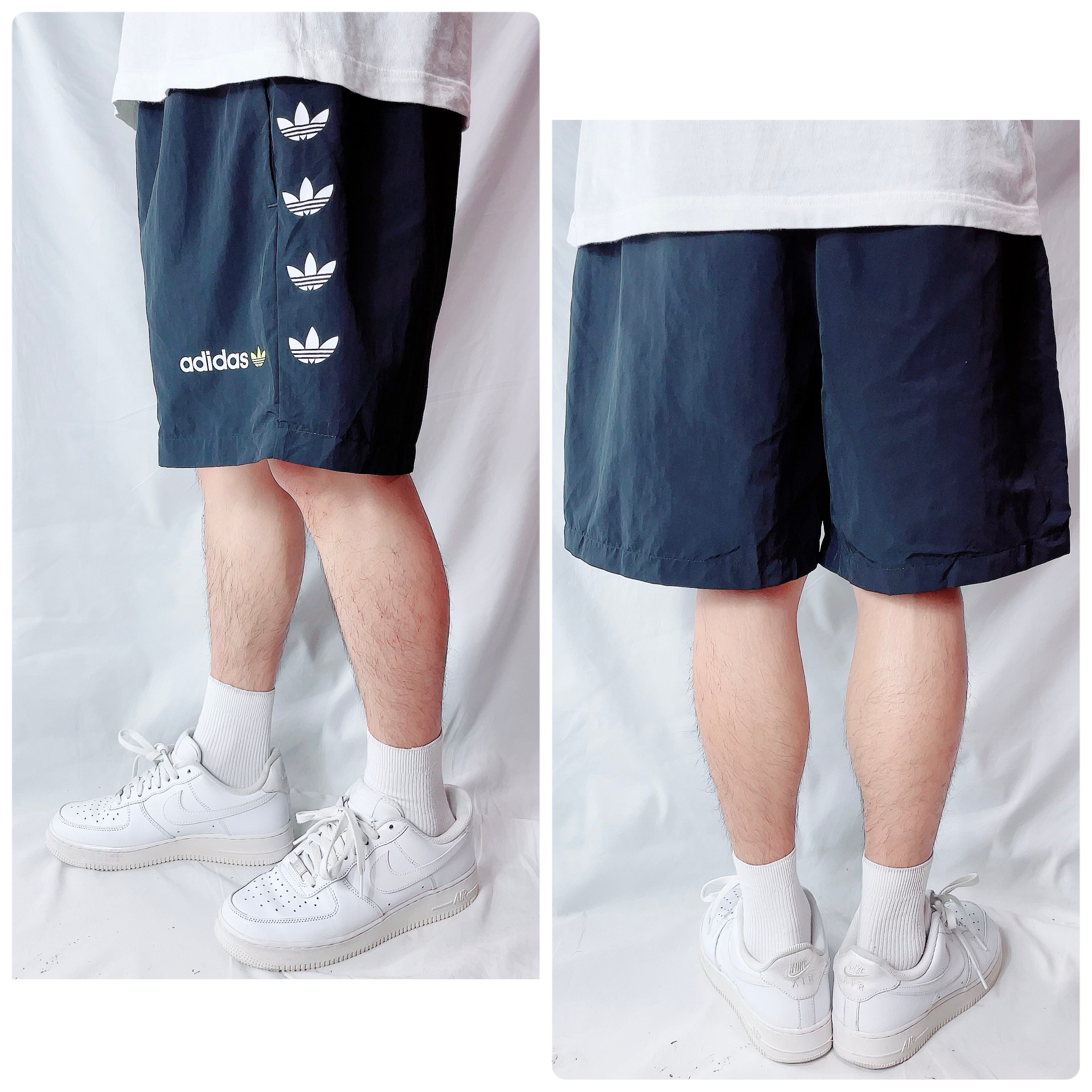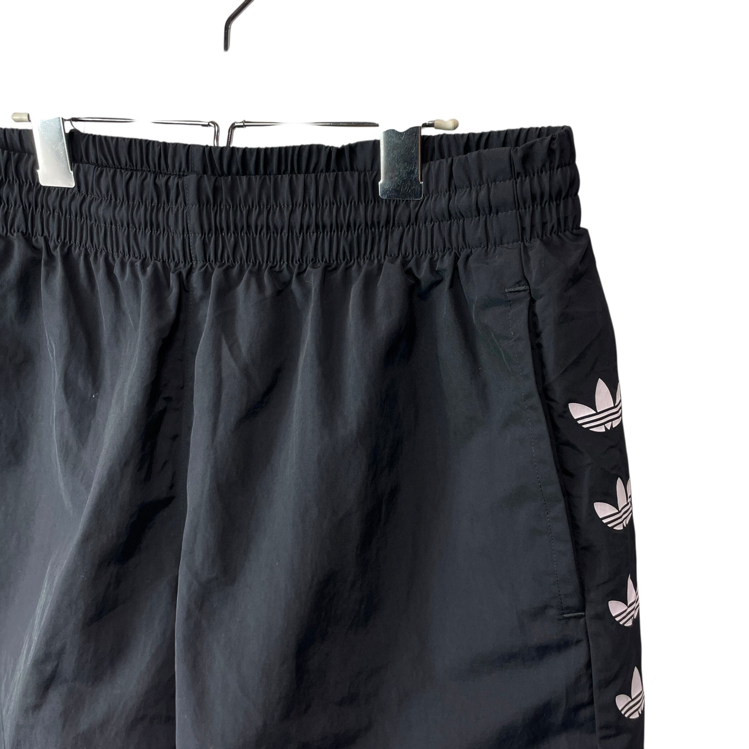 アディダスオリジナルス ロゴライン ナイロン ハーフパンツ 黒 メンズUS/XL