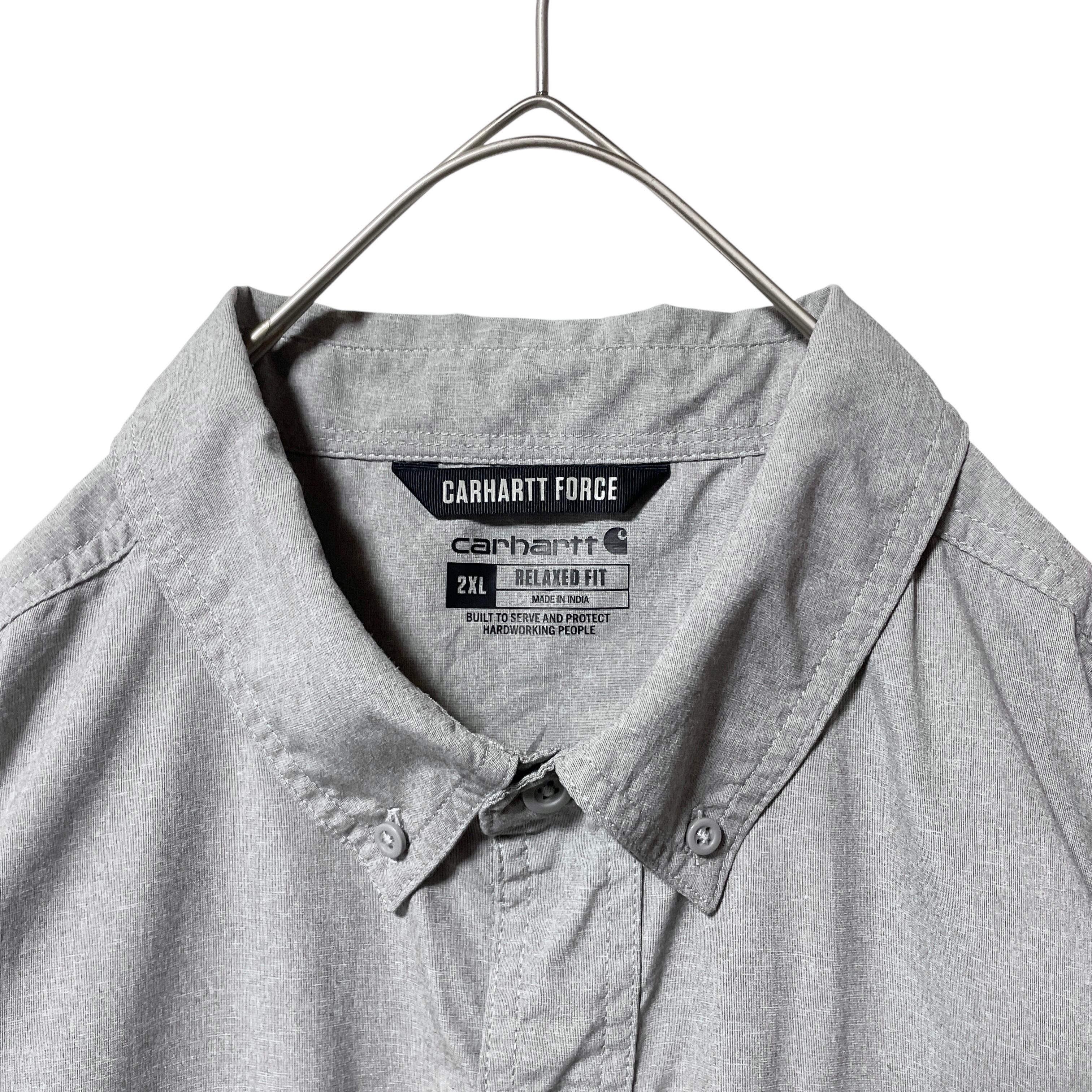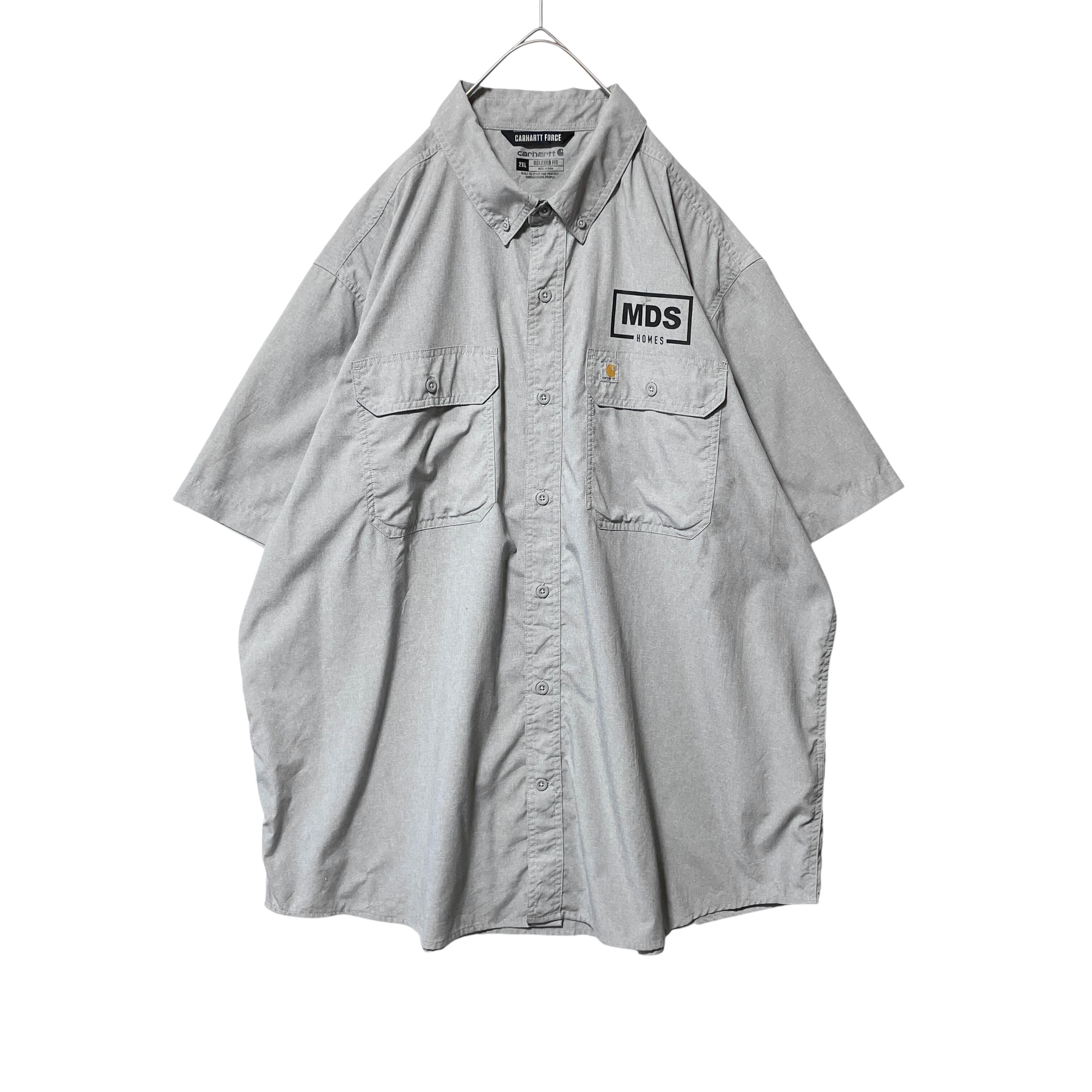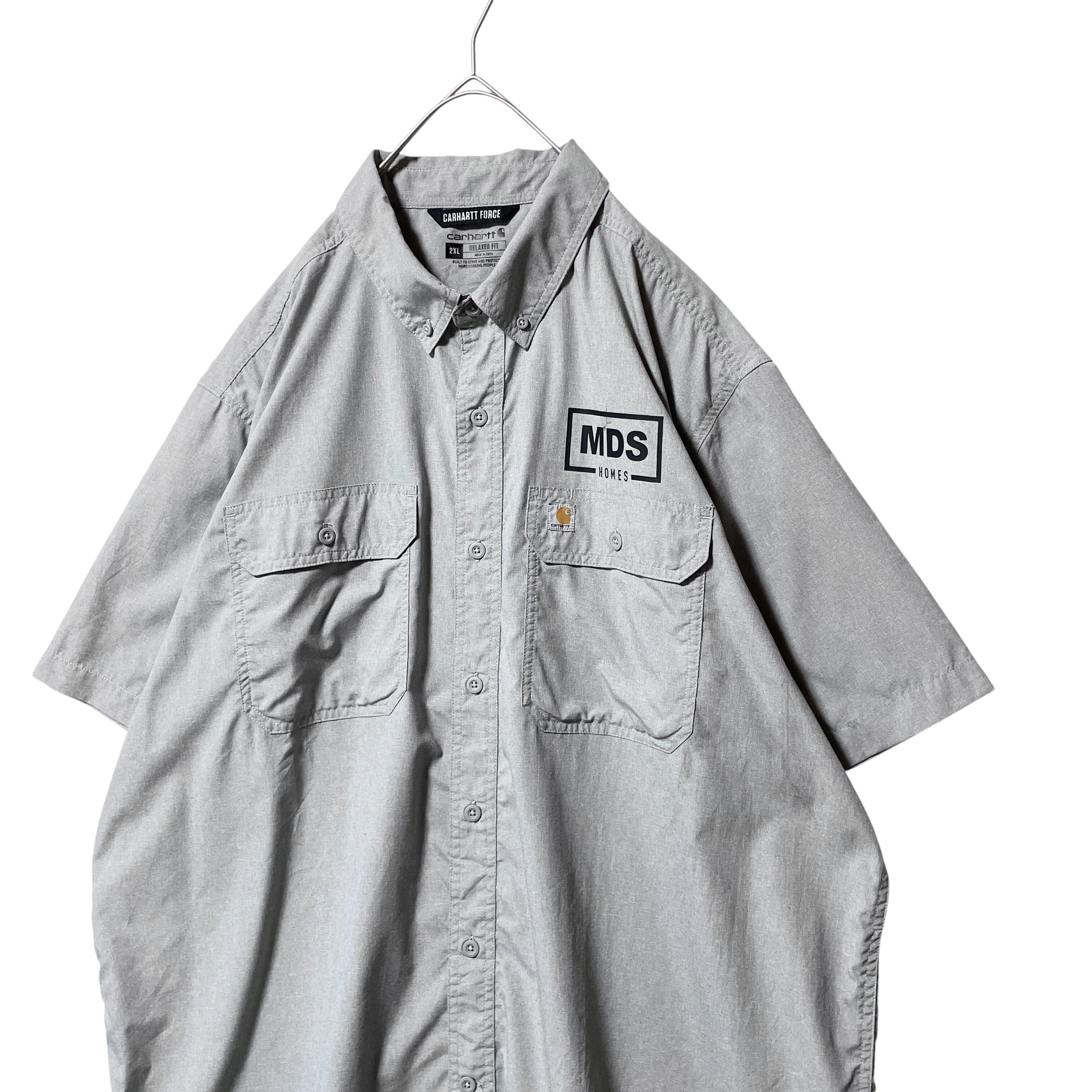 古着 カーハート 半袖シャツ ワークシャツ 企業ロゴ グレー メンズ 2XL
