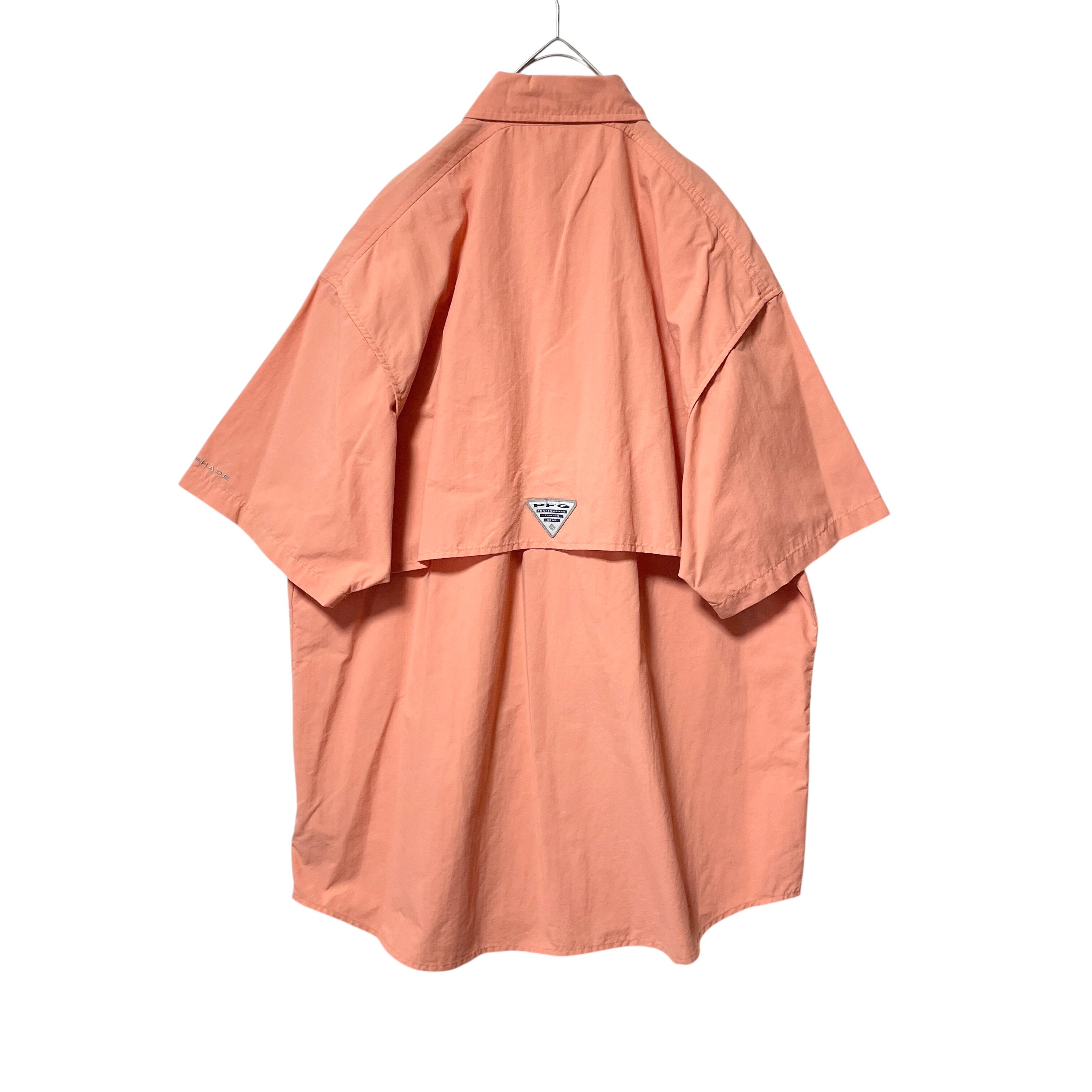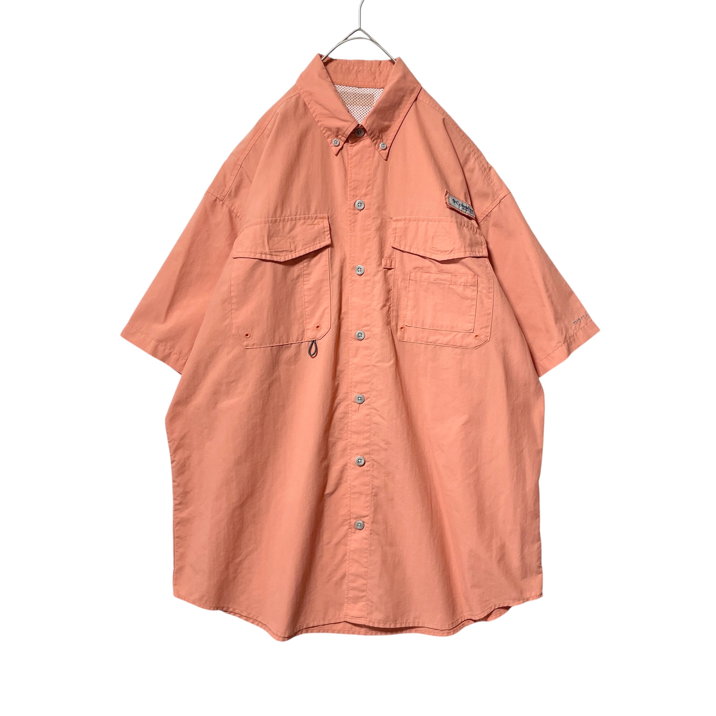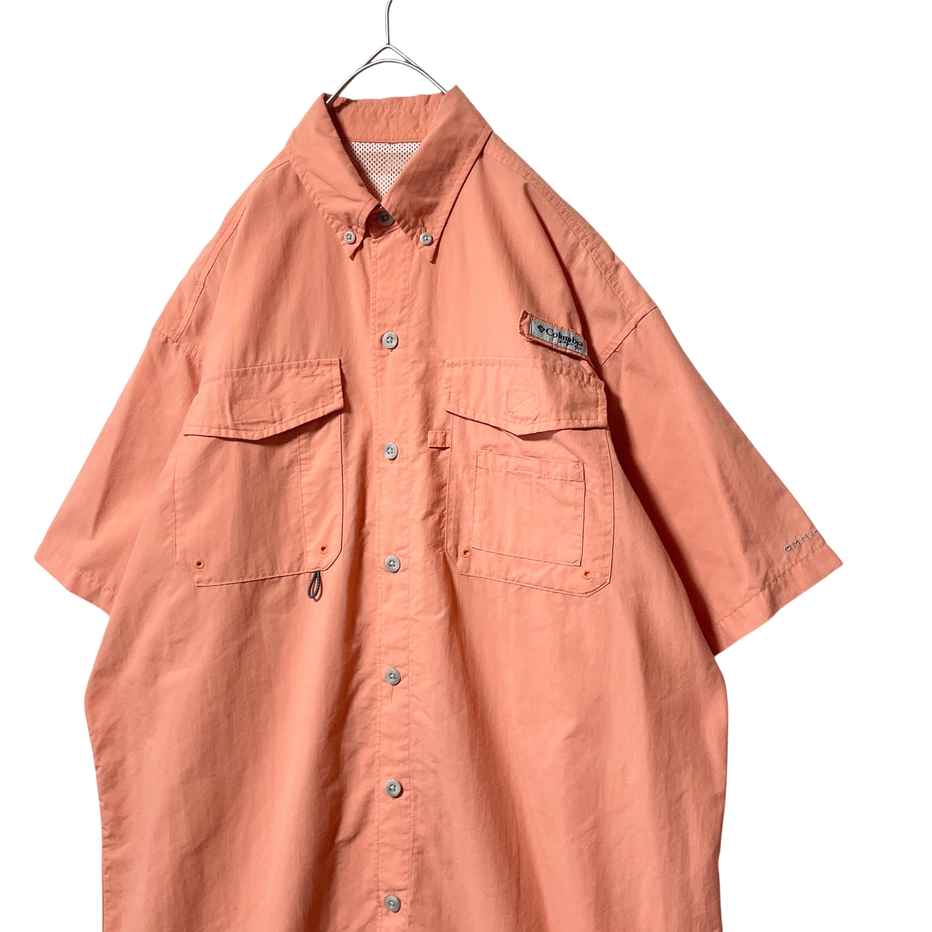 コロンビア UVカット 軽量 ナイロン半袖シャツ フィッシングシャツ ピーチ L
