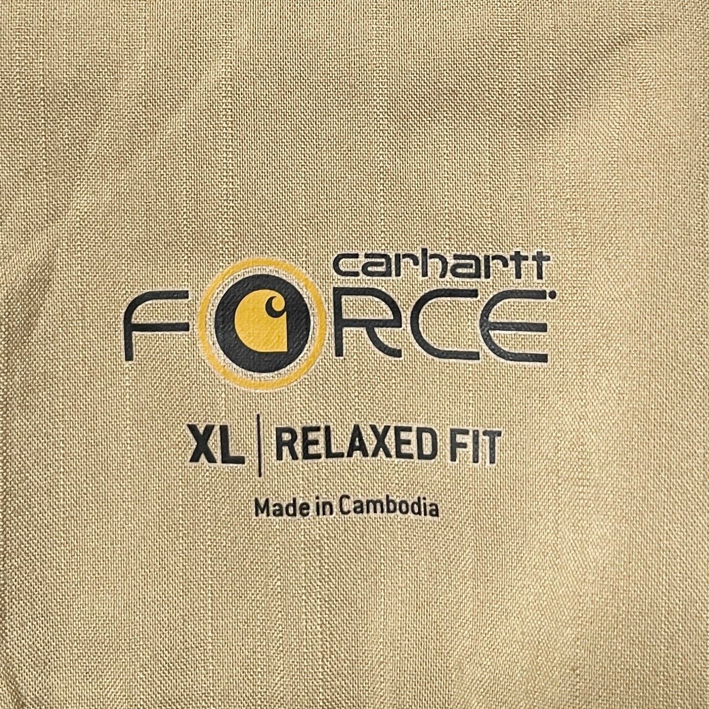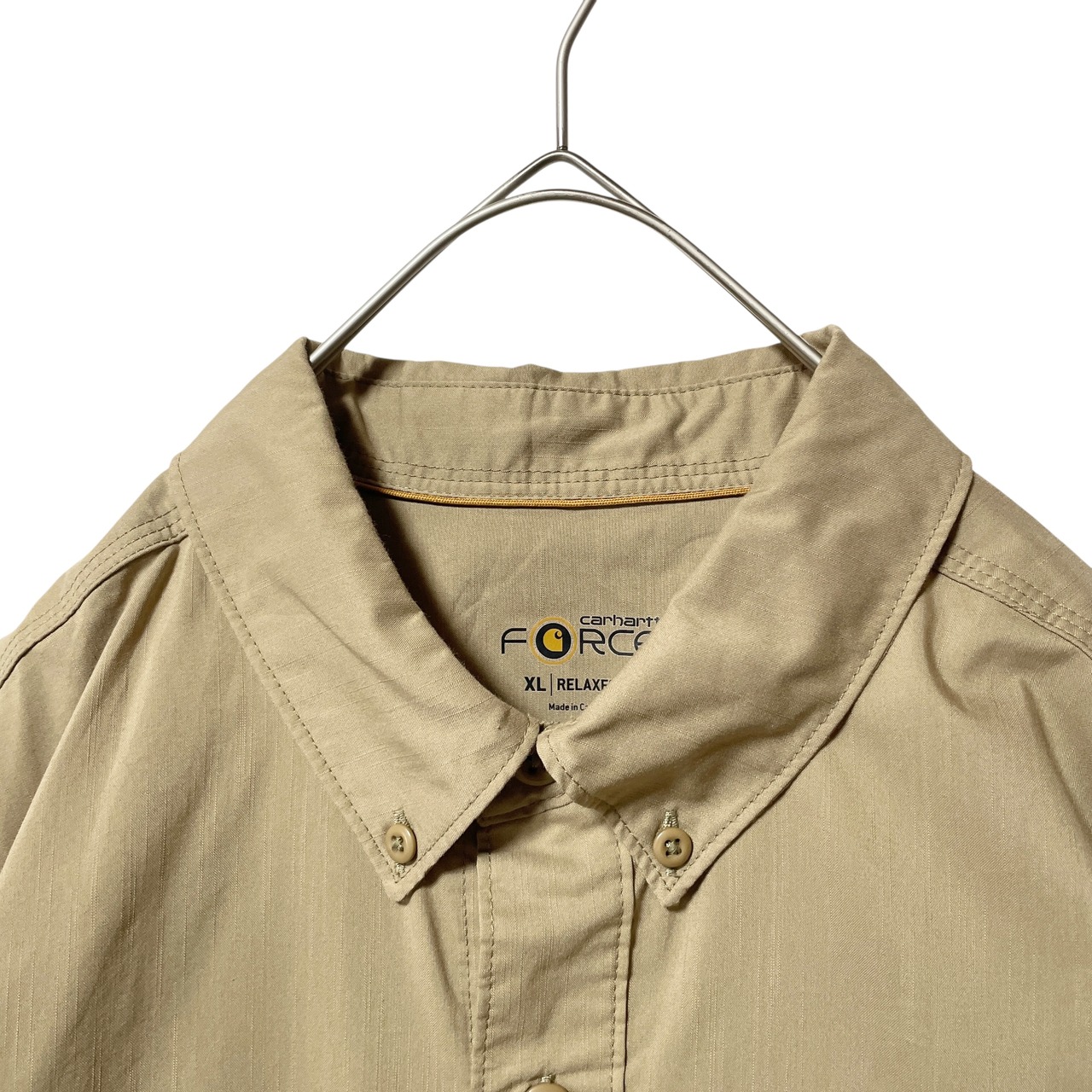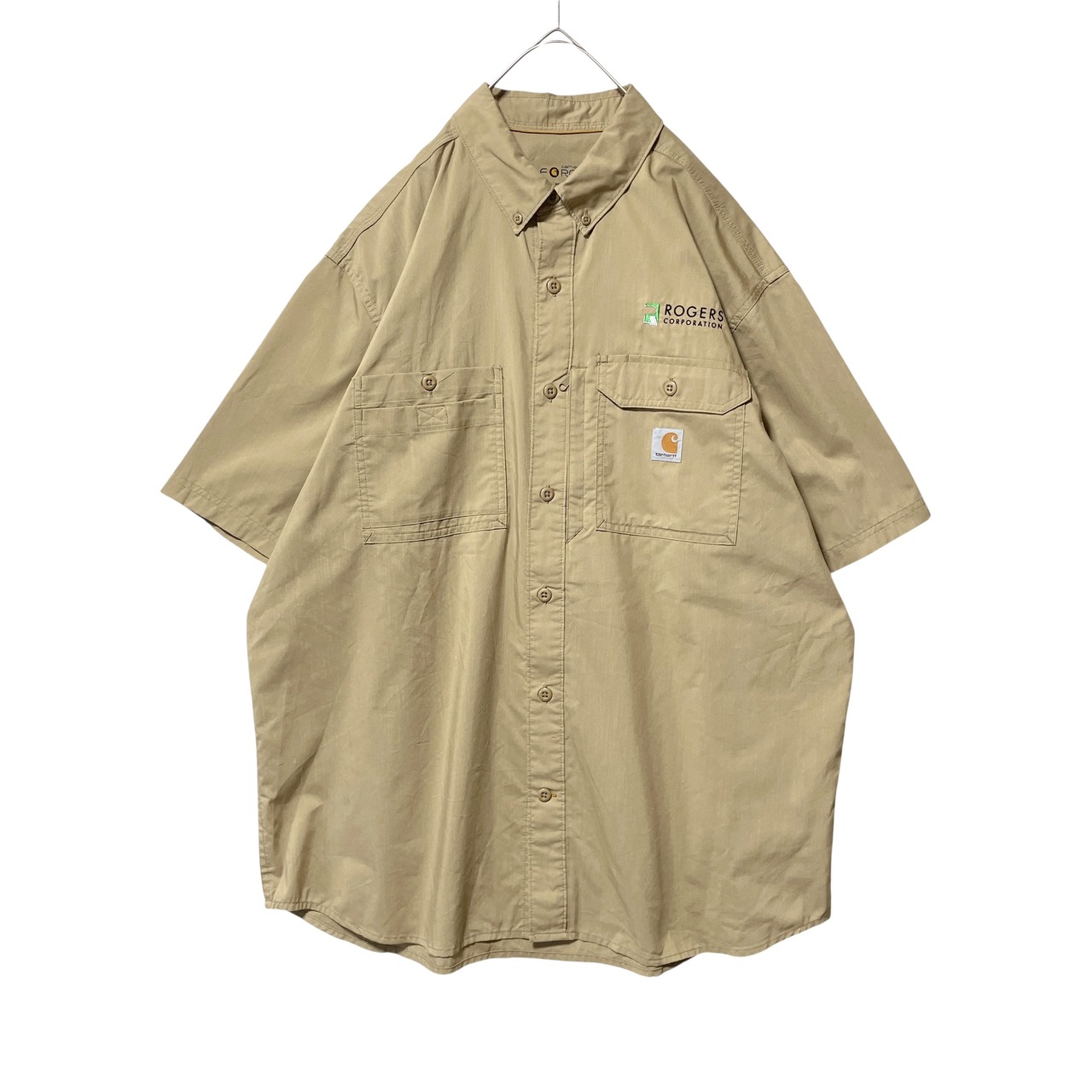 古着 カーハート フォース 企業刺繡 半袖シャツ ワークシャツ ベージュ XL