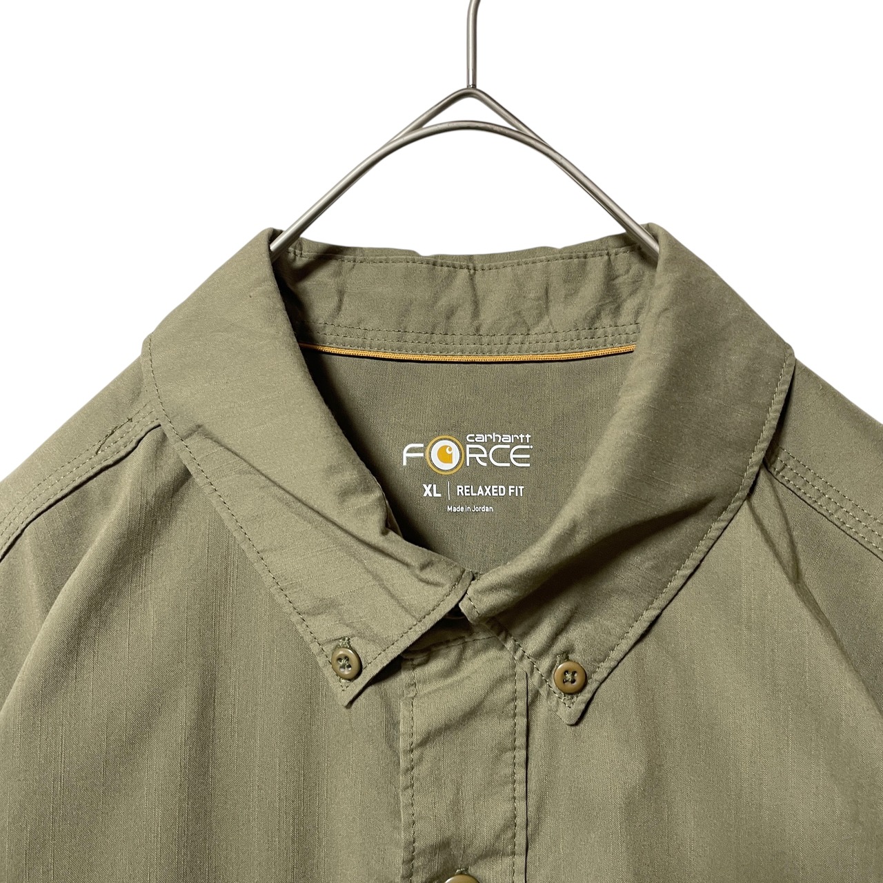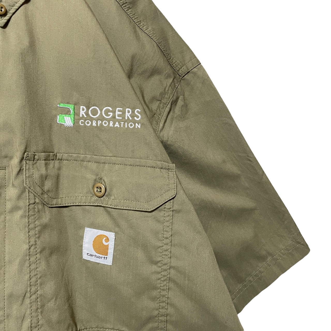 古着 カーハート ボタンダウン半袖シャツ ワークシャツ 企業刺繡 ベージュ XL