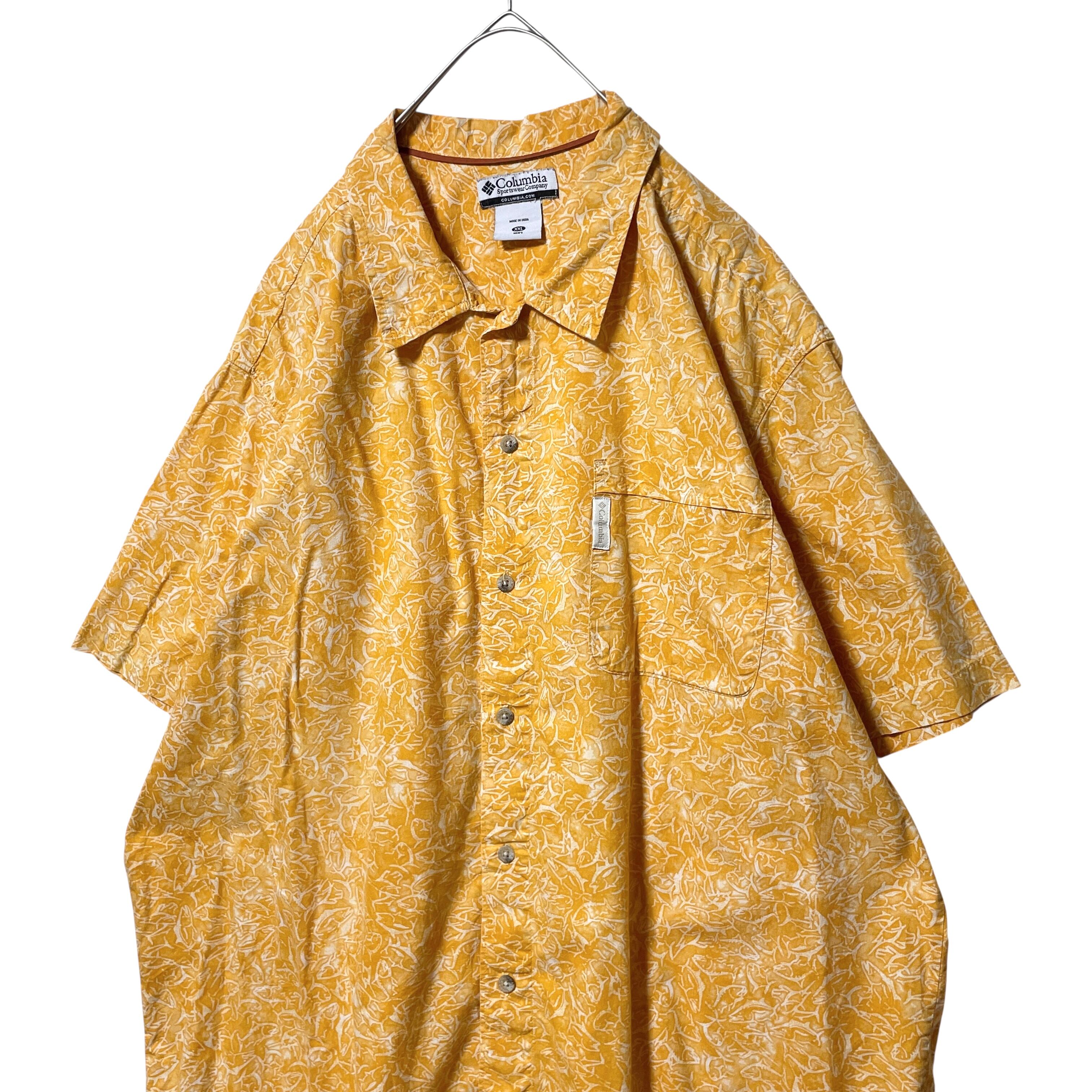 古着 コロンビア 魚 フィッシュ 総柄 半袖シャツ ビッグサイズ メンズ 2XL