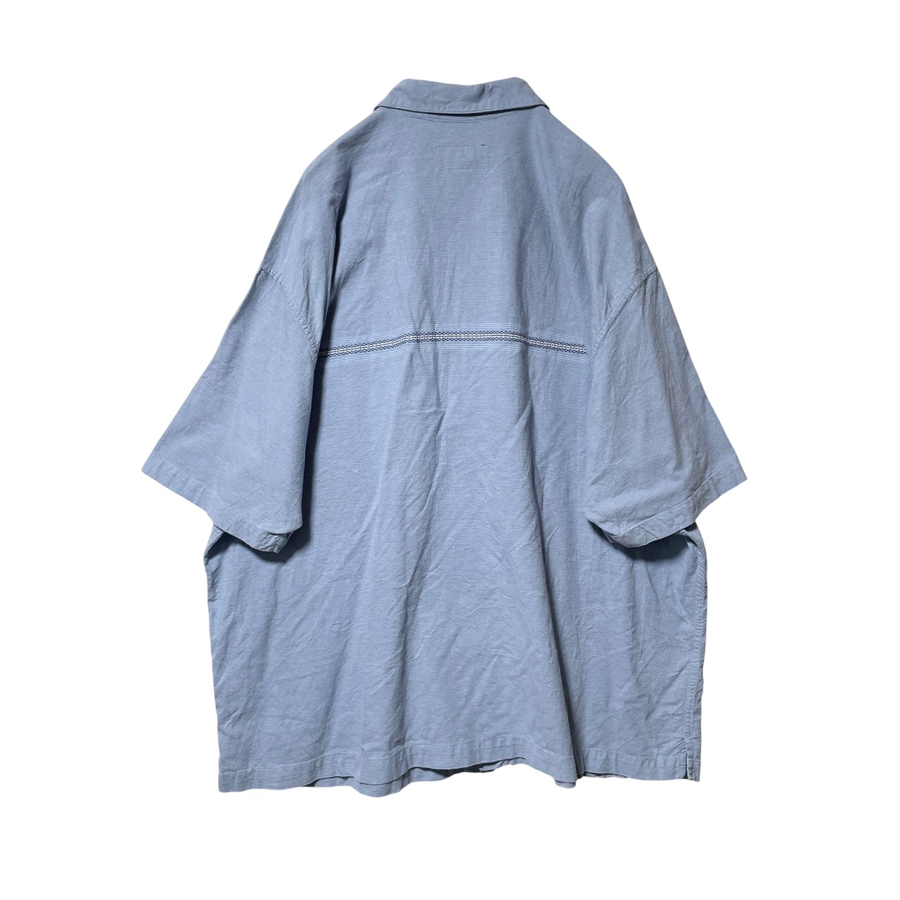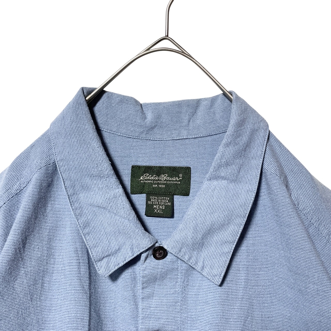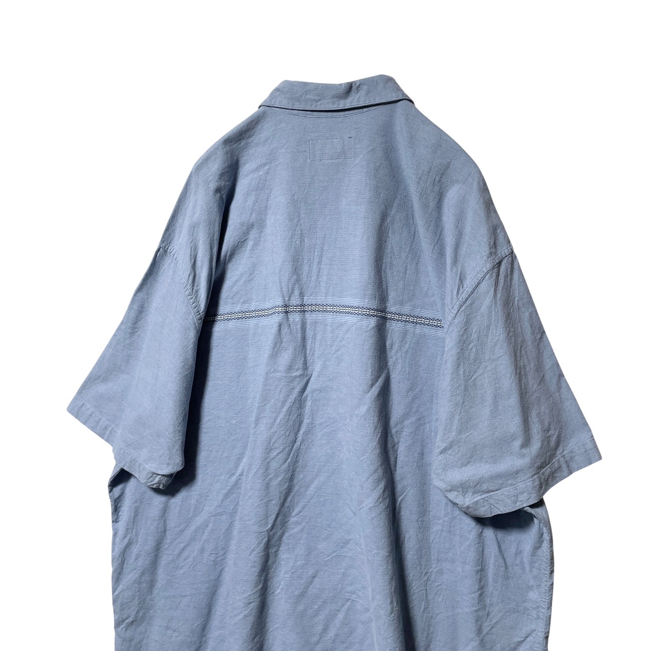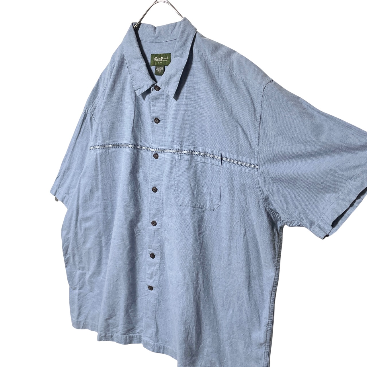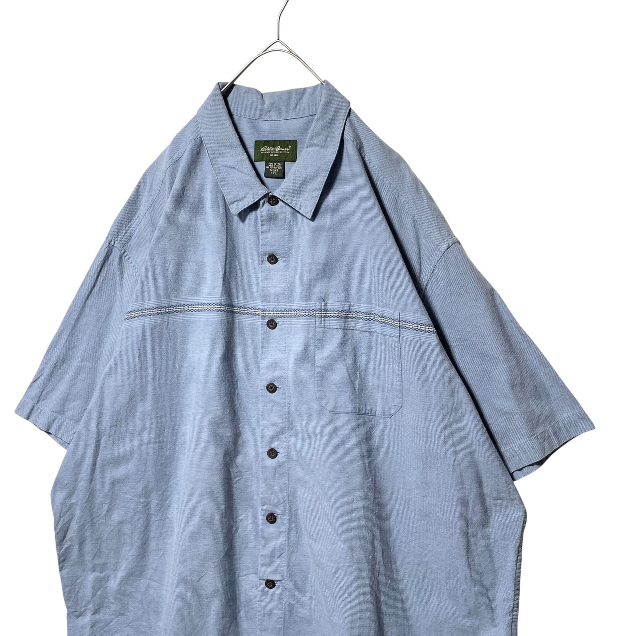 古着 エディーバウアー ライン入り半袖シャツ レギュラーカラー ネイビー 2XL