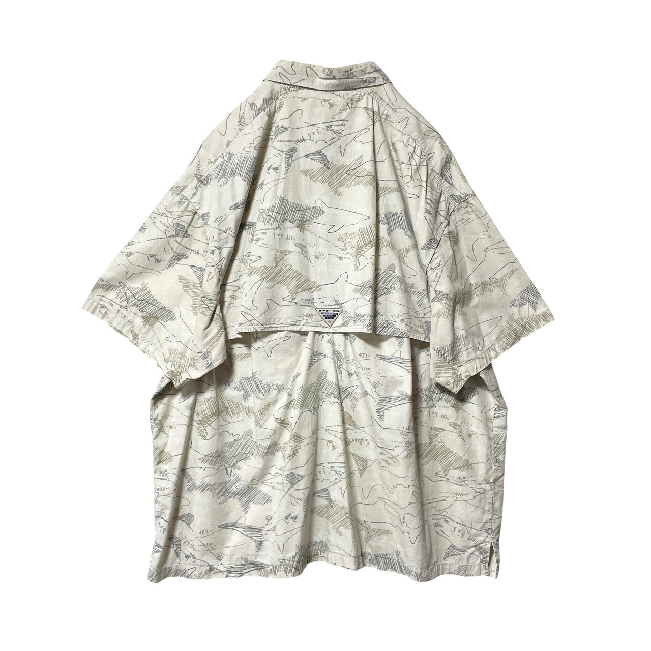 コロンビア PFG サメ 鮫 シャーク 総柄 半袖シャツ ベージュ メンズ XL