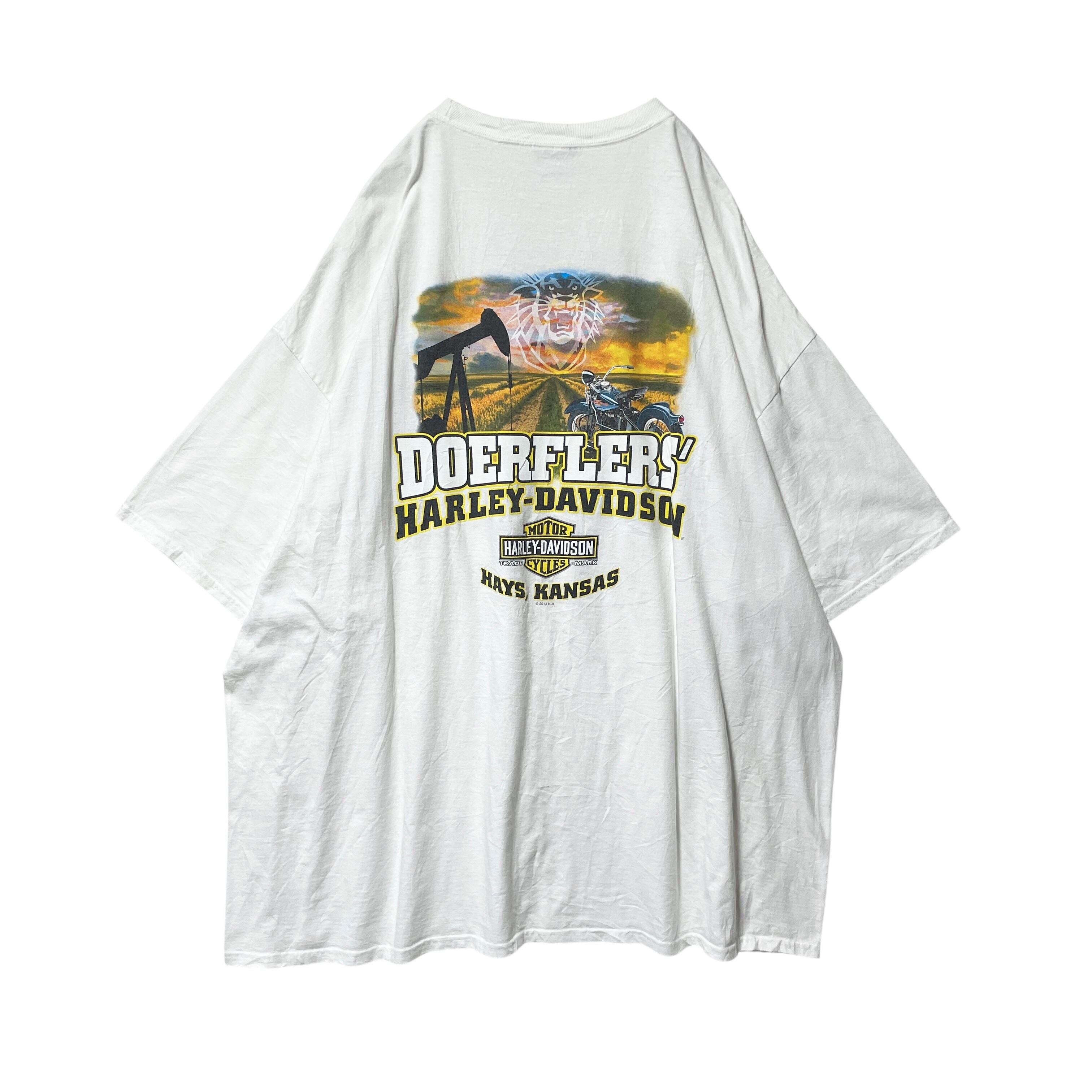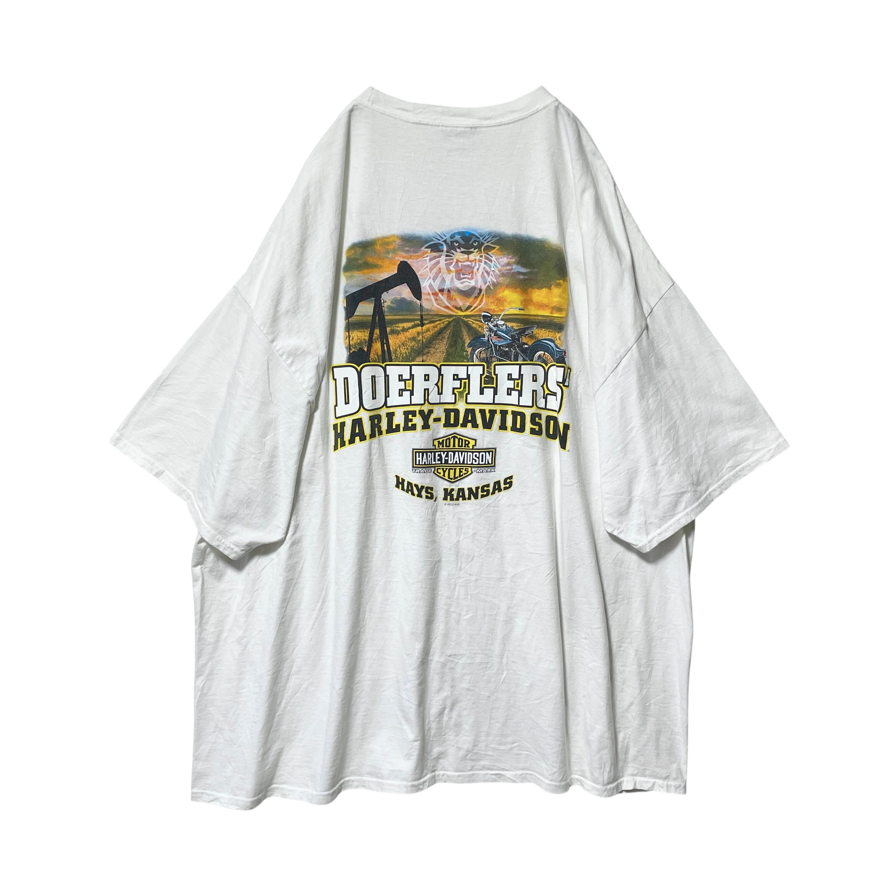超ビッグサイズ ハーレーダビッドソン Tシャツ 風景 車体 白 ホワイト 4XL