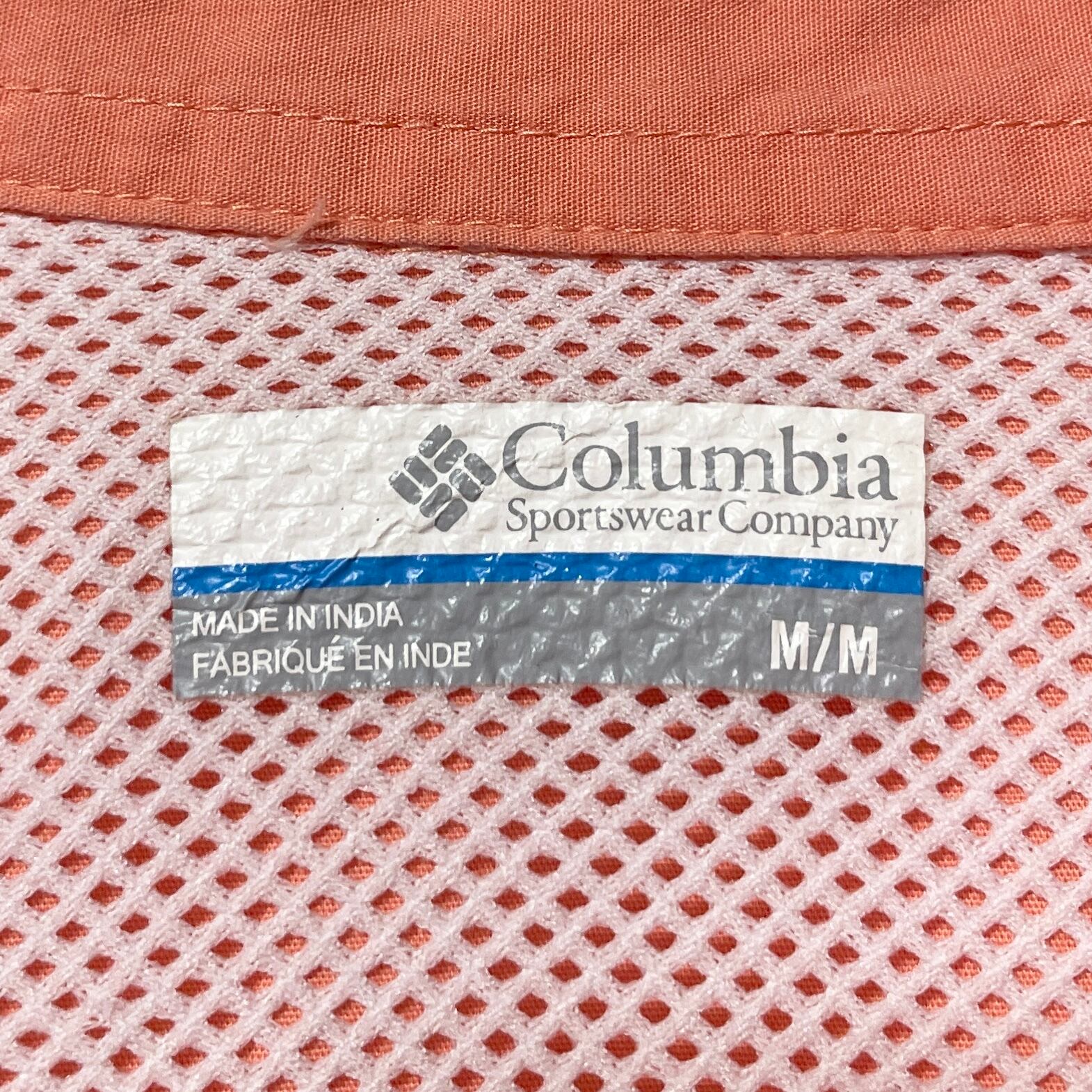 古着 コロンビア 半袖シャツ ワークシャツ 企業系刺繍 ピーチカラー メンズ M