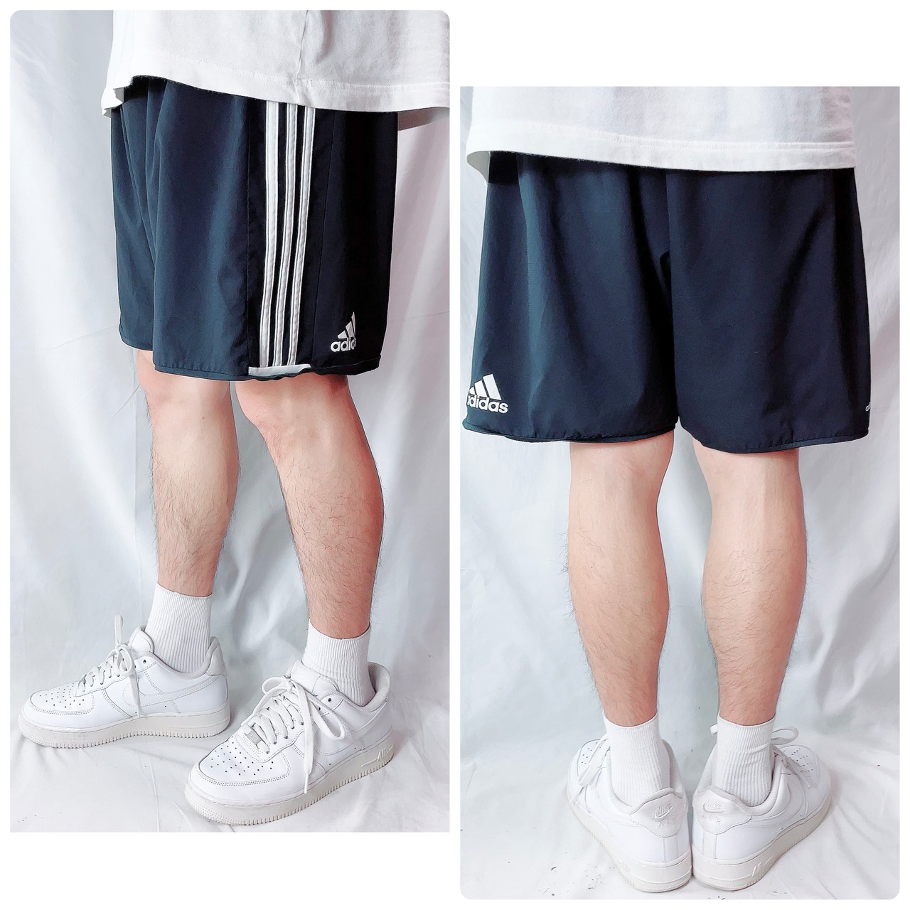 アディダス ライン バックロゴ ショートパンツ ハーフパンツ 黒 US/XL