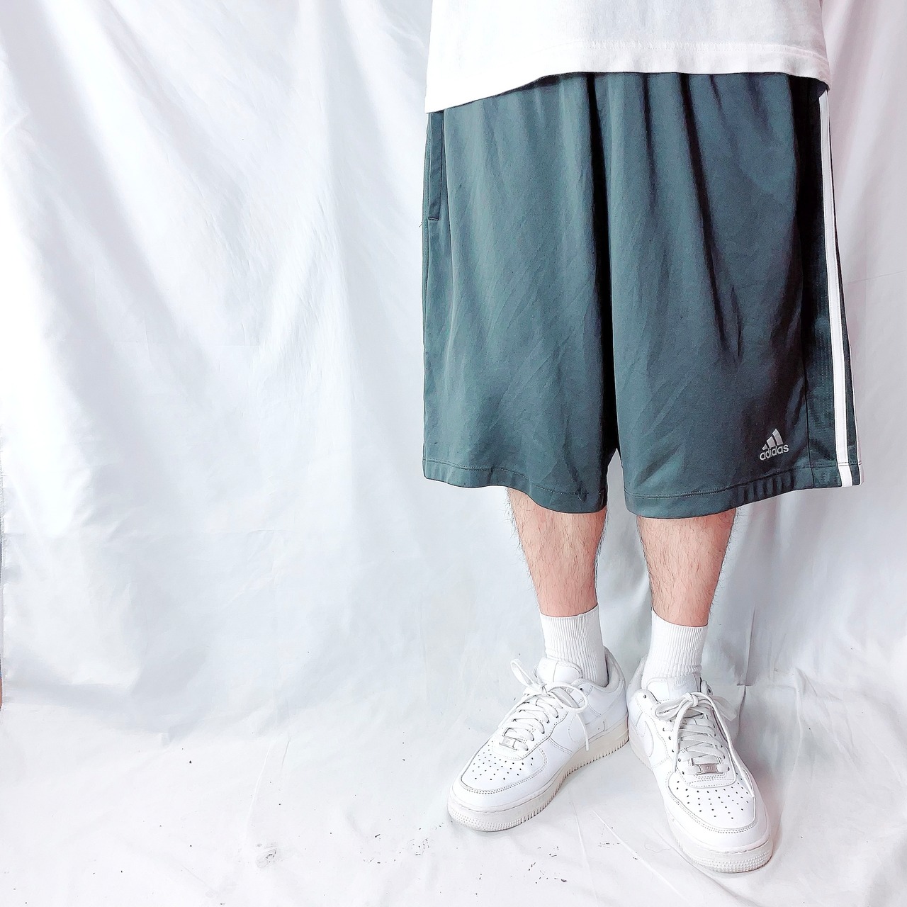 アディダス スリーライン ハーフパンツ ショートパンツ グレー メンズUS/XL